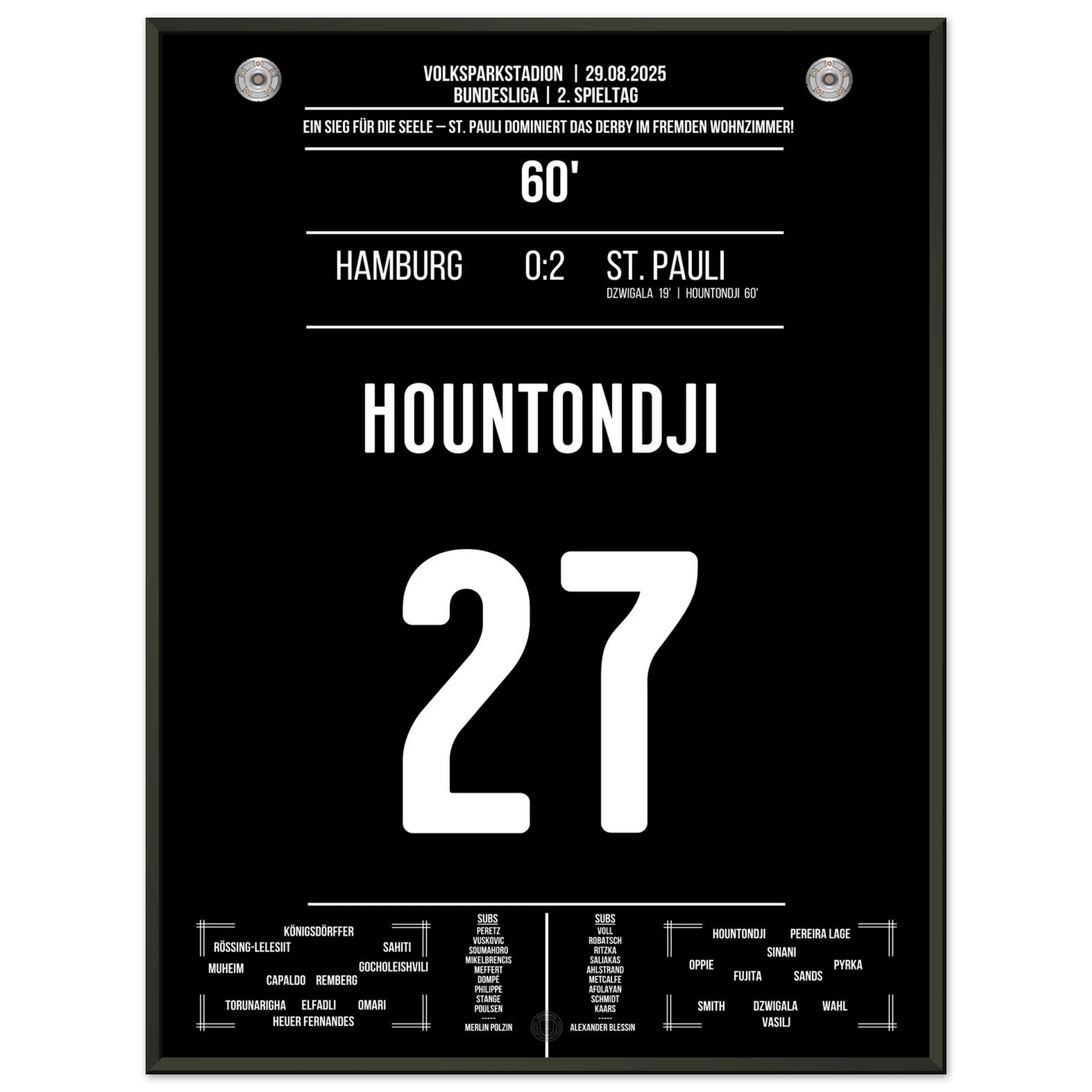 29. August 2025 – Hamburg vs. St. Pauli 0:2