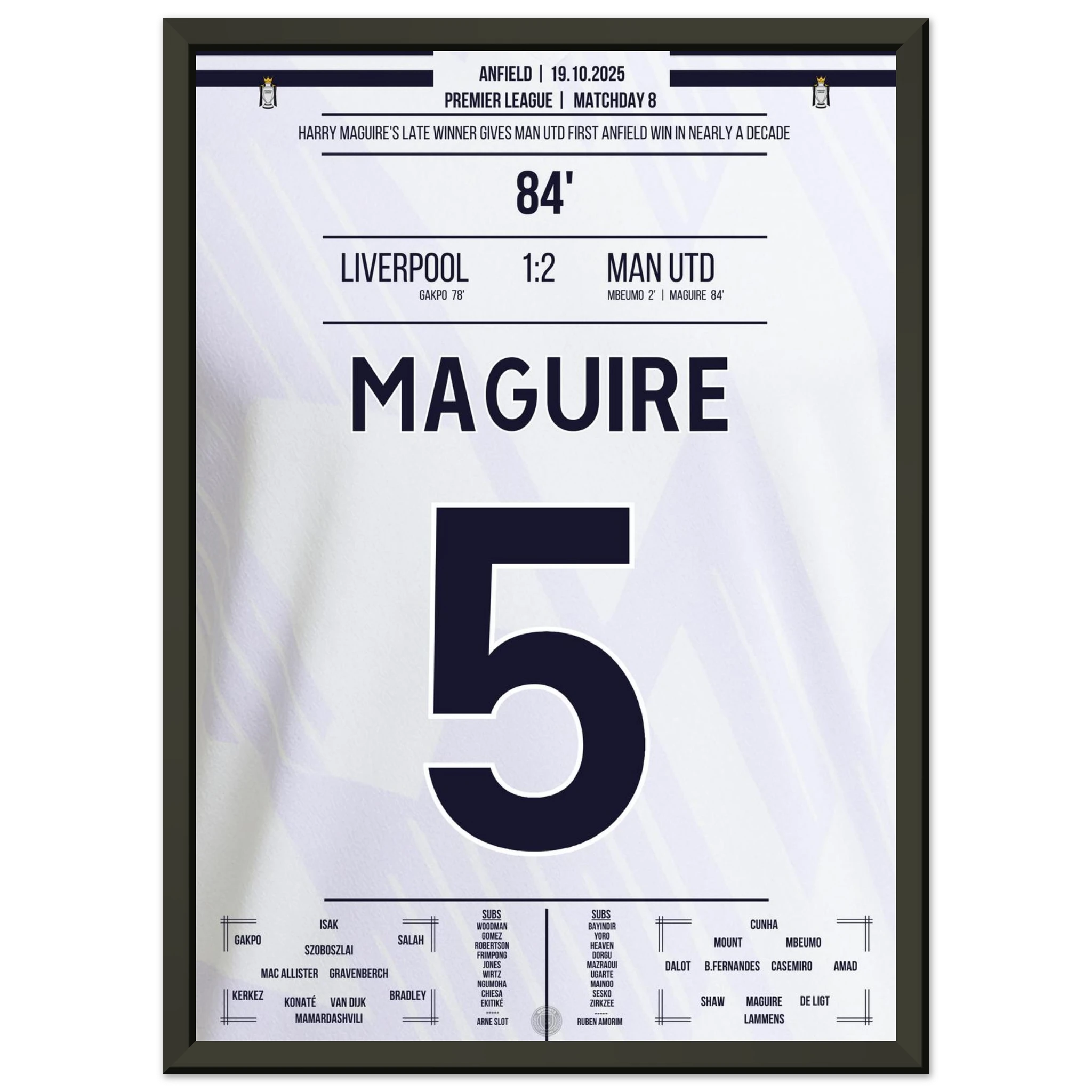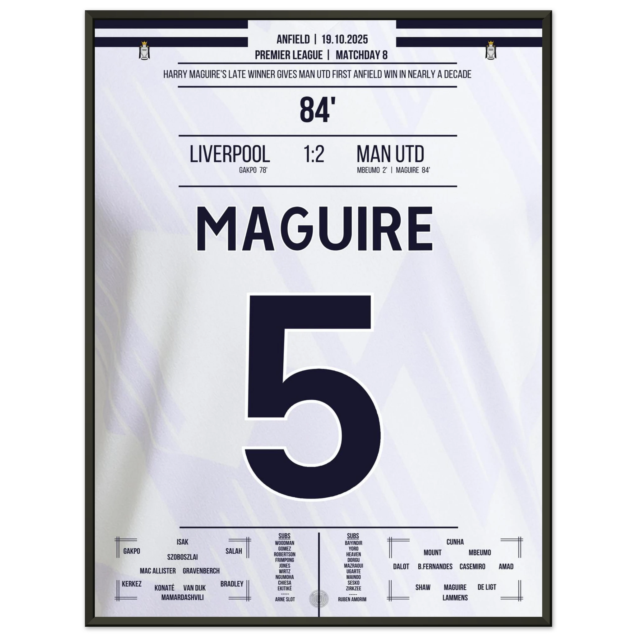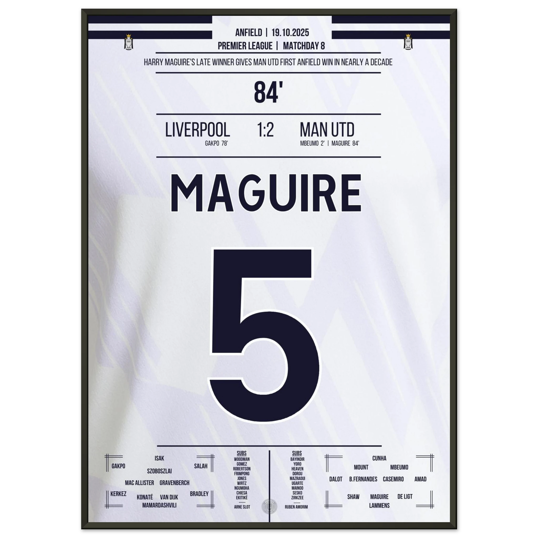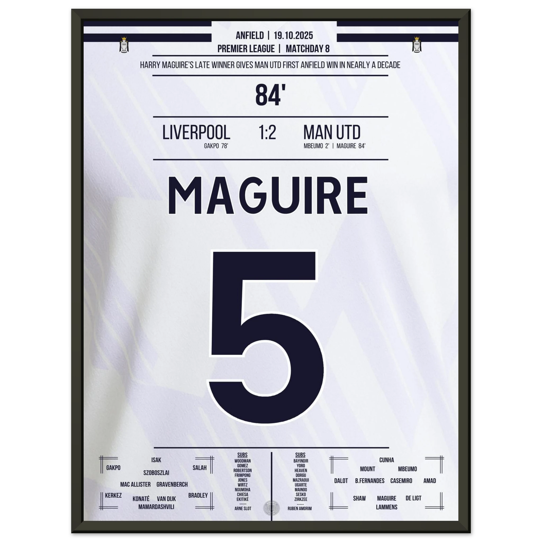 Unser Poster hält diesen historischen Moment fest – Kopfball, Kopf von Maguire, Triumph über Anfield.