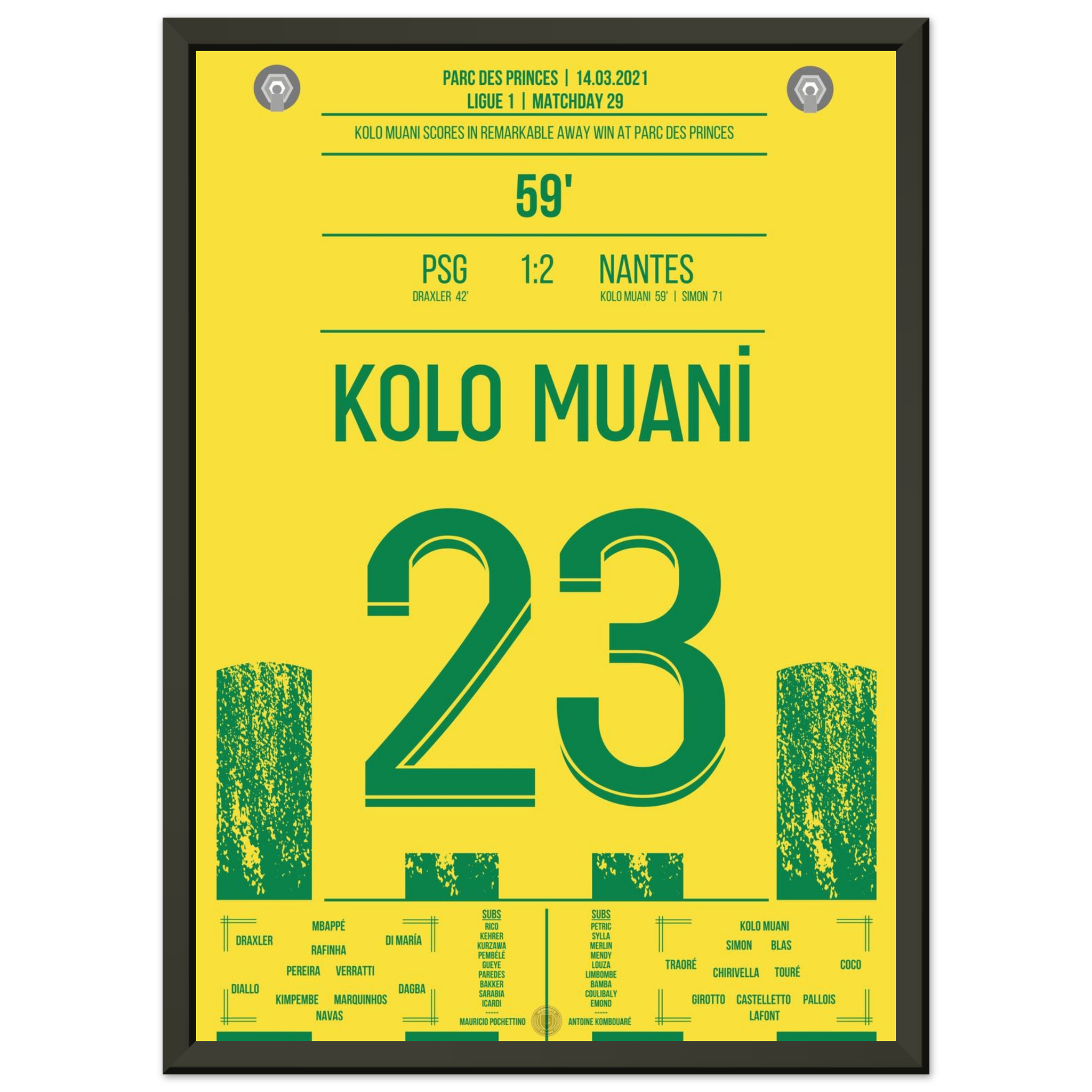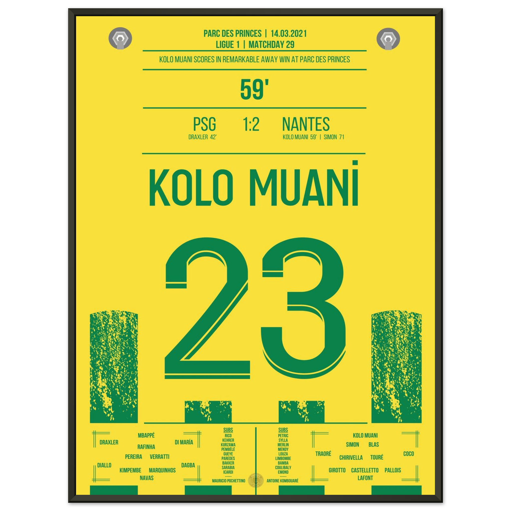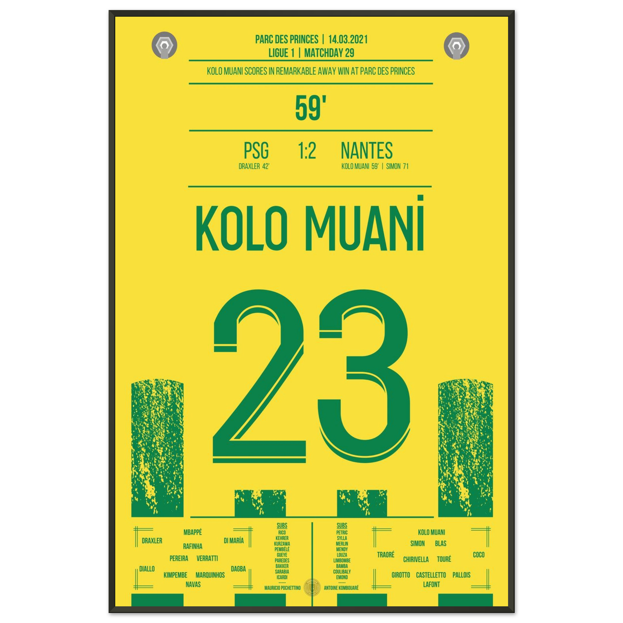 Dieses Poster feiert den Moment, in dem Kolo Muani zum Helden wurde und ganz Nantes im Freudentaumel versank.