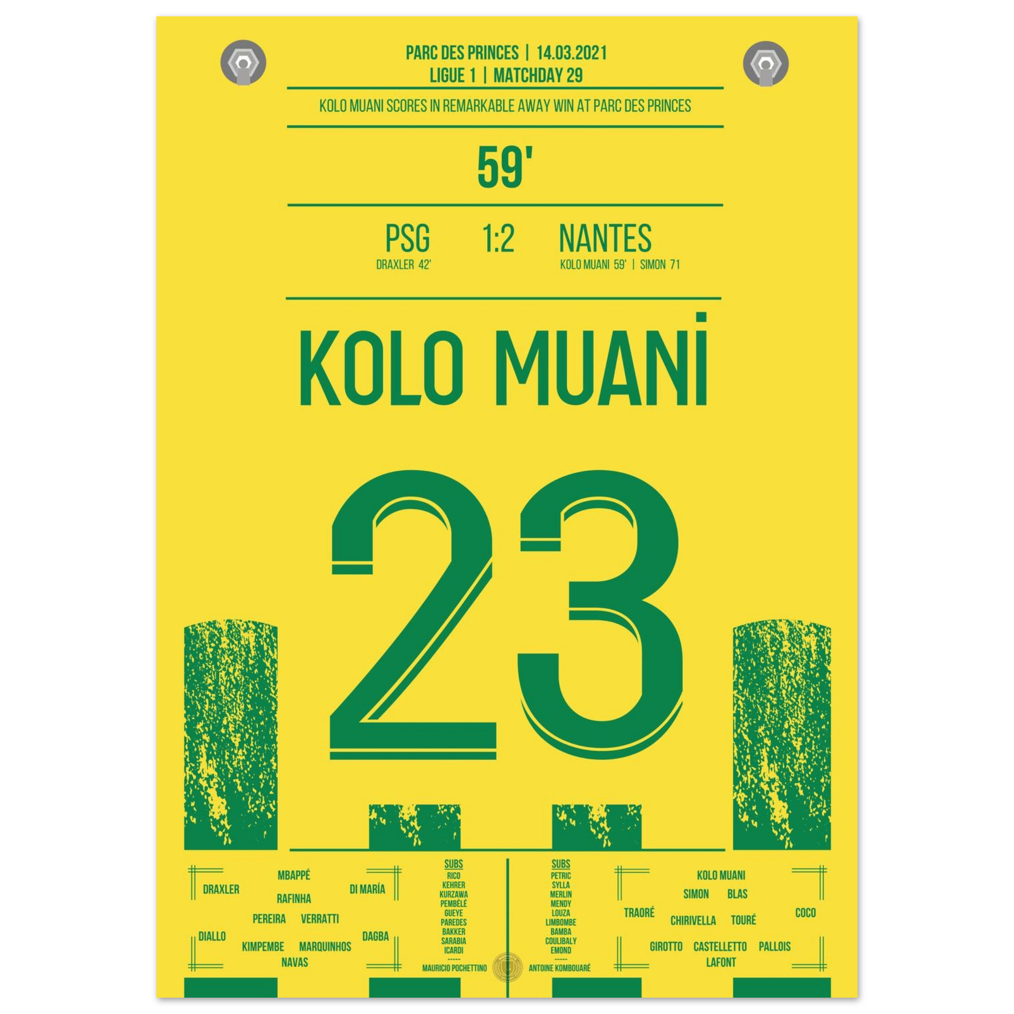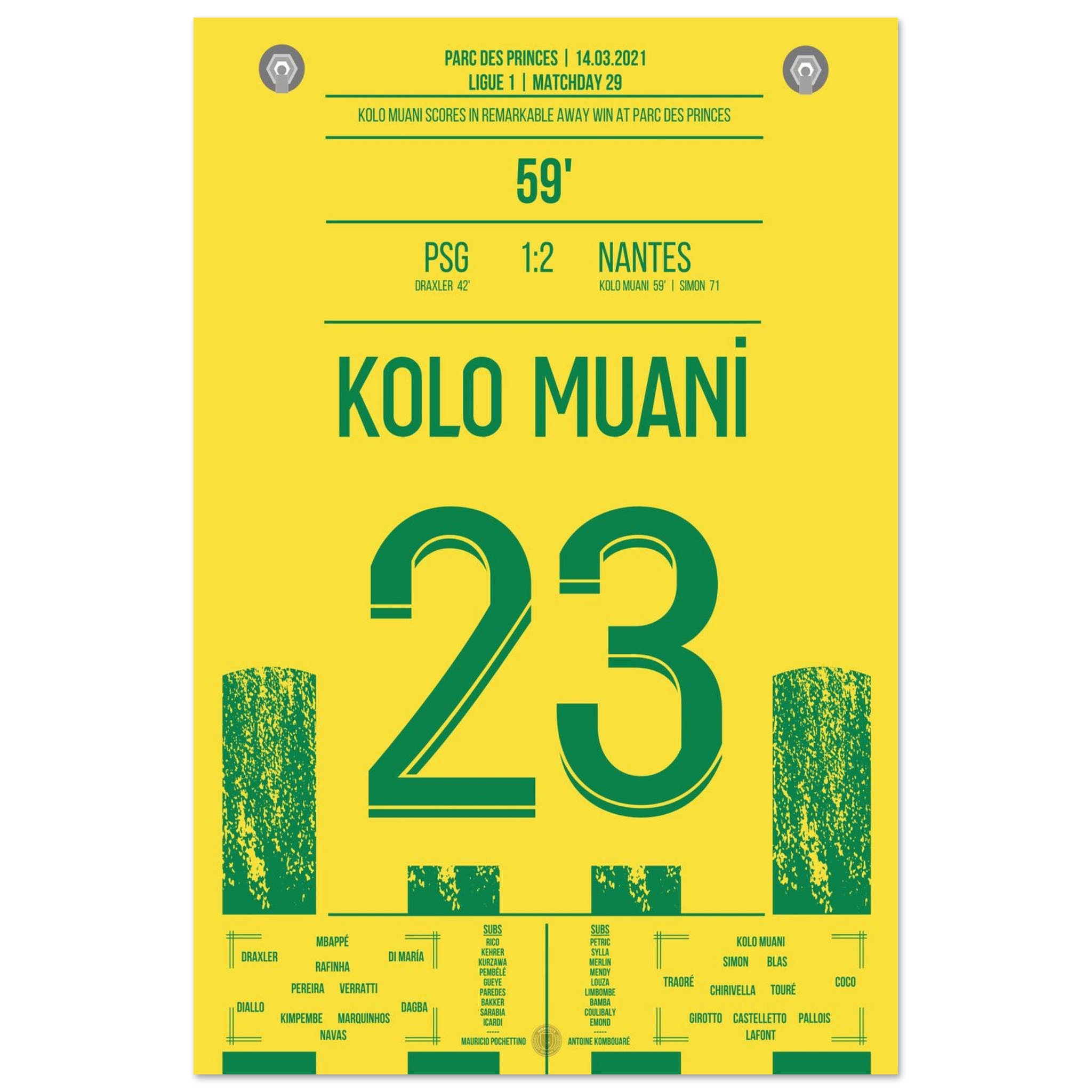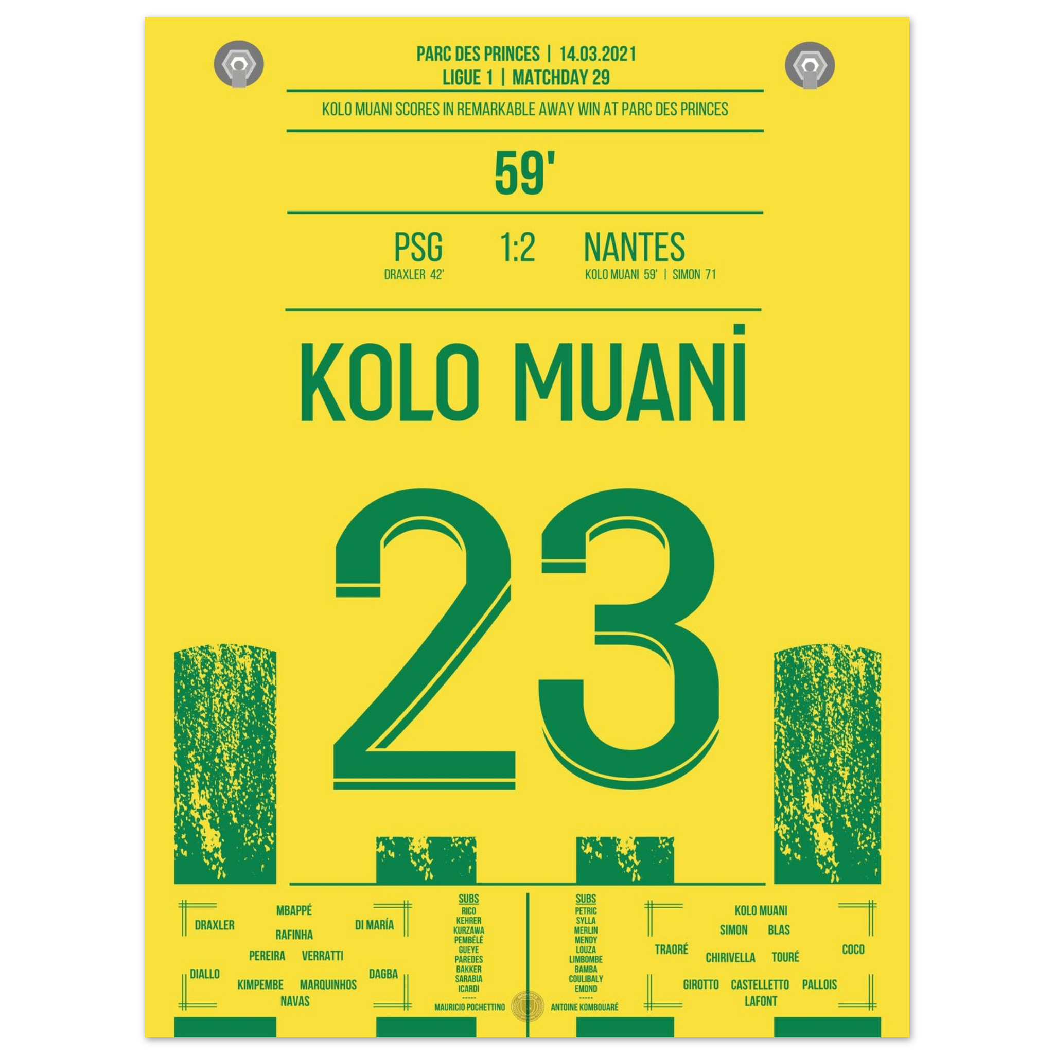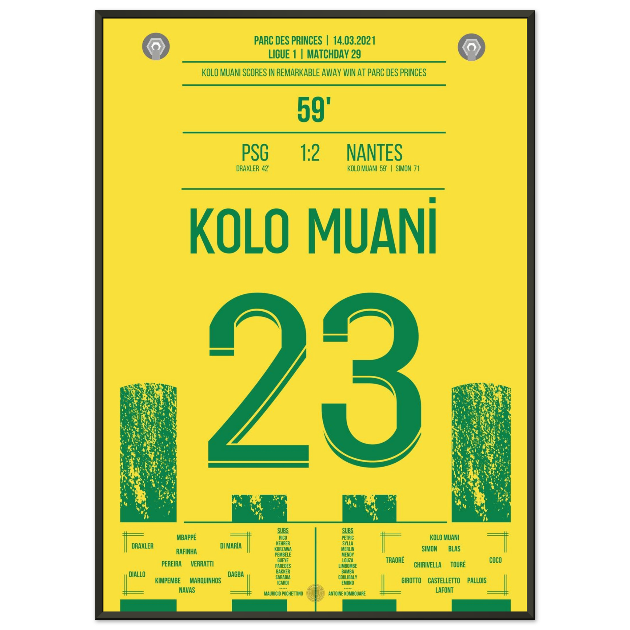 Dieses Poster feiert den Moment, in dem Kolo Muani zum Helden wurde und ganz Nantes im Freudentaumel versank.