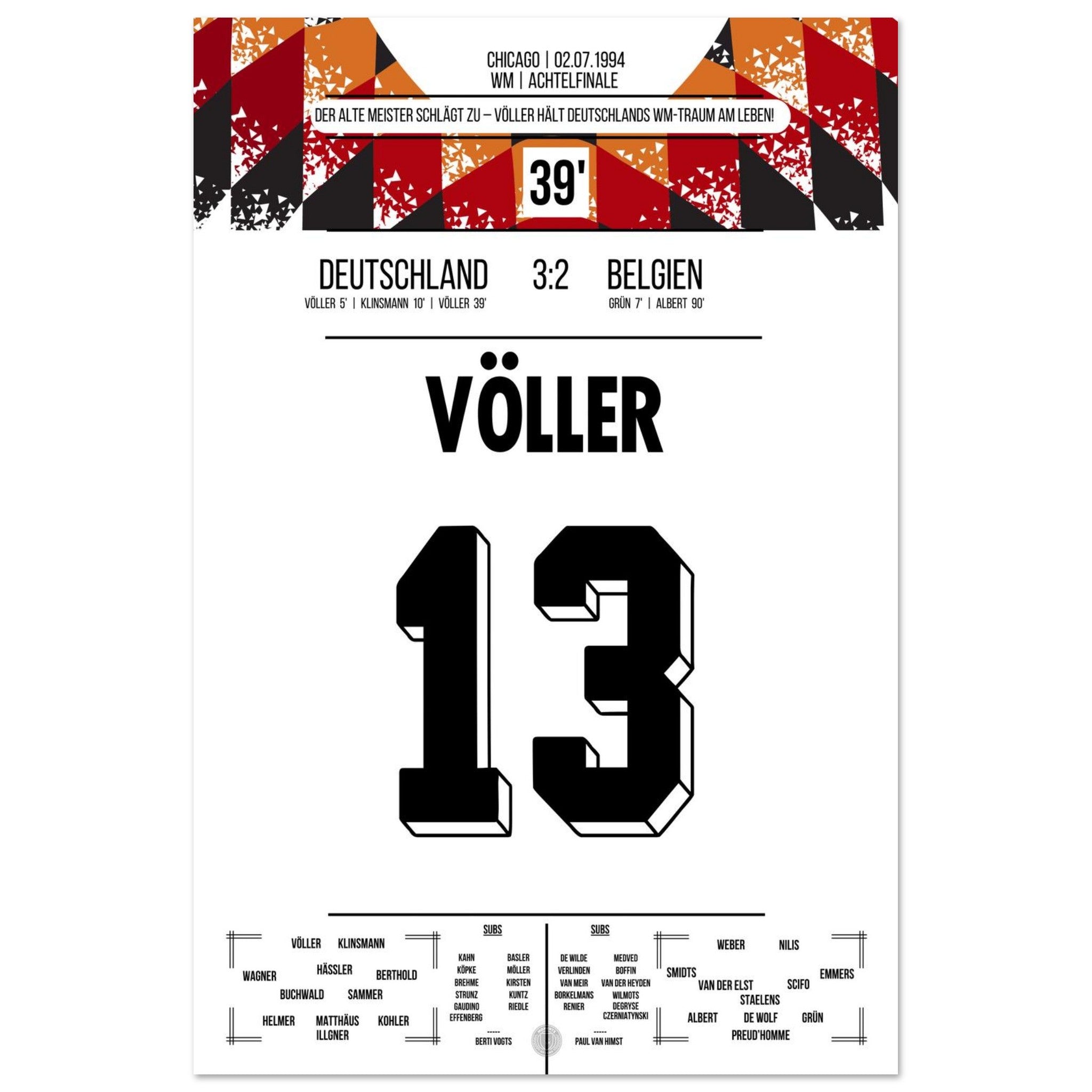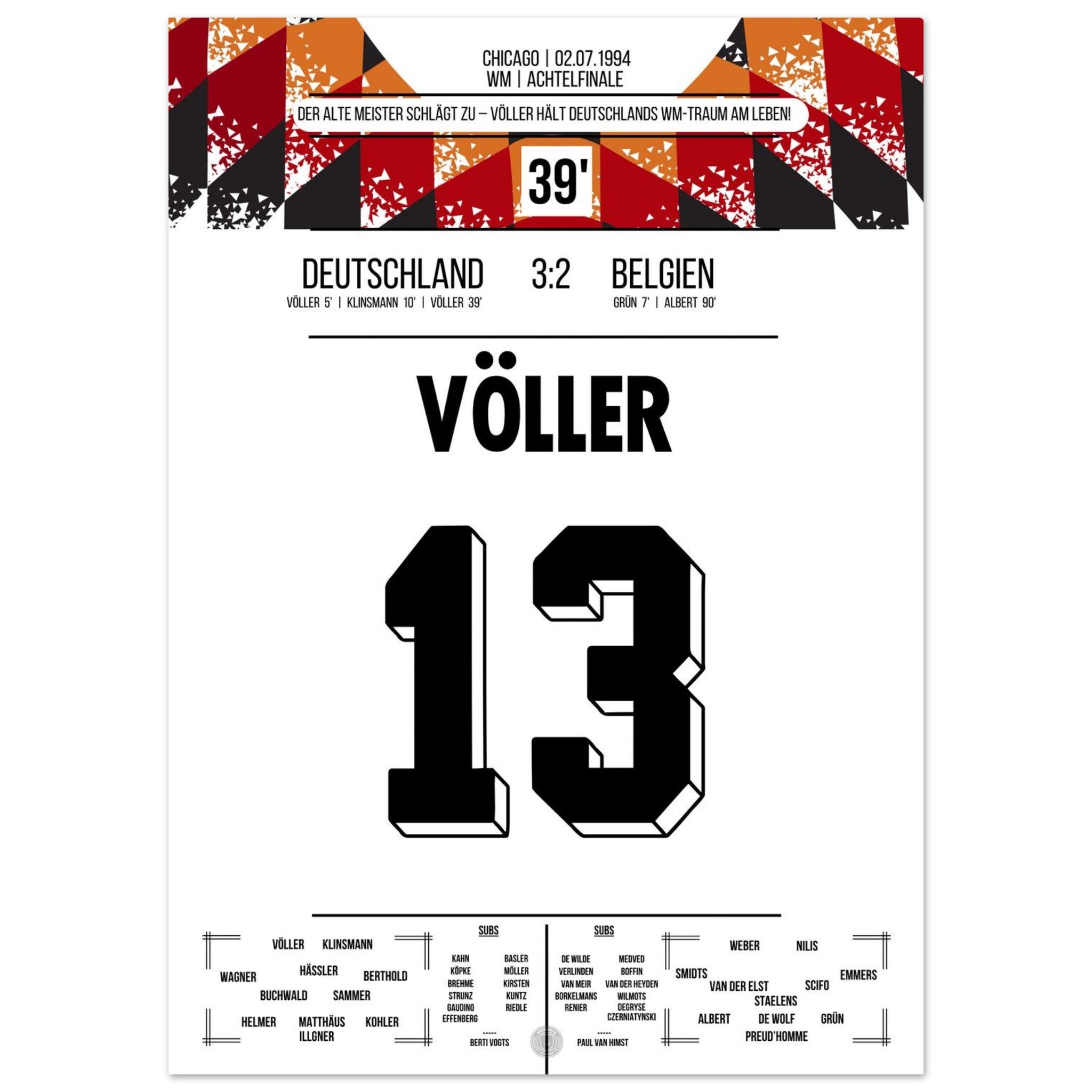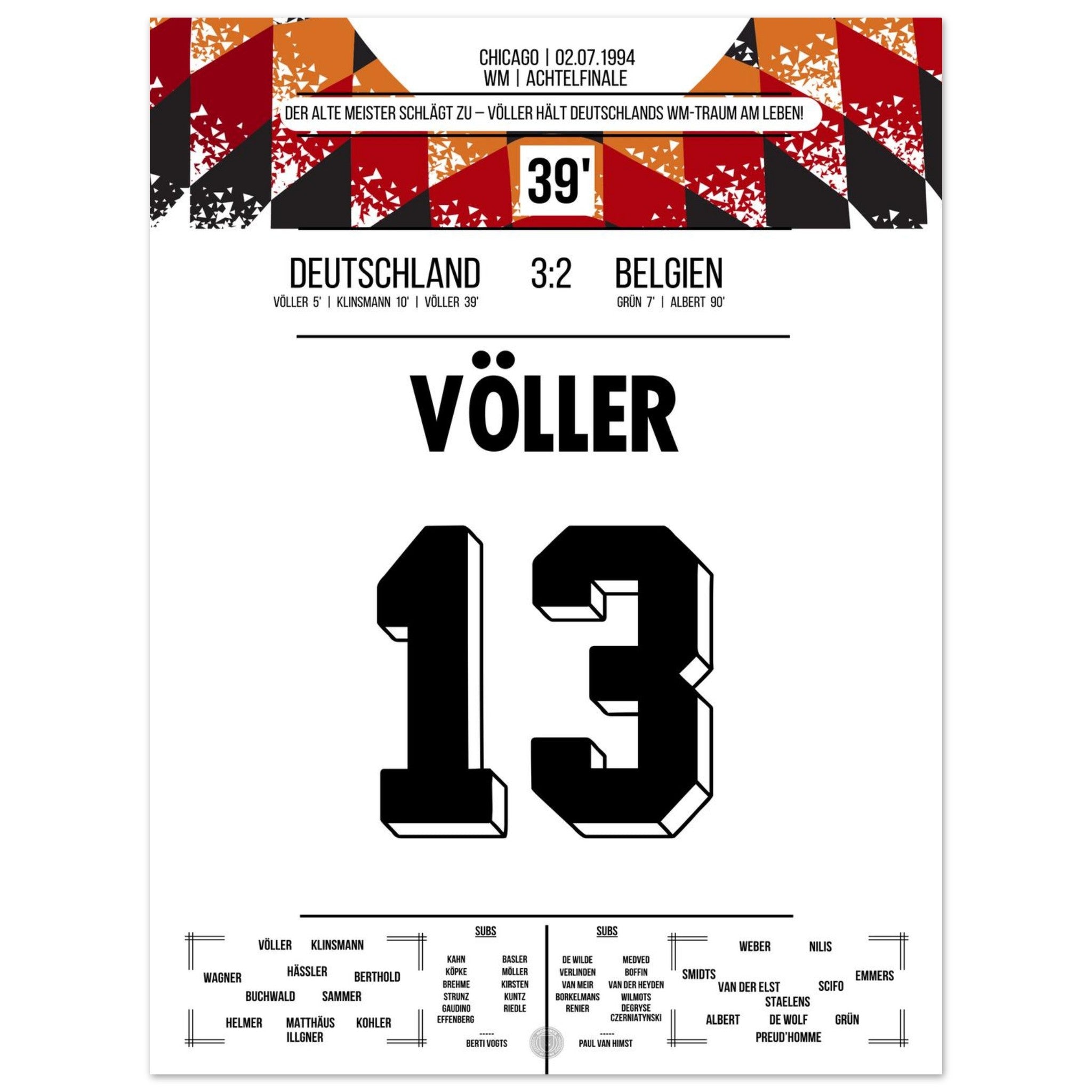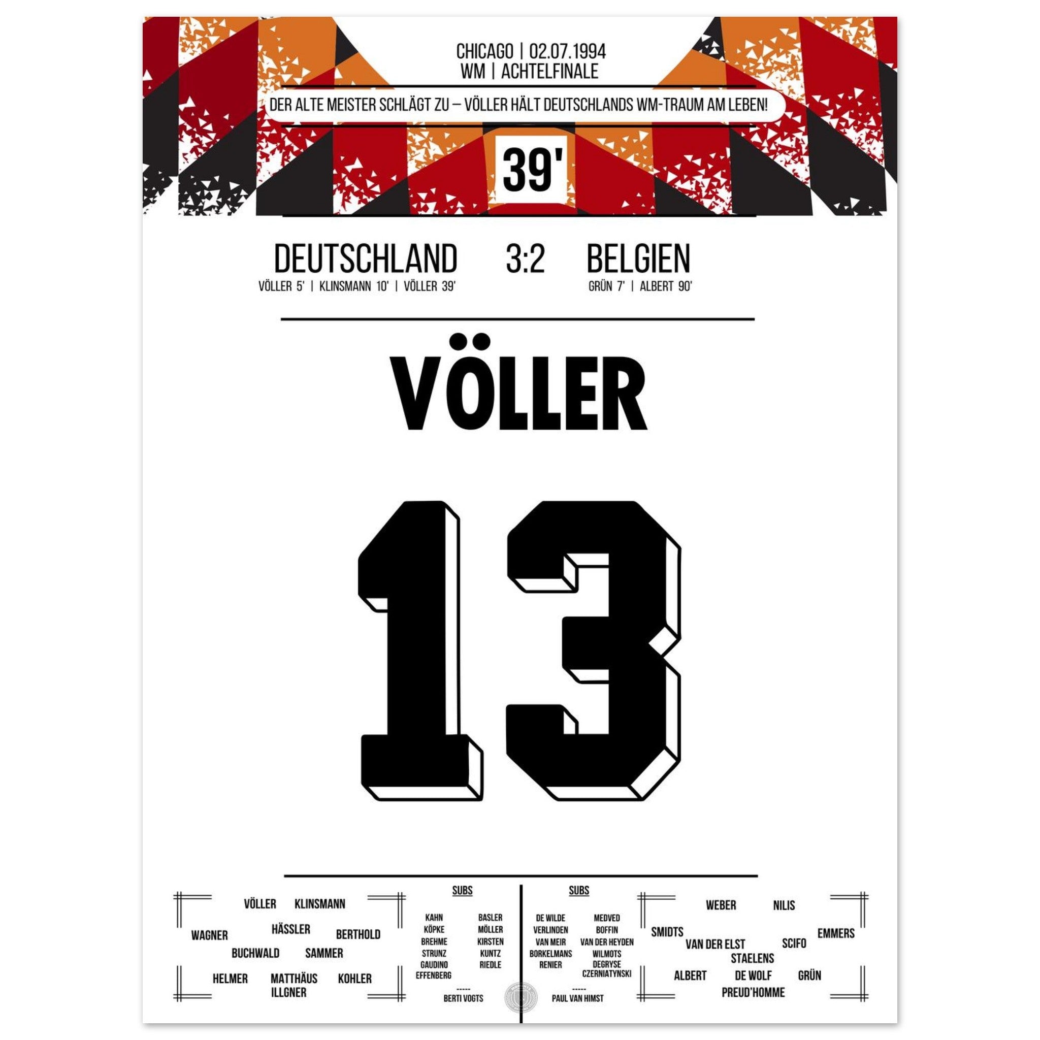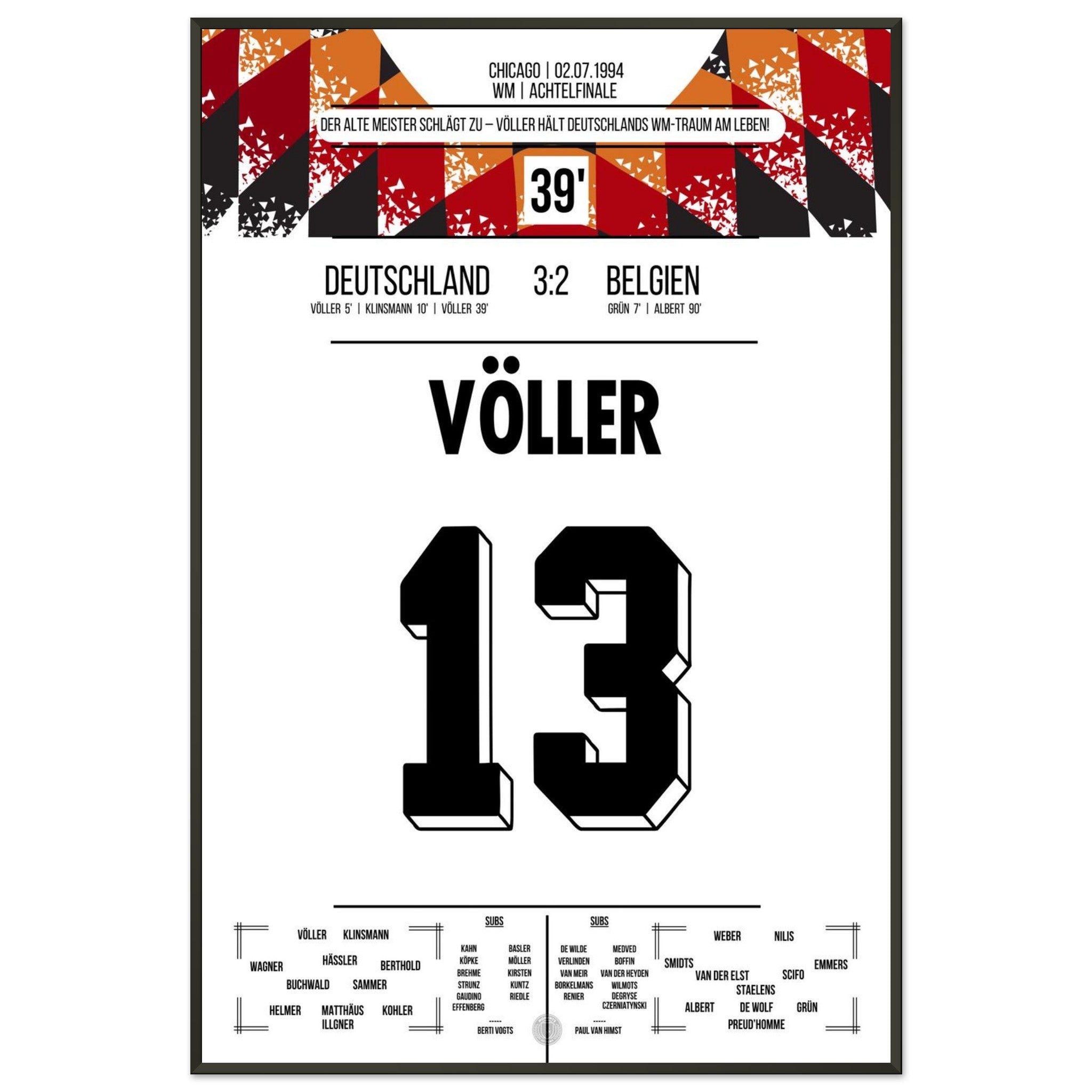 Völler scores twice in Germany's victory in the Round of 16 at the 1994 World Cup.