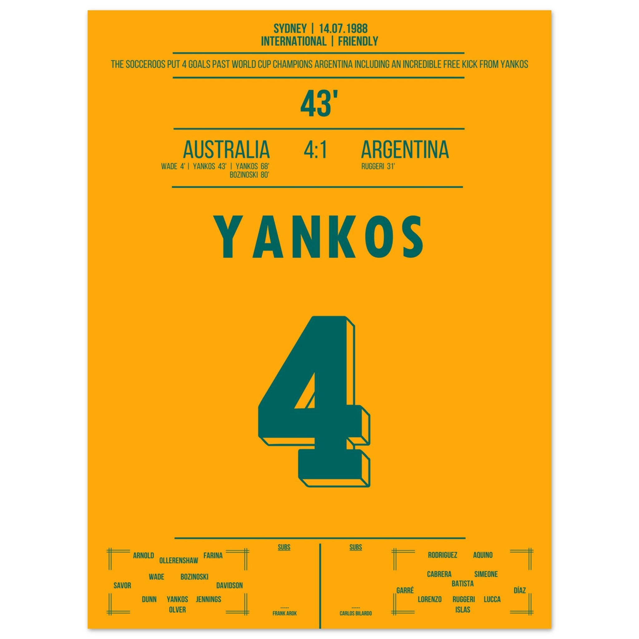 Yankos' incredible free kick goal against Argentina 1988