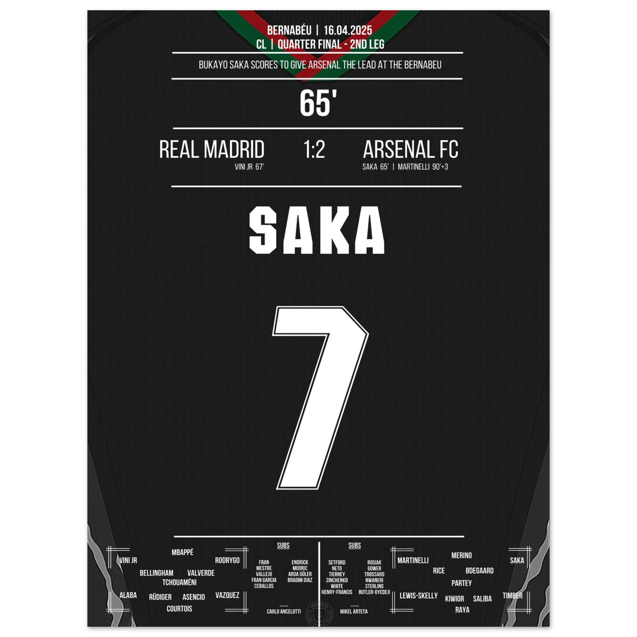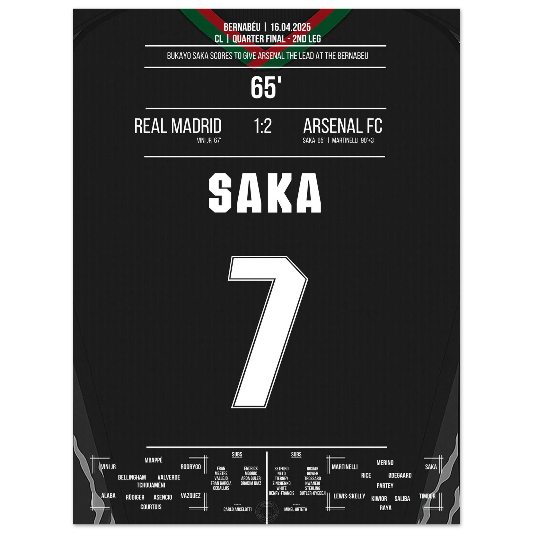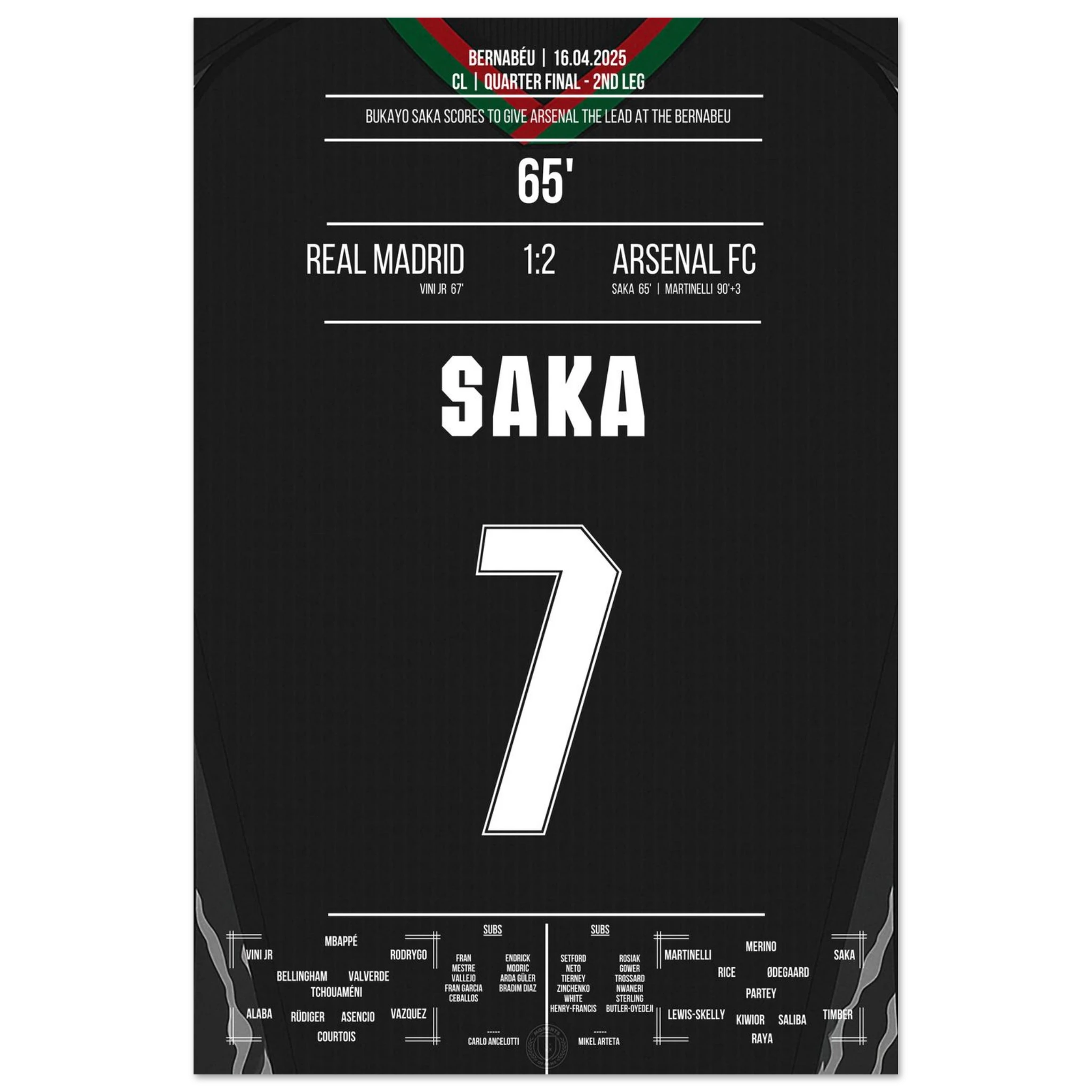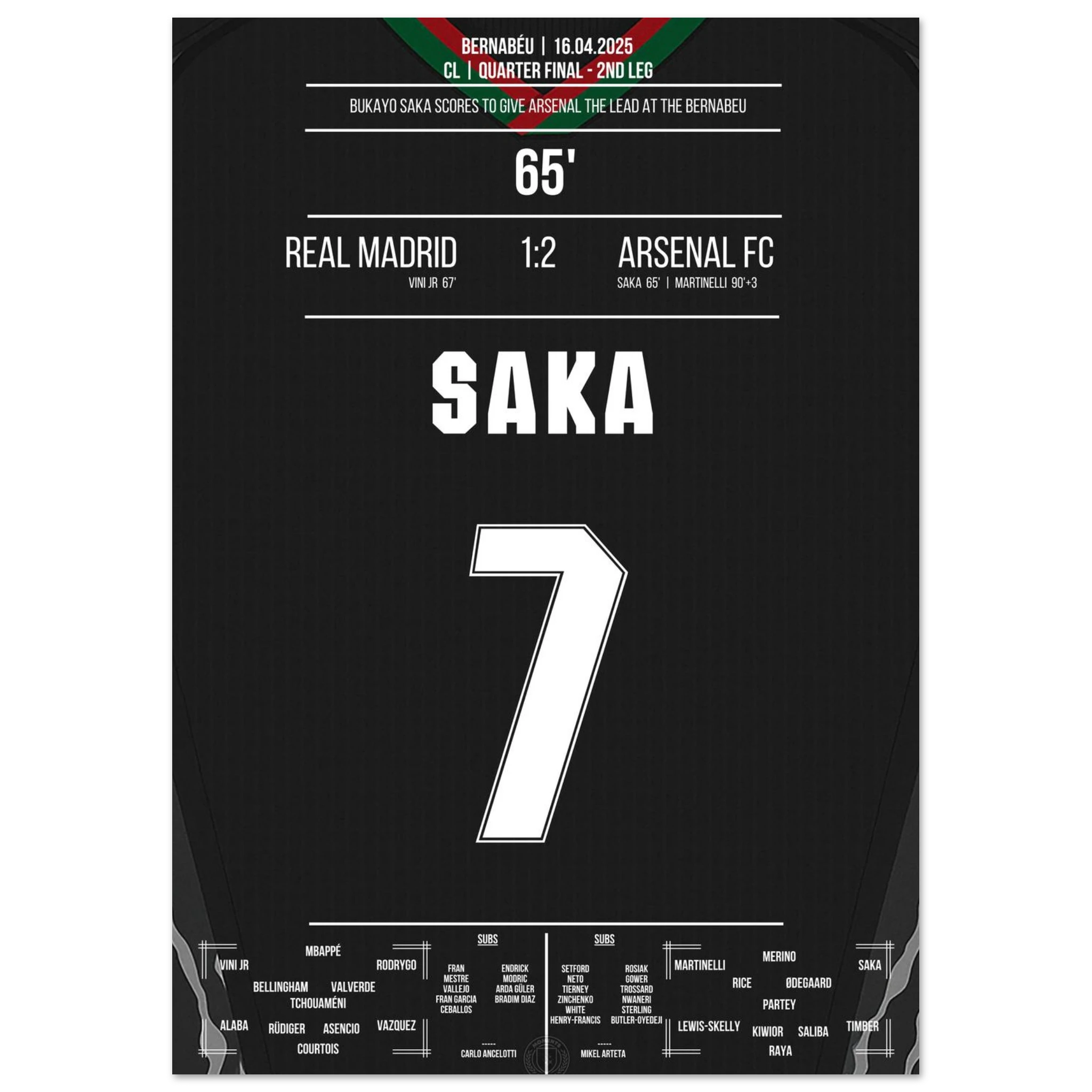 Saka scores like Thierry Henry in 2006 to make it 1-0 at the Bernabeu.