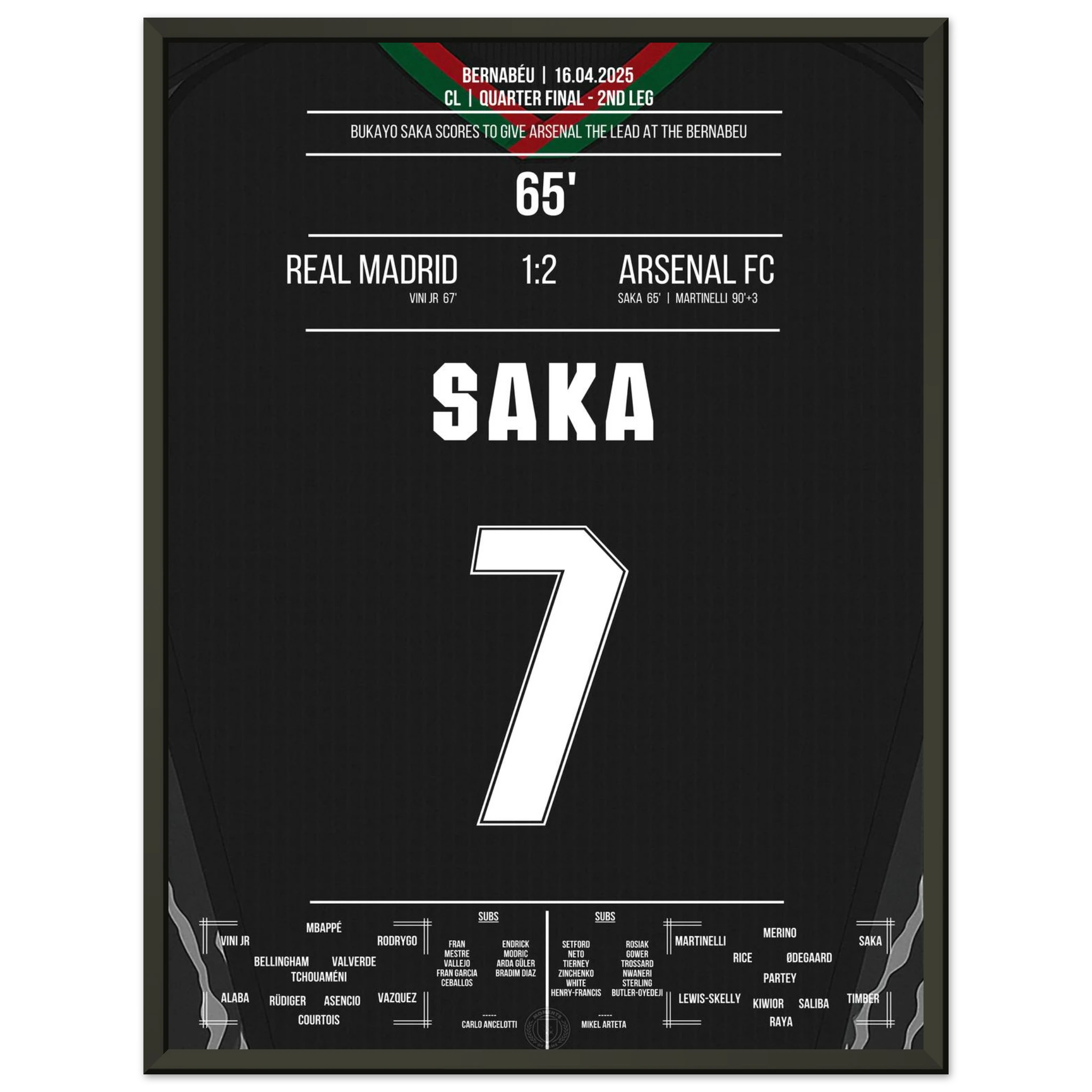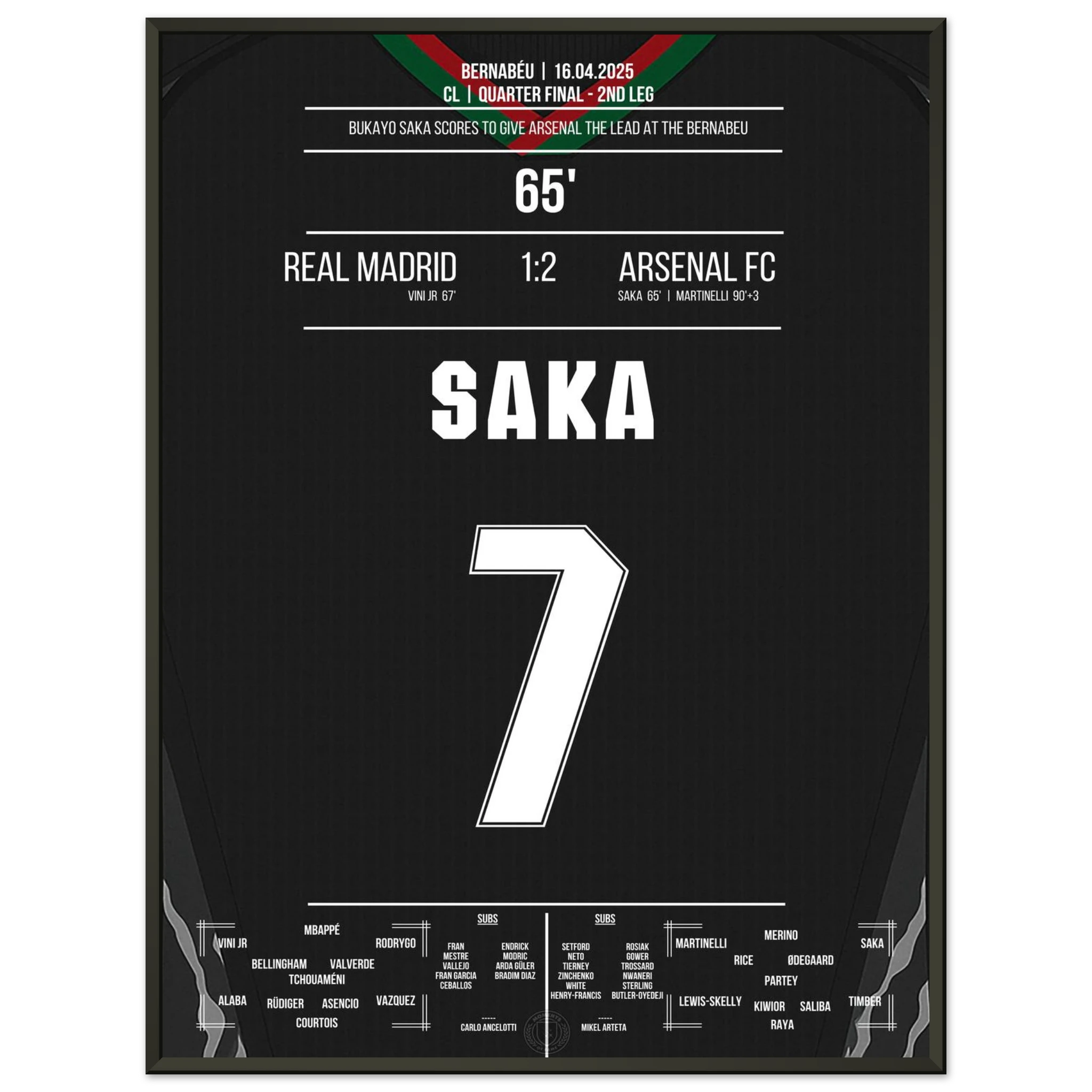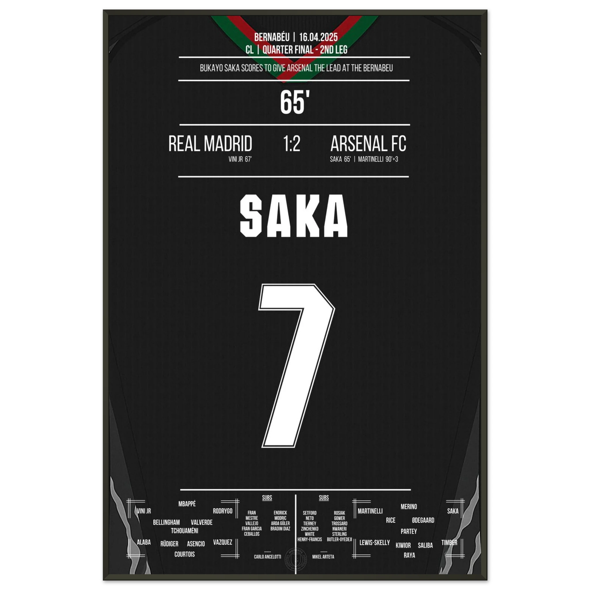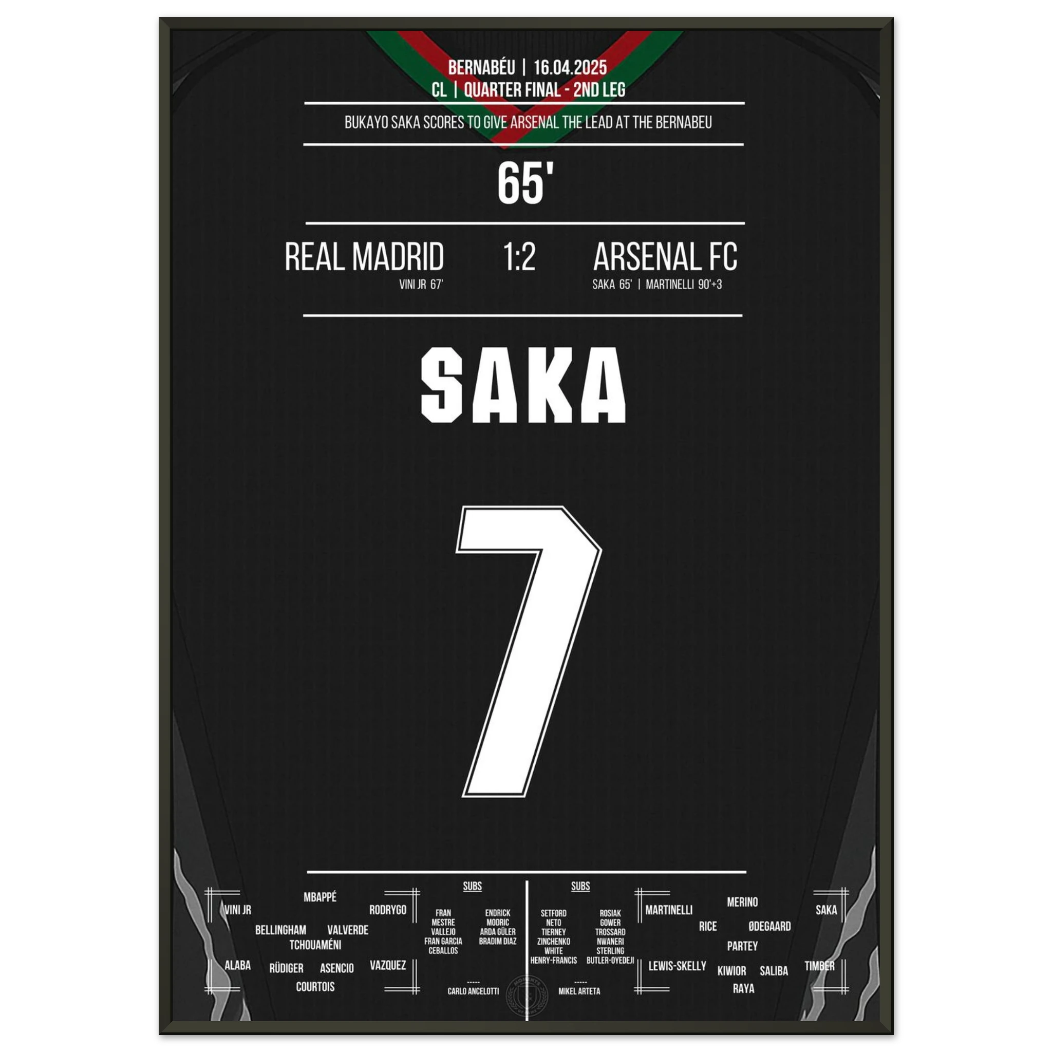 Saka scores like Thierry Henry in 2006 to make it 1-0 at the Bernabeu.
