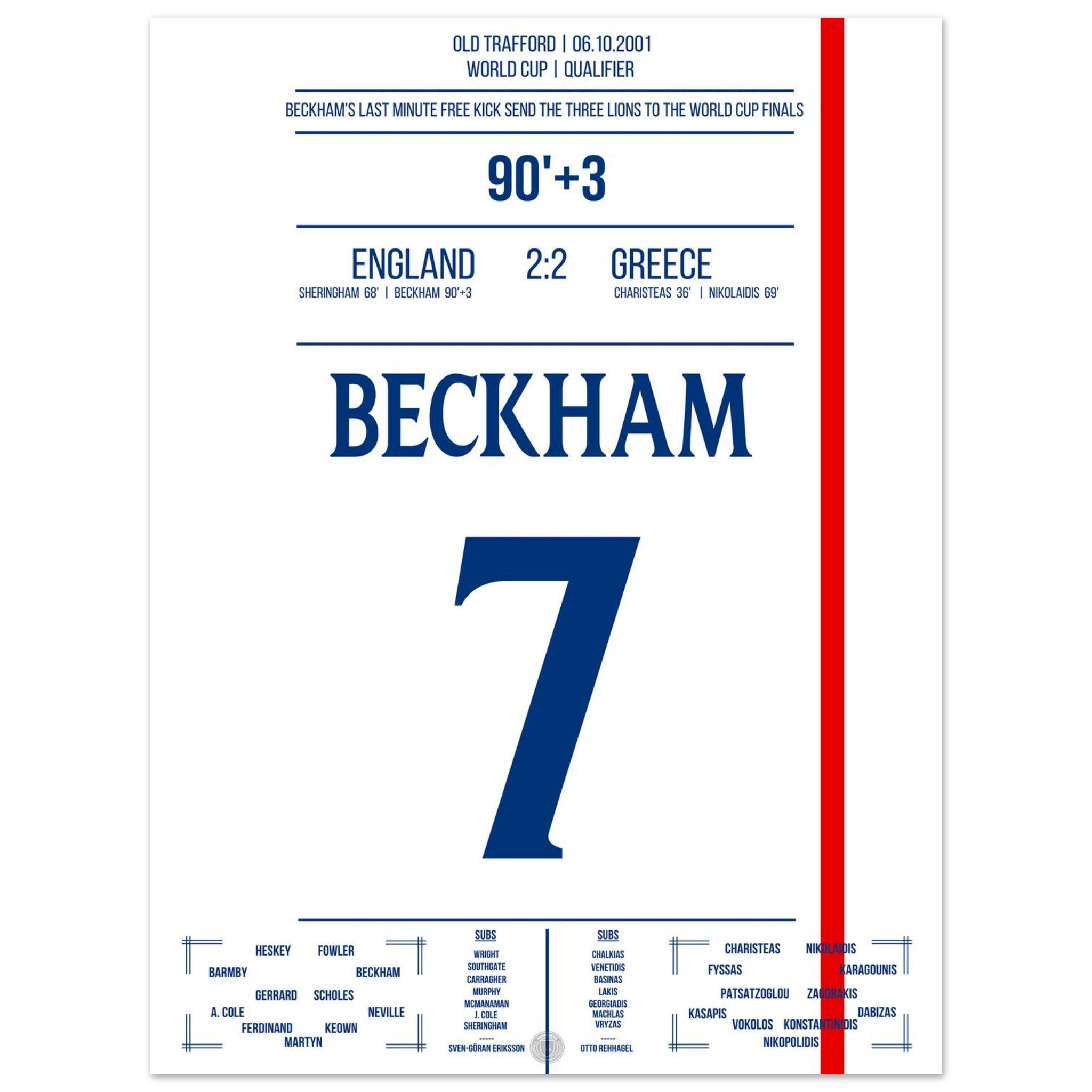 Unser Poster fängt diesen Gänsehautmoment ein – Beckhams göttlicher rechter Fuß, der ein ganzes Land jubeln ließ.