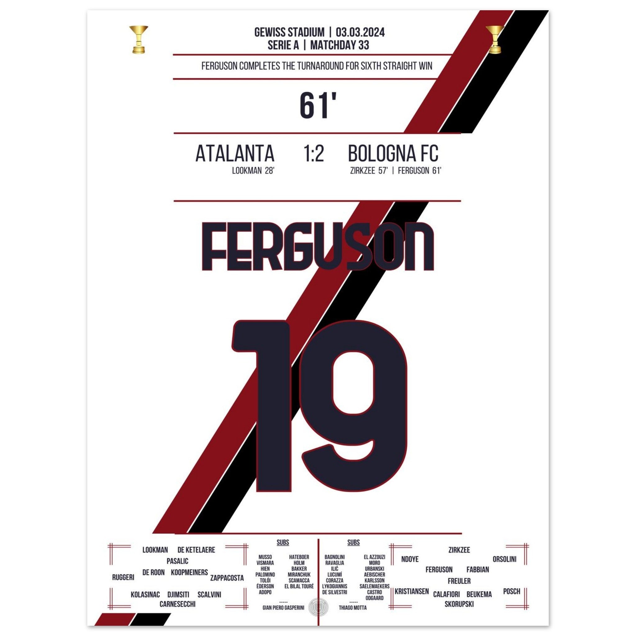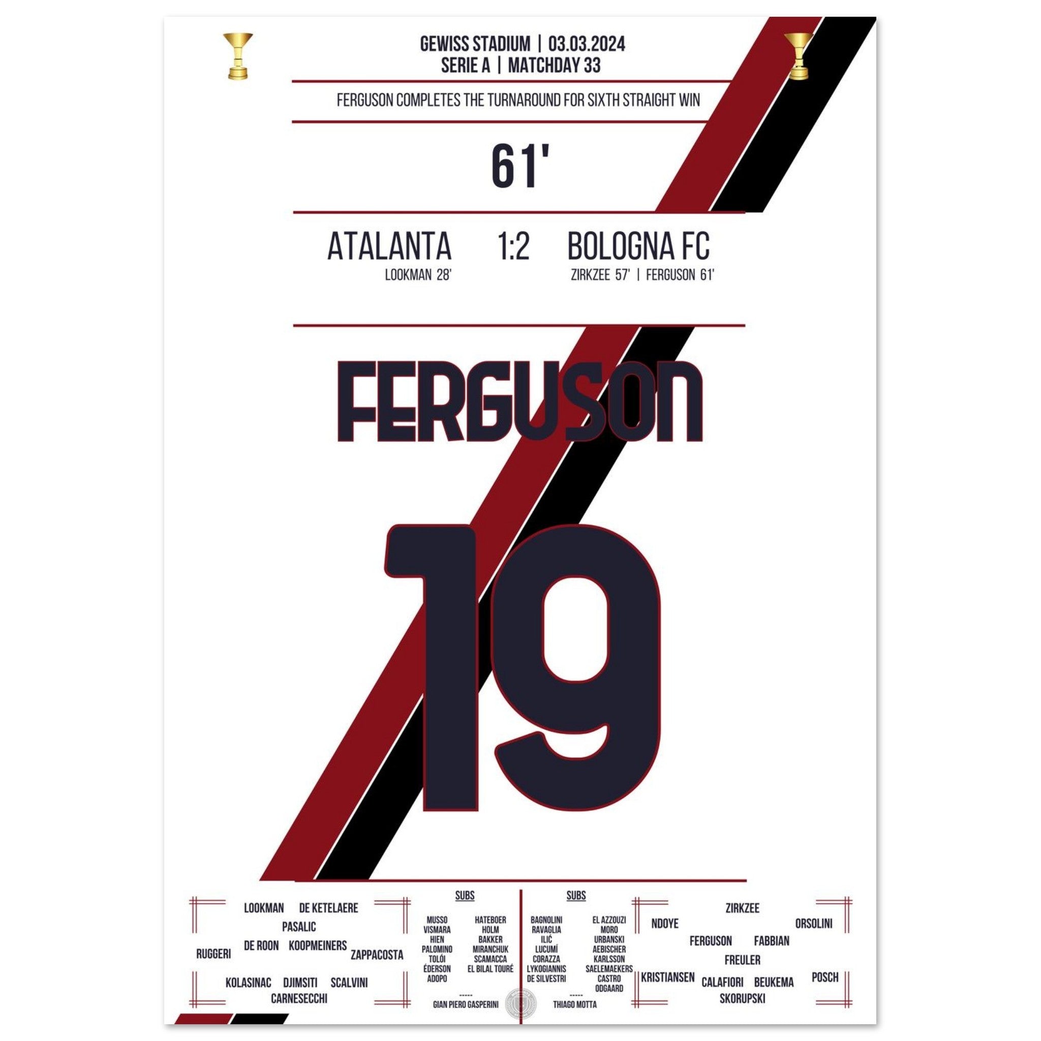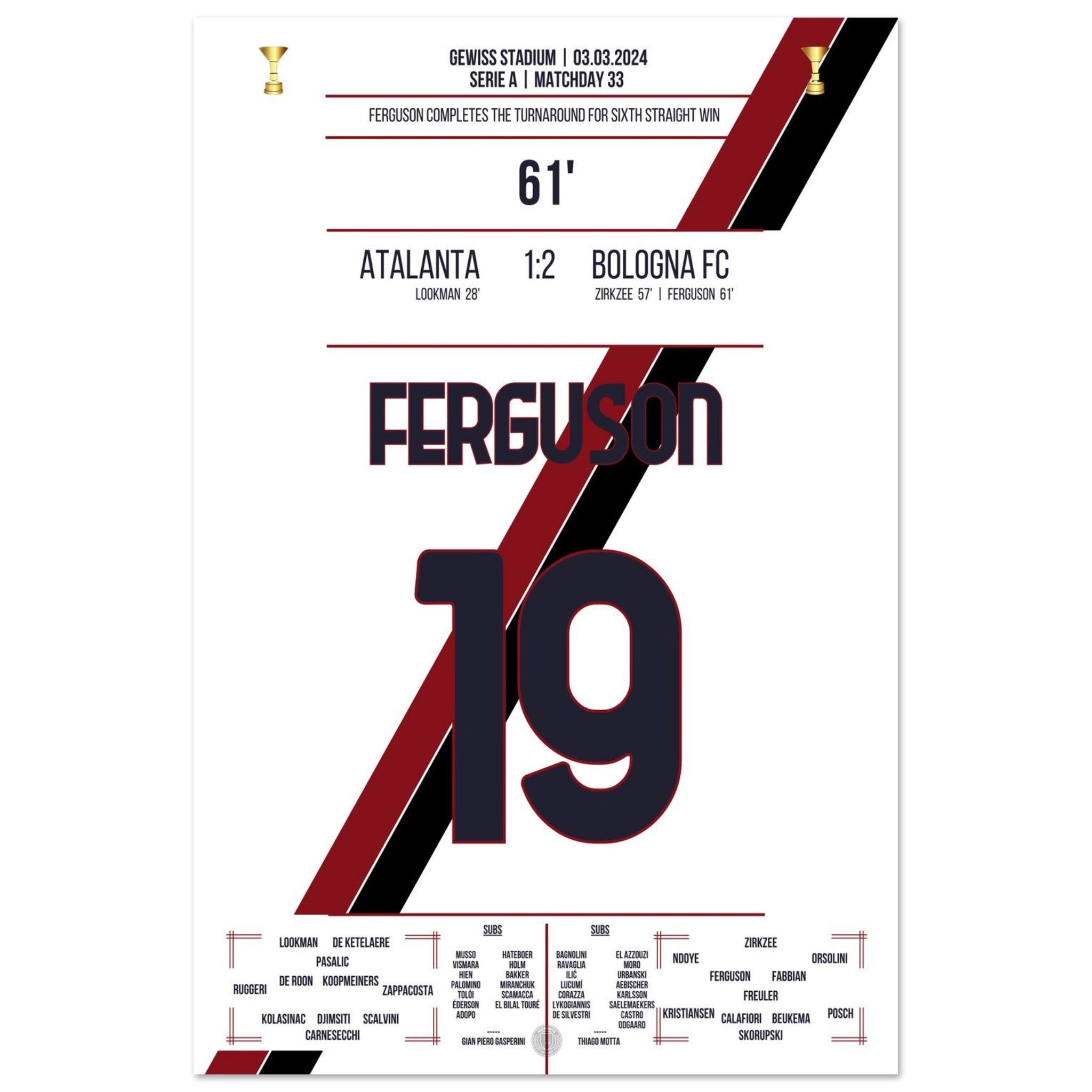 Bologna dreht das Spiel zum 6. Sieg in Folge