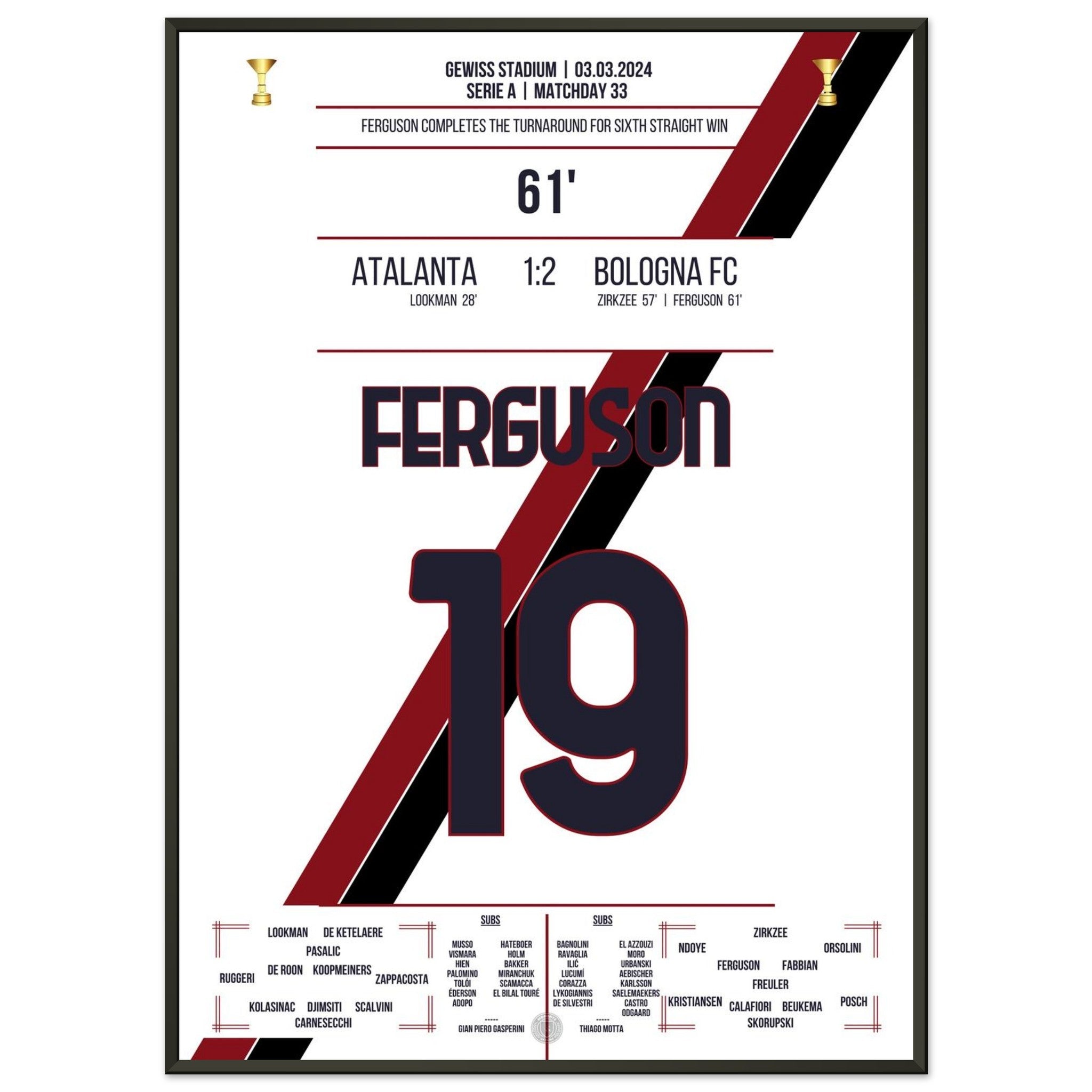 Hier kommt unser Premium-Druck dieses unvergesslichen Fußballmoments für das ultimative Fan-Erlebnis. Gedruckt auf schwerem, seidenmattem Premium-Papier, glänzt dieses Kunstwerk mit verstärkten Farben und einem subtilen Glanz, der jedes Detail zum Vorschein bringt.