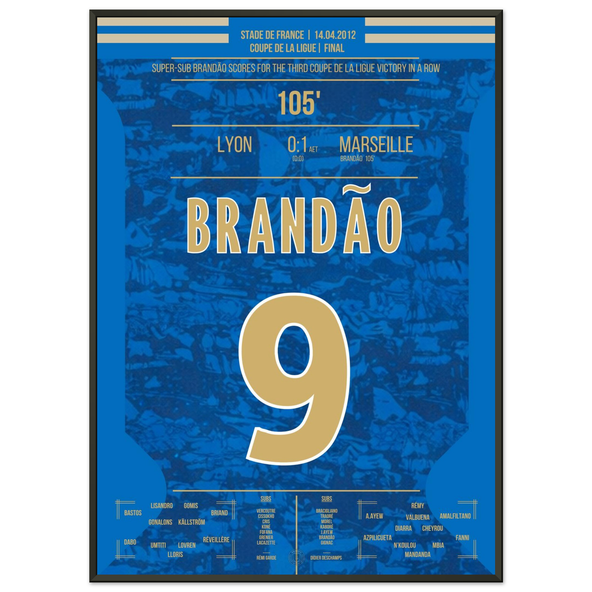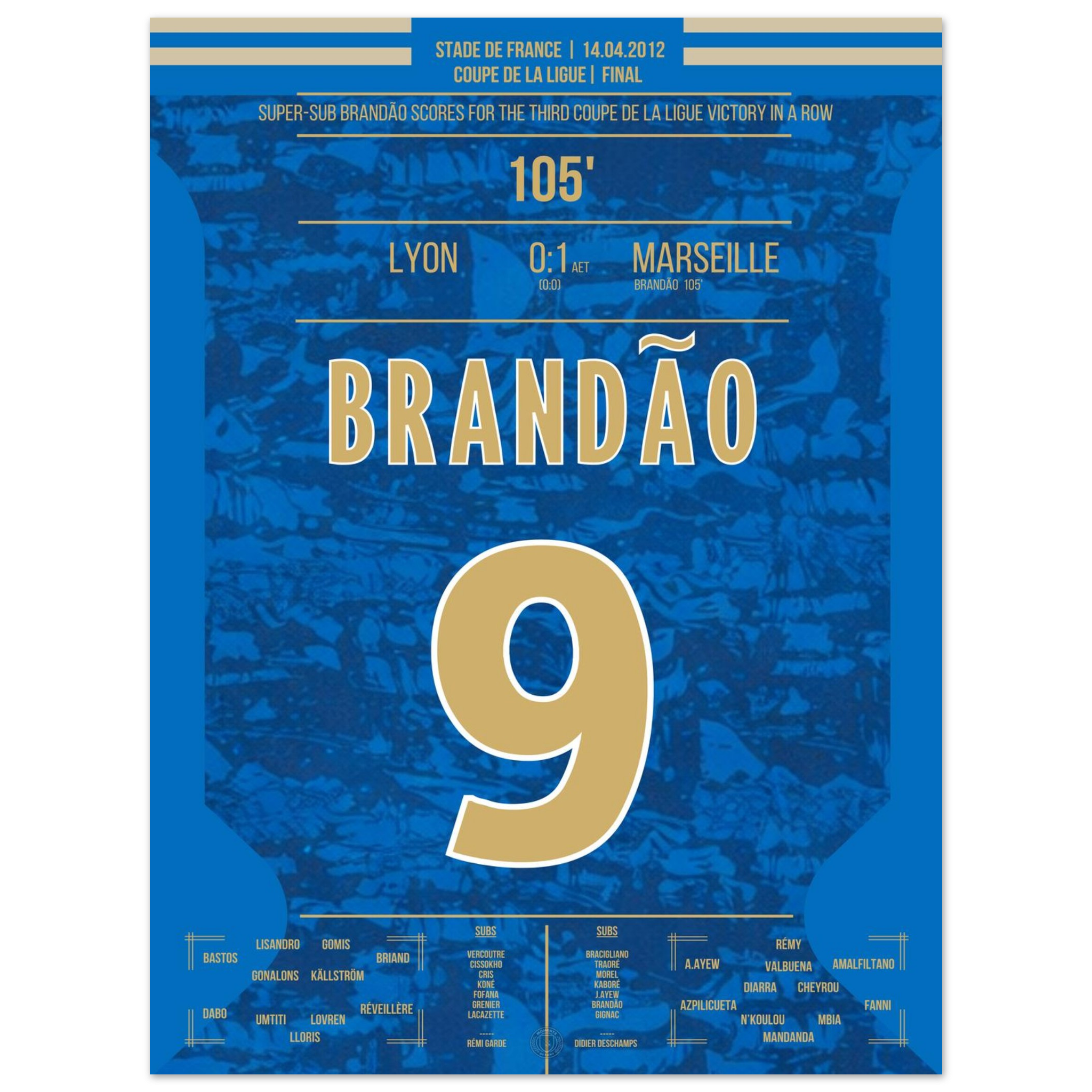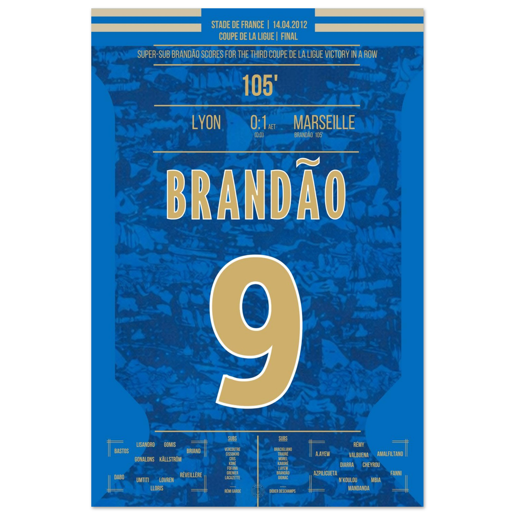 Dieses Poster fängt den Augenblick ein, in dem Brandão Geschichte schrieb und Marseille jubeln ließ.