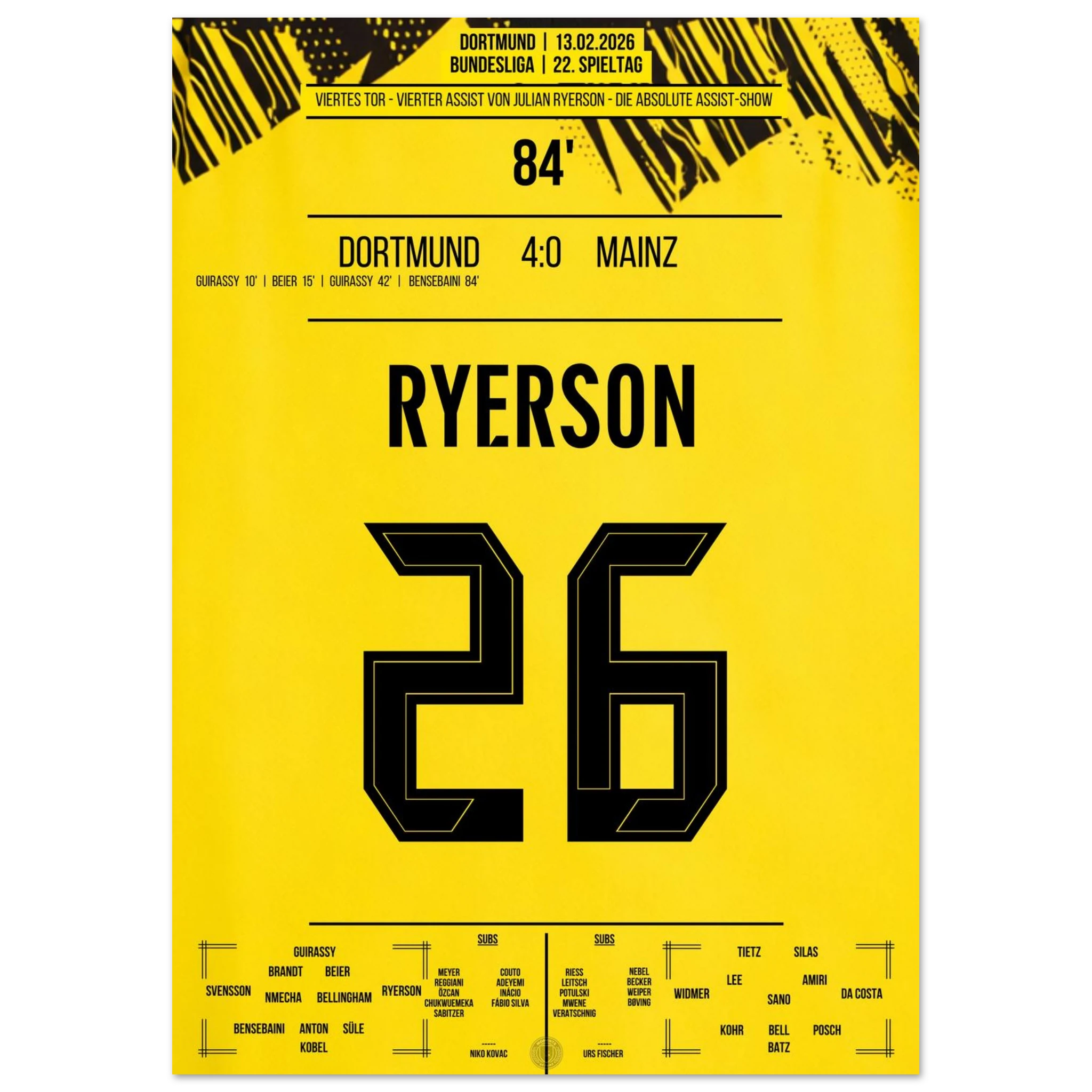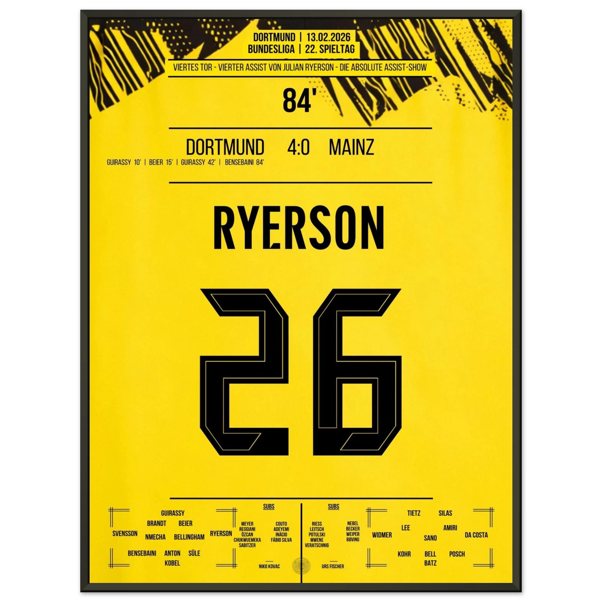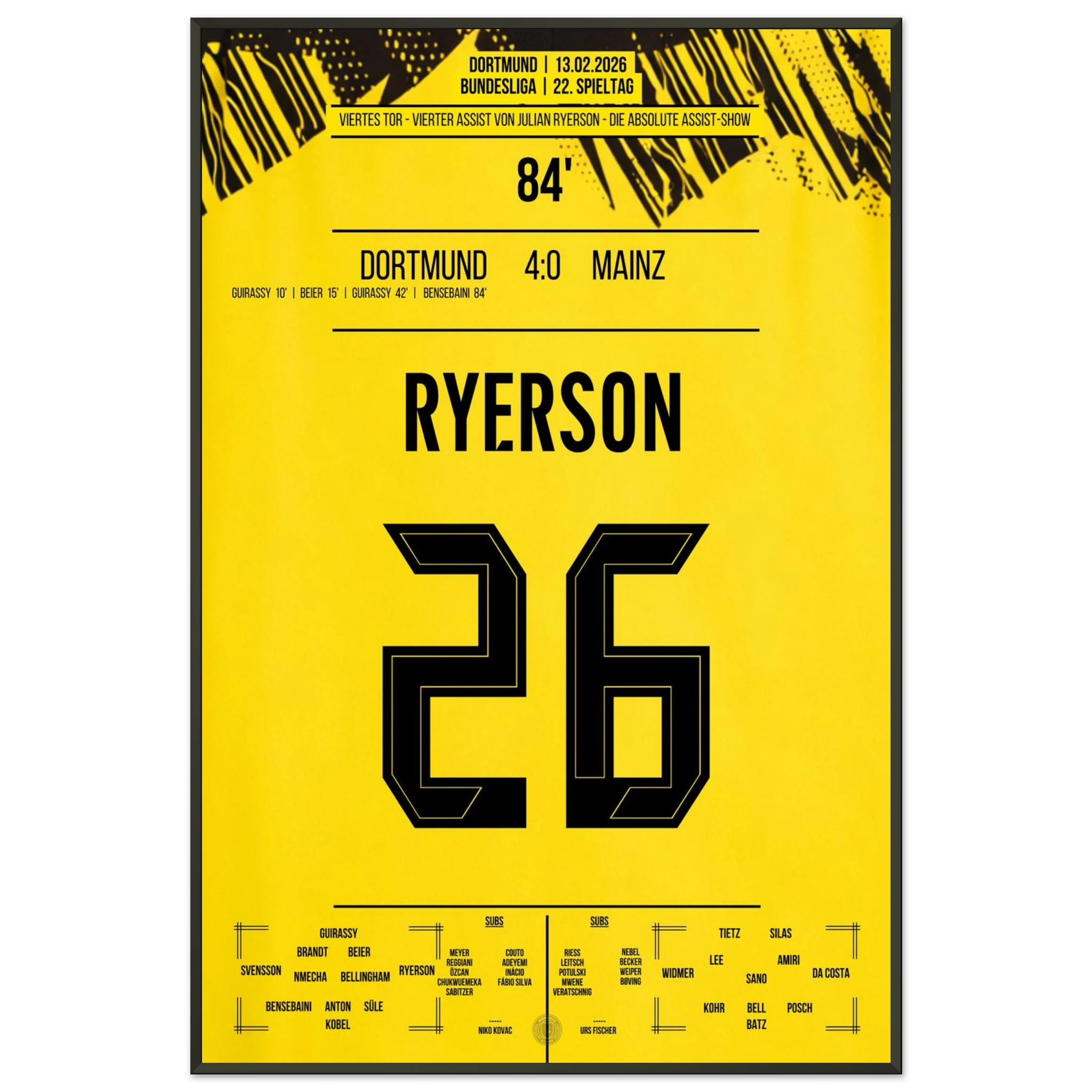 Dieses Poster hält den Moment fest, in dem Ryerson zum Architekten eines 4:0-Triumphs wurde – eine Vorlage-Show für die Ewigkeit. ⚽🔥