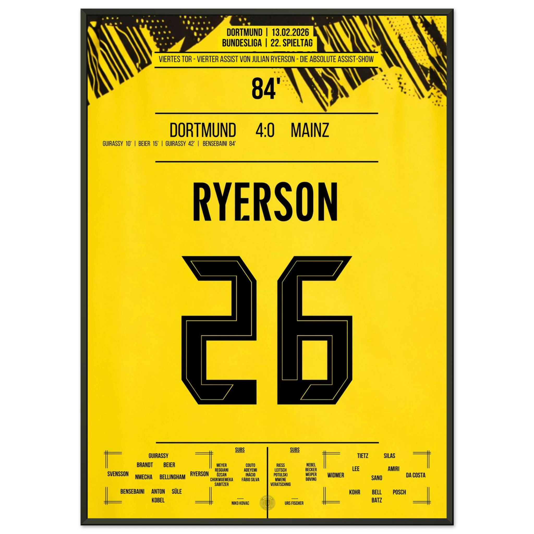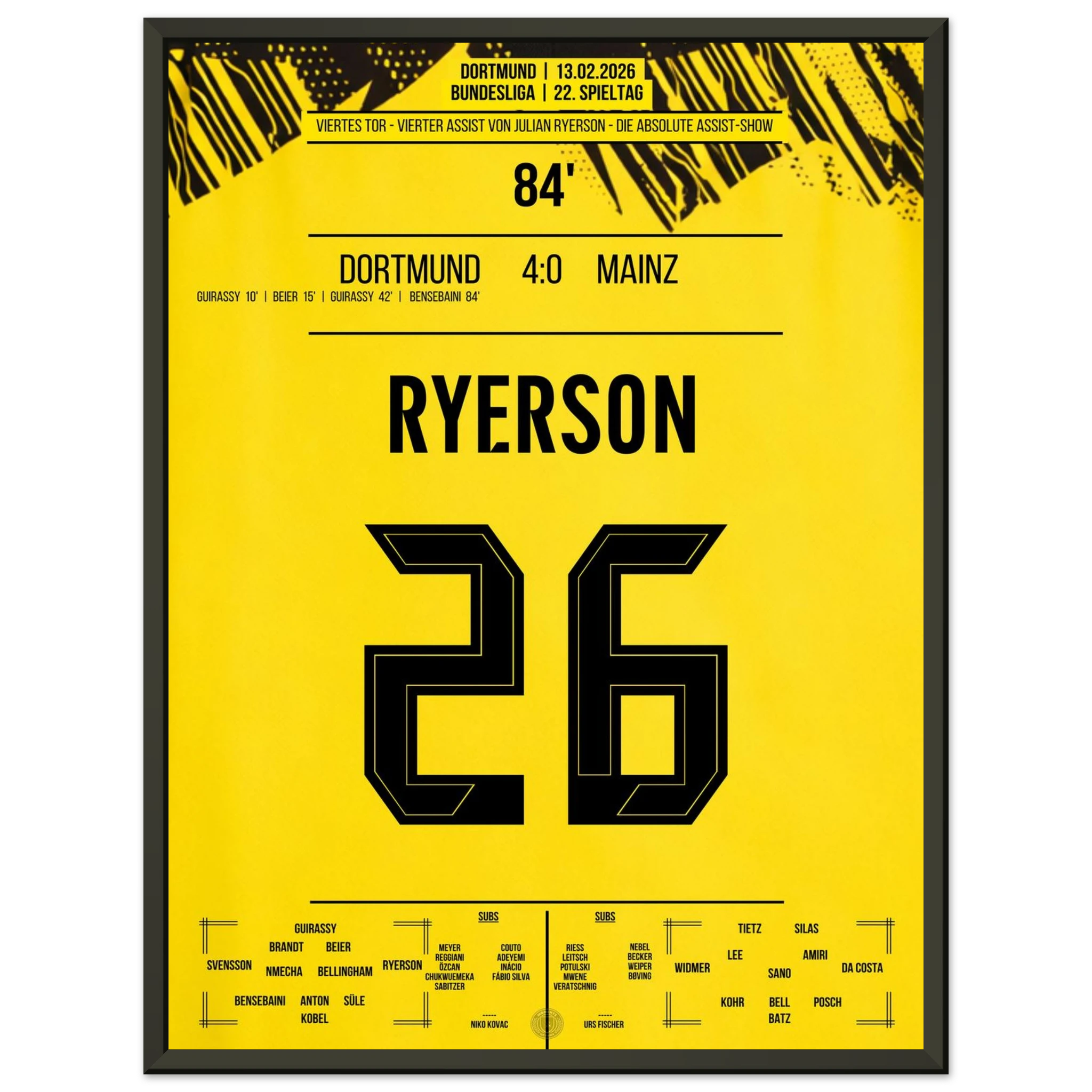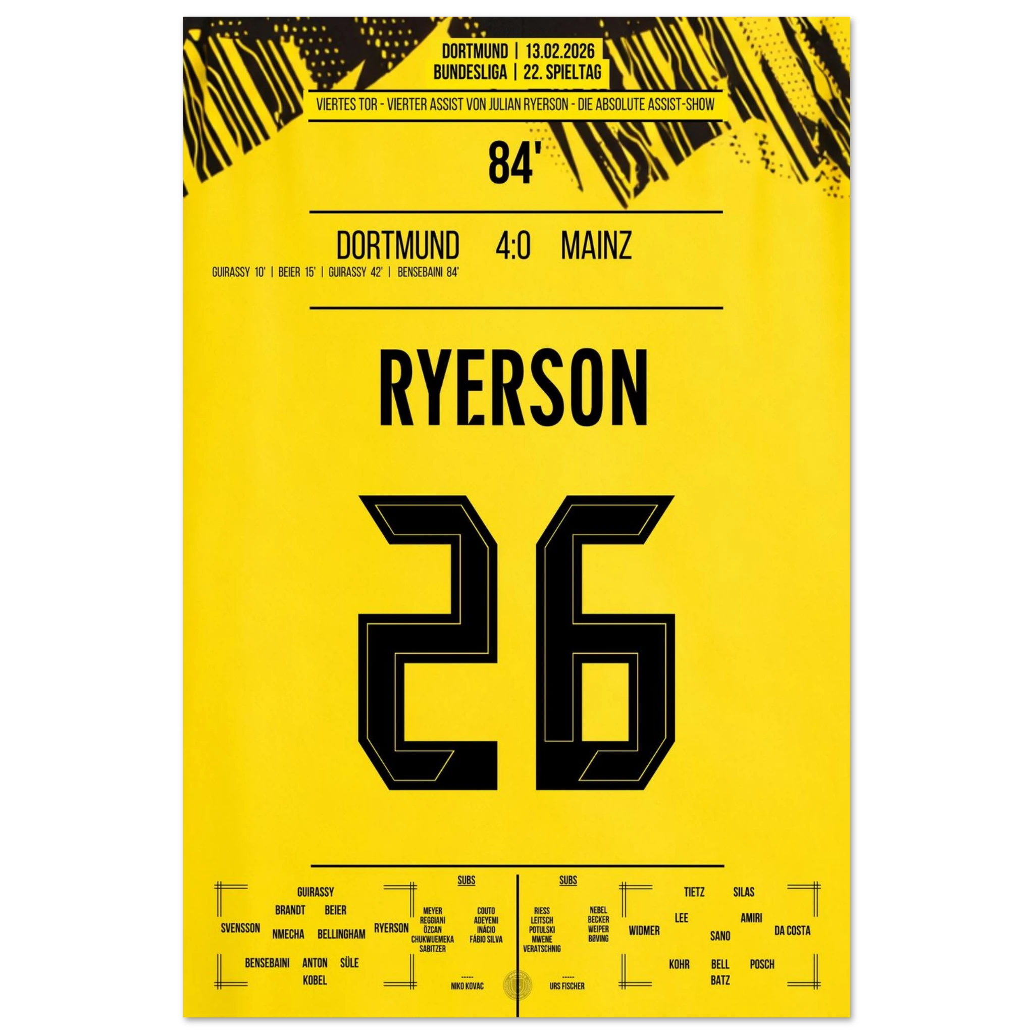 Dieses Poster hält den Moment fest, in dem Ryerson zum Architekten eines 4:0-Triumphs wurde – eine Vorlage-Show für die Ewigkeit. ⚽🔥