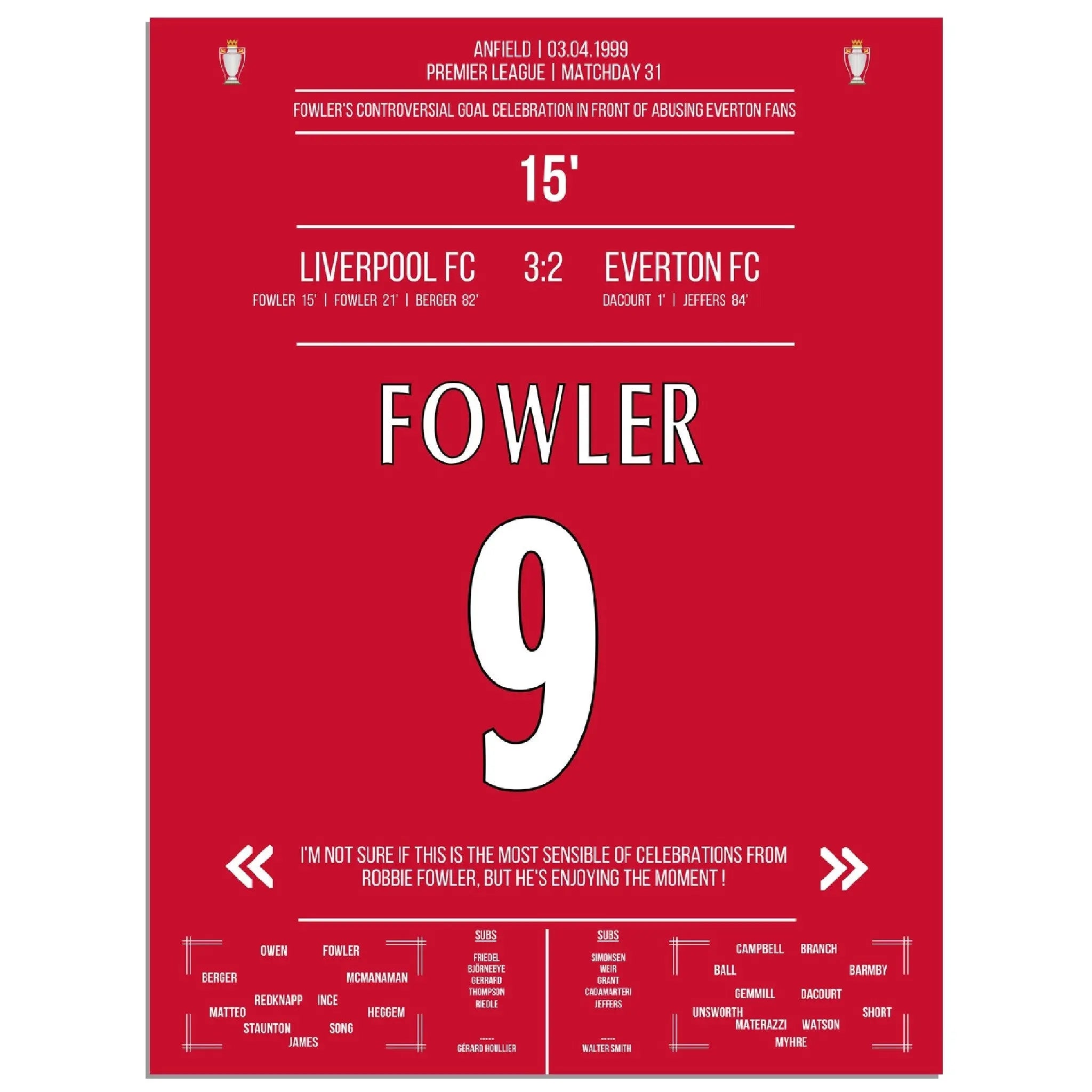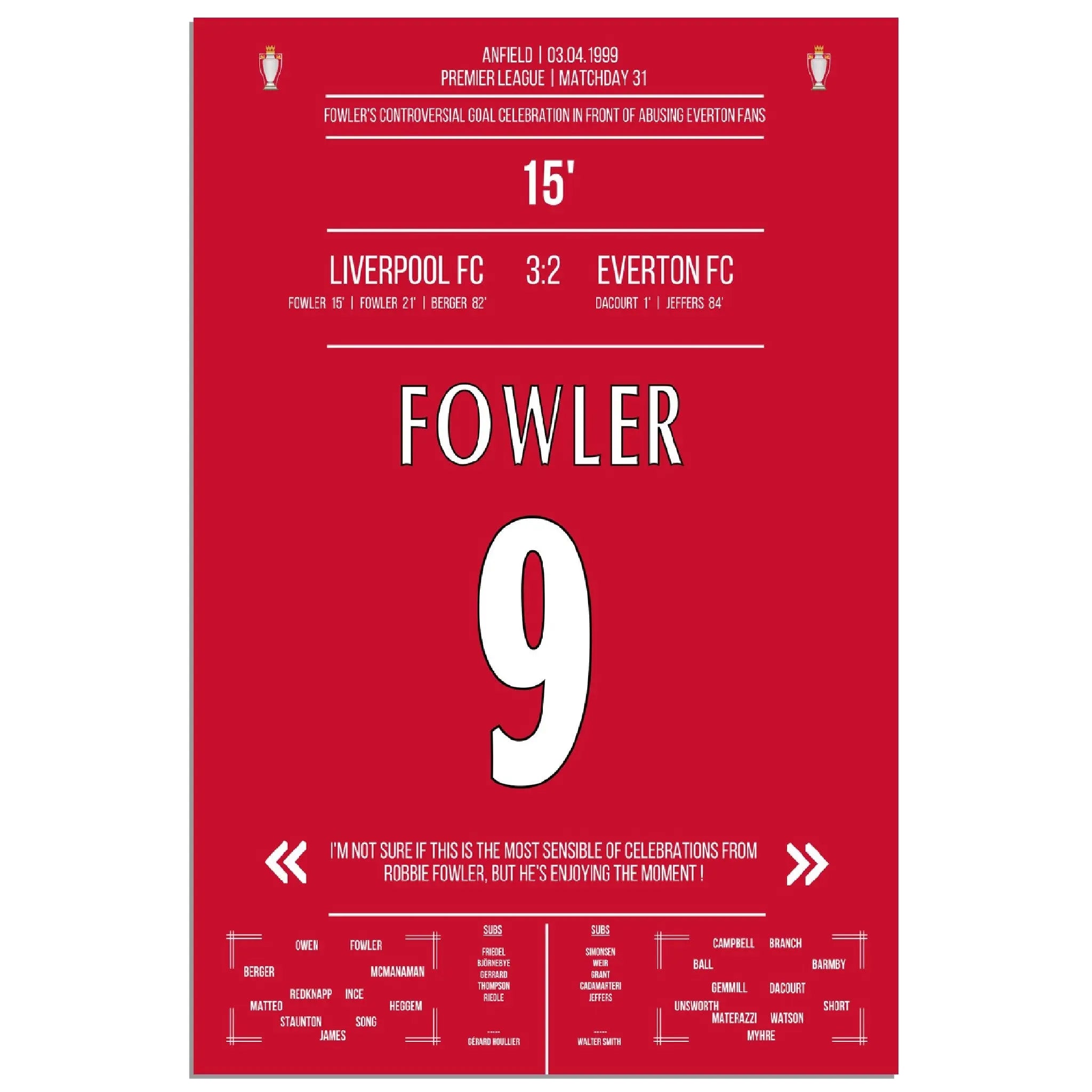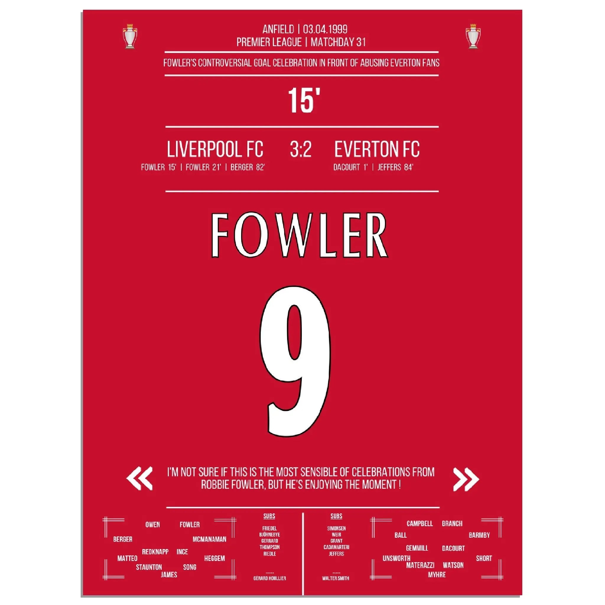 Fowlers außergewöhnlicher Torjubel Liverpool - Everton 1999 Premier League Merseyside Derby