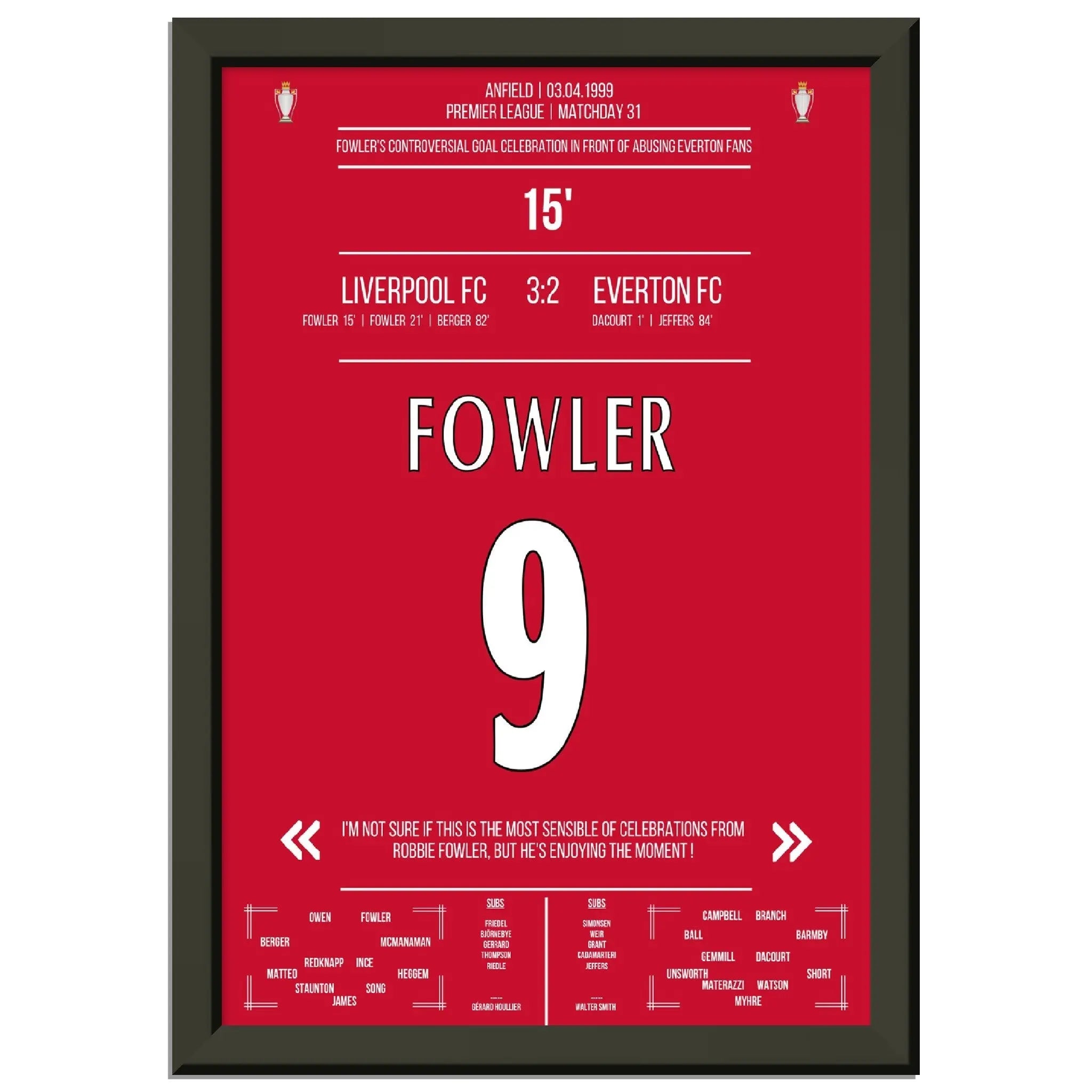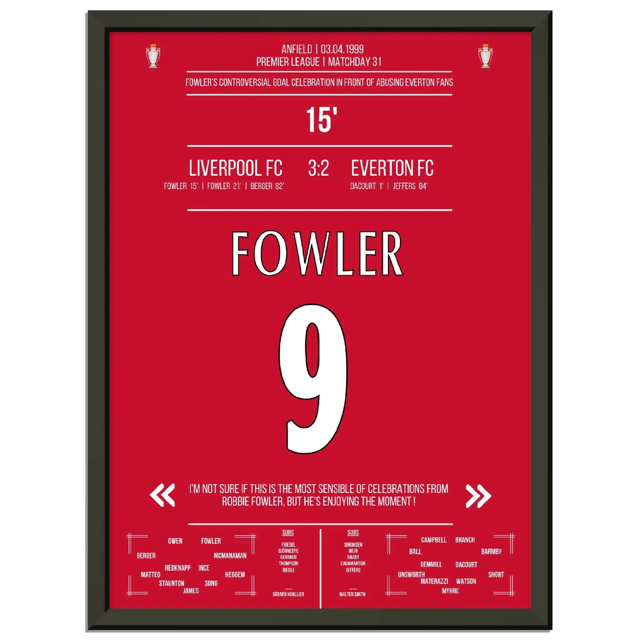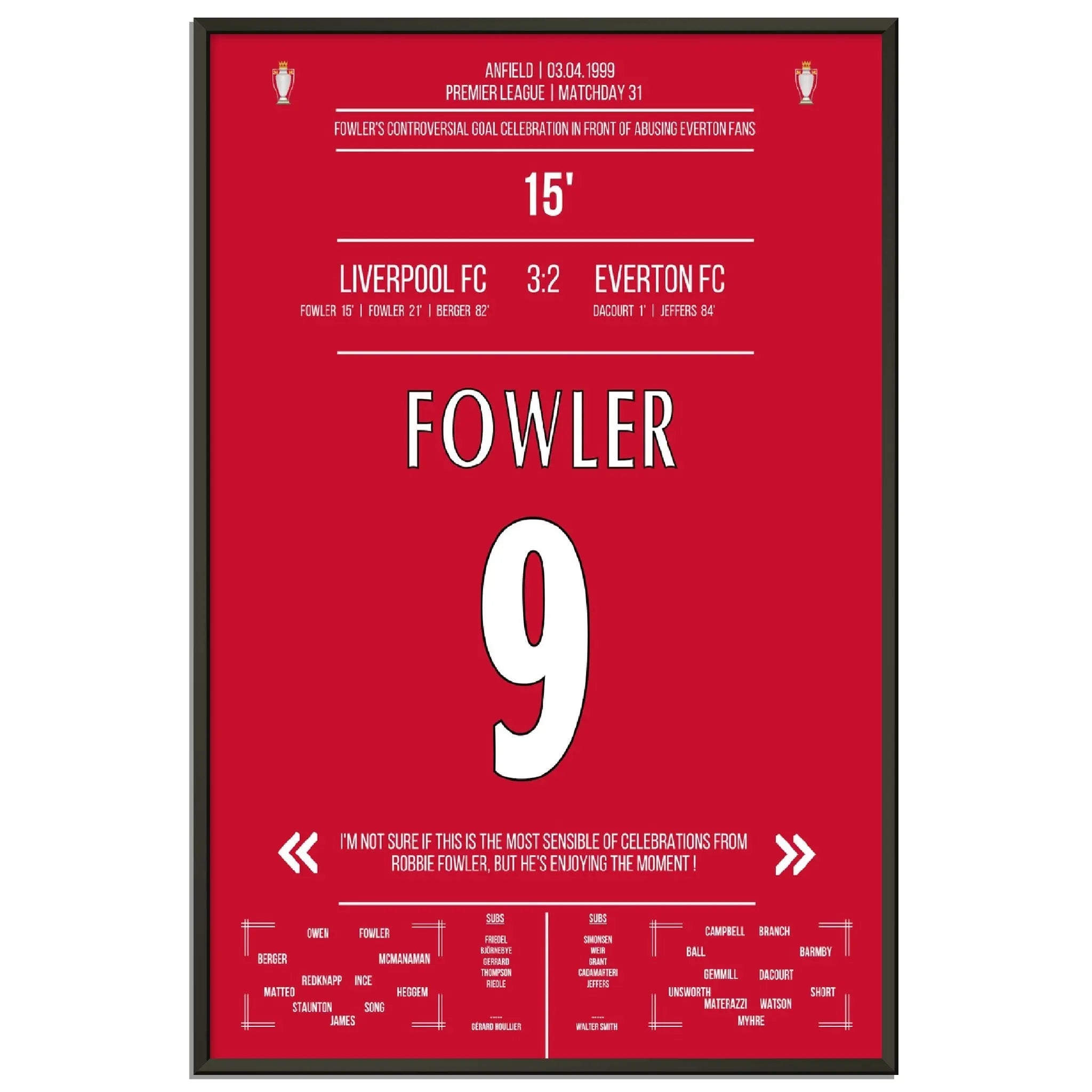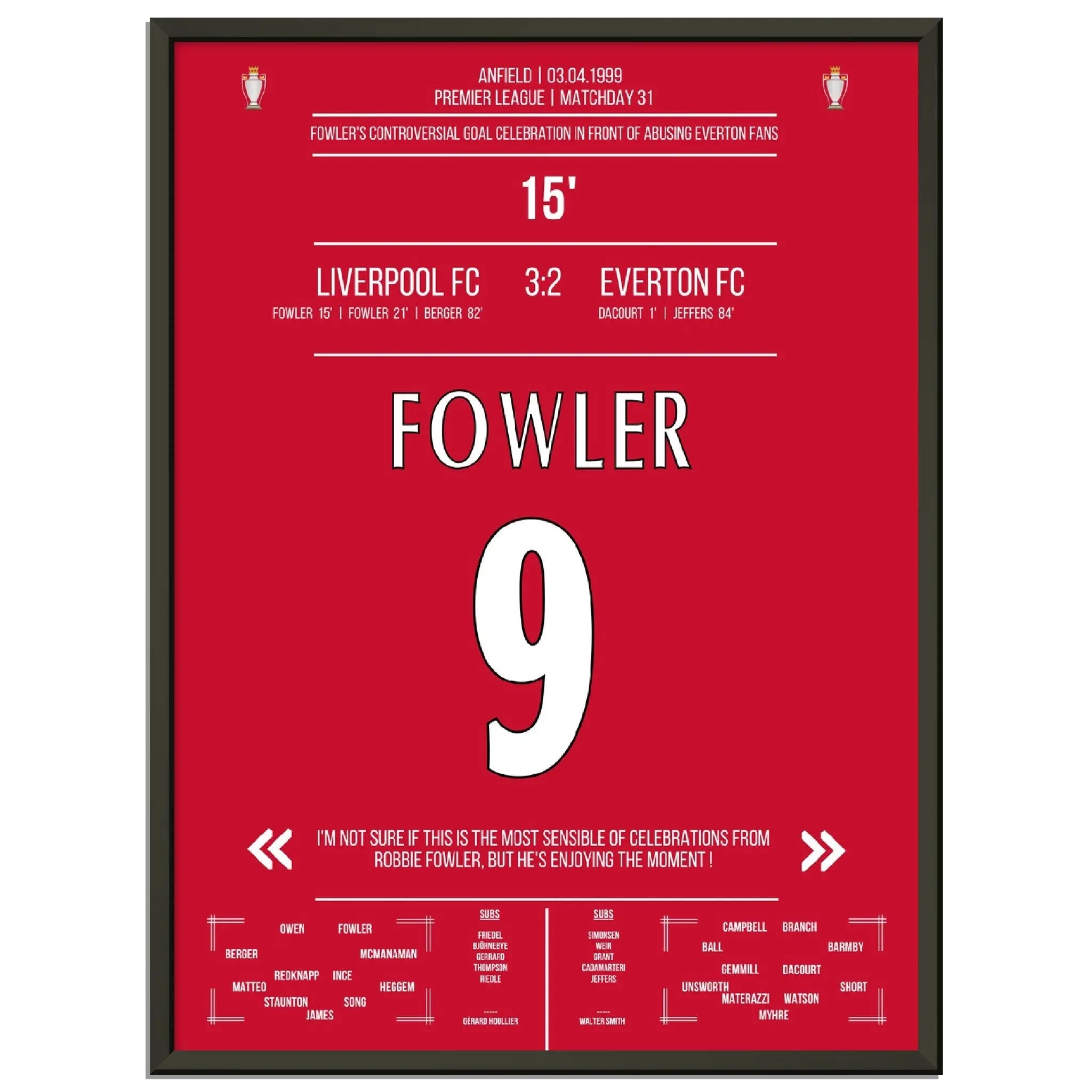 Fowlers außergewöhnlicher Torjubel Liverpool - Everton 1999 Premier League Merseyside Derby