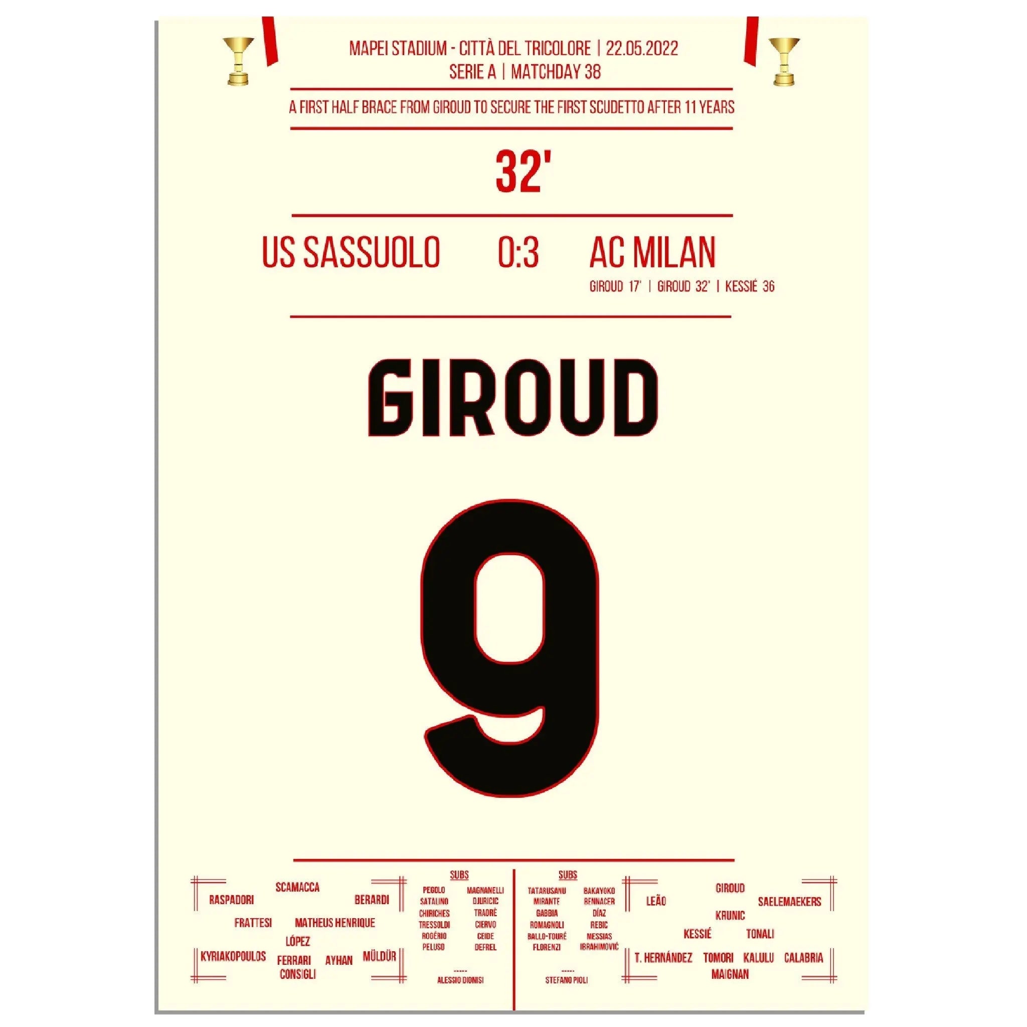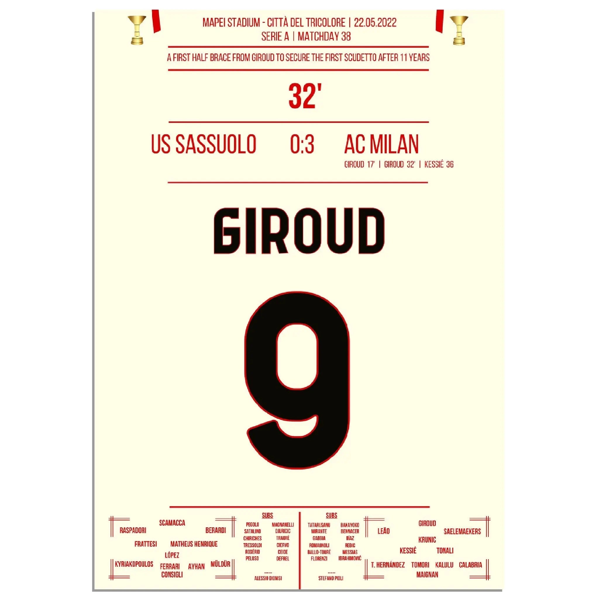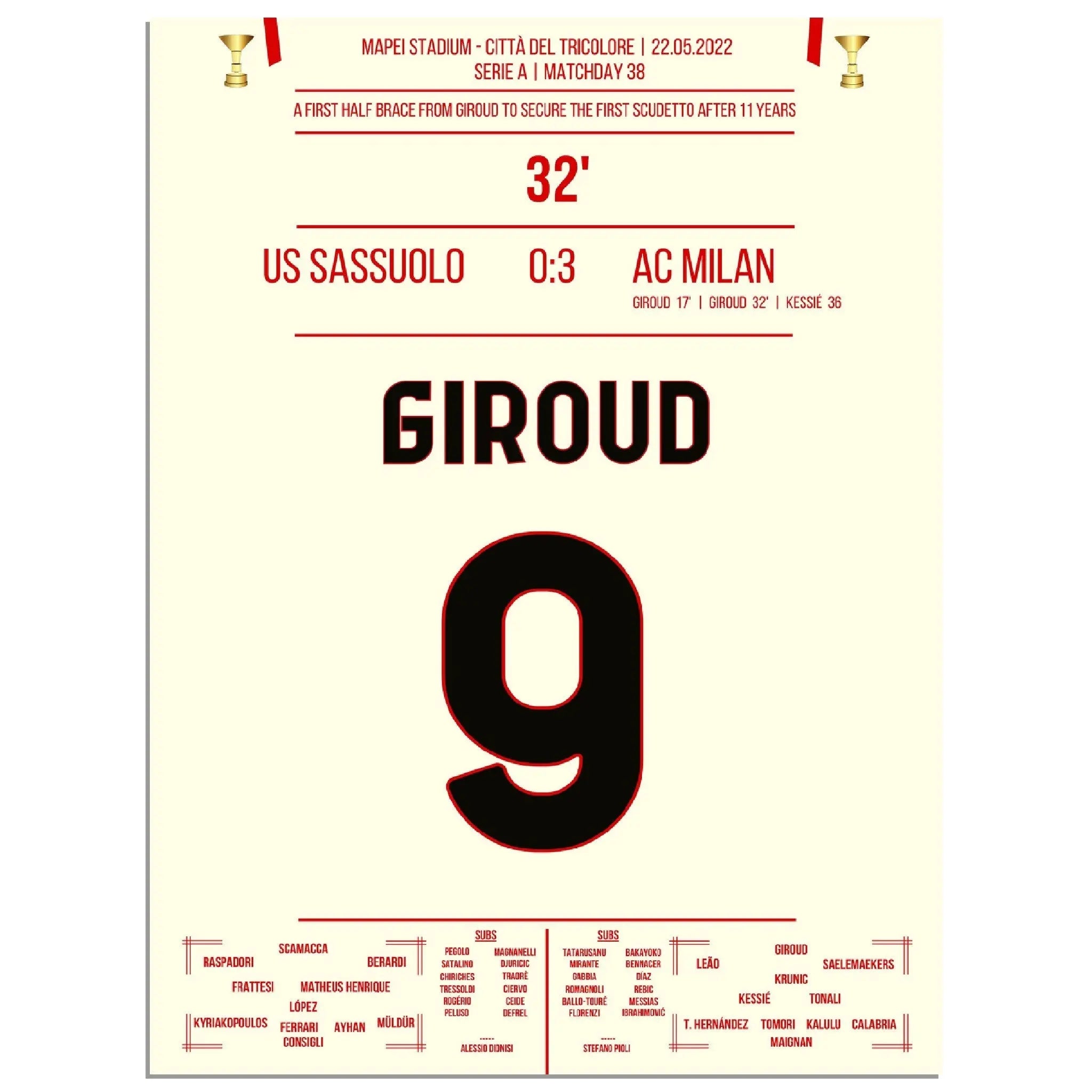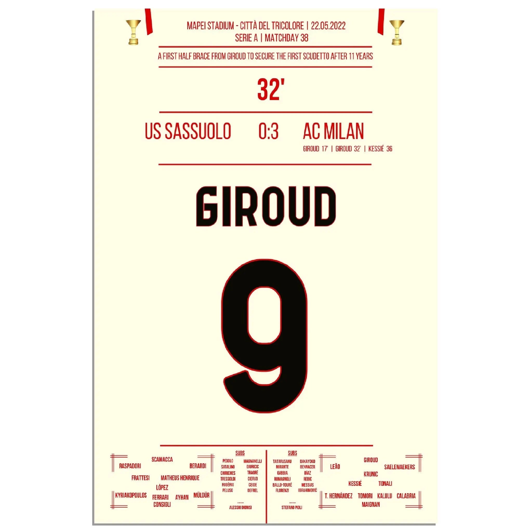 Giroud Doppelpack gegen Sassuolo - Milan gewinnt den ersten Scudetto nach 11 Jahren