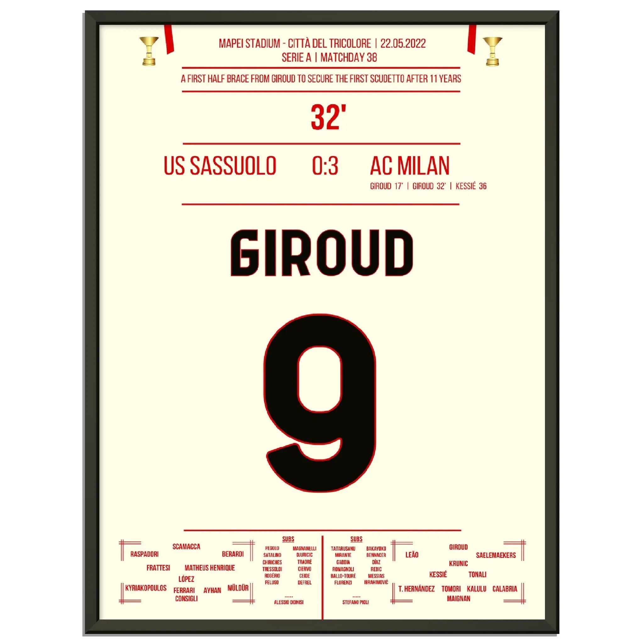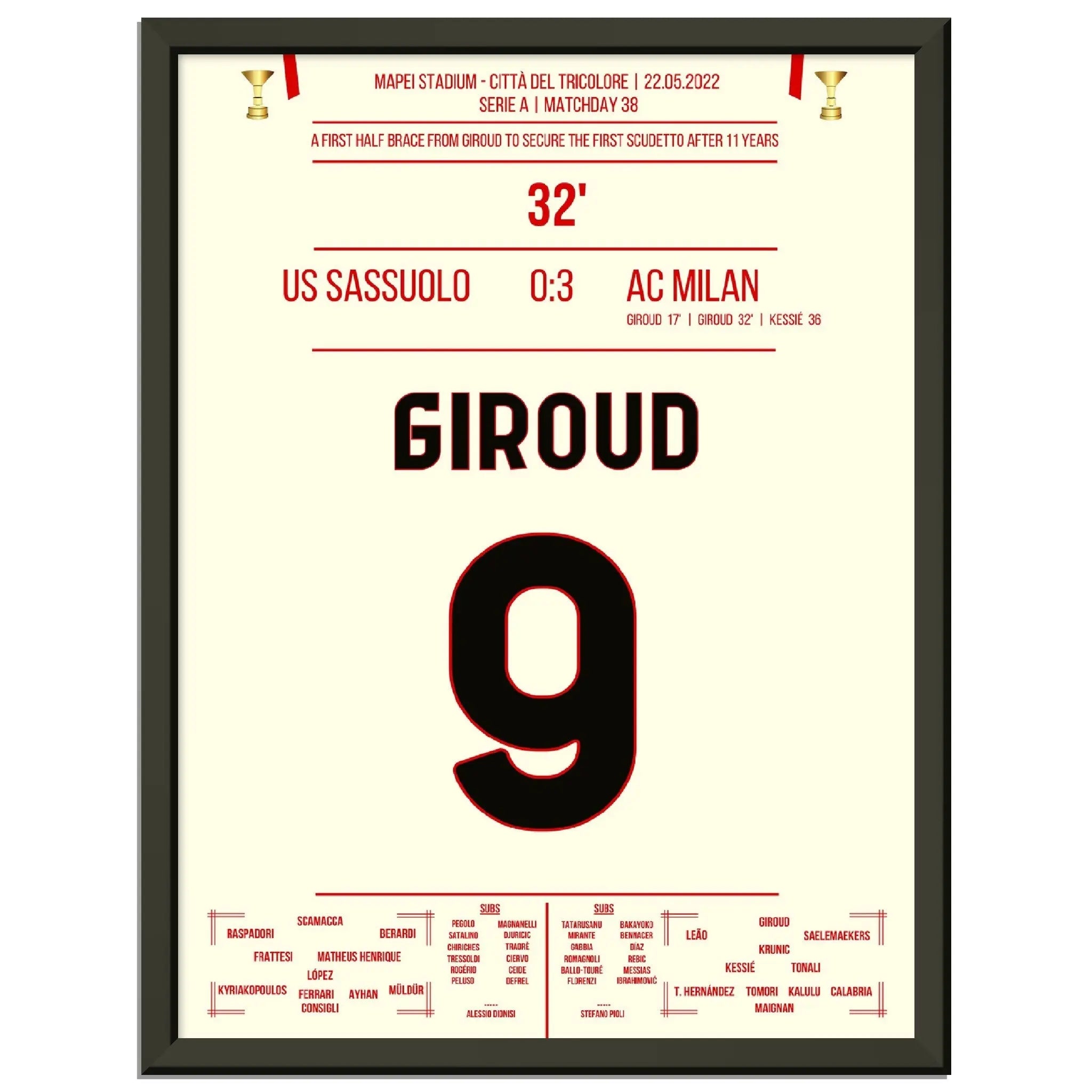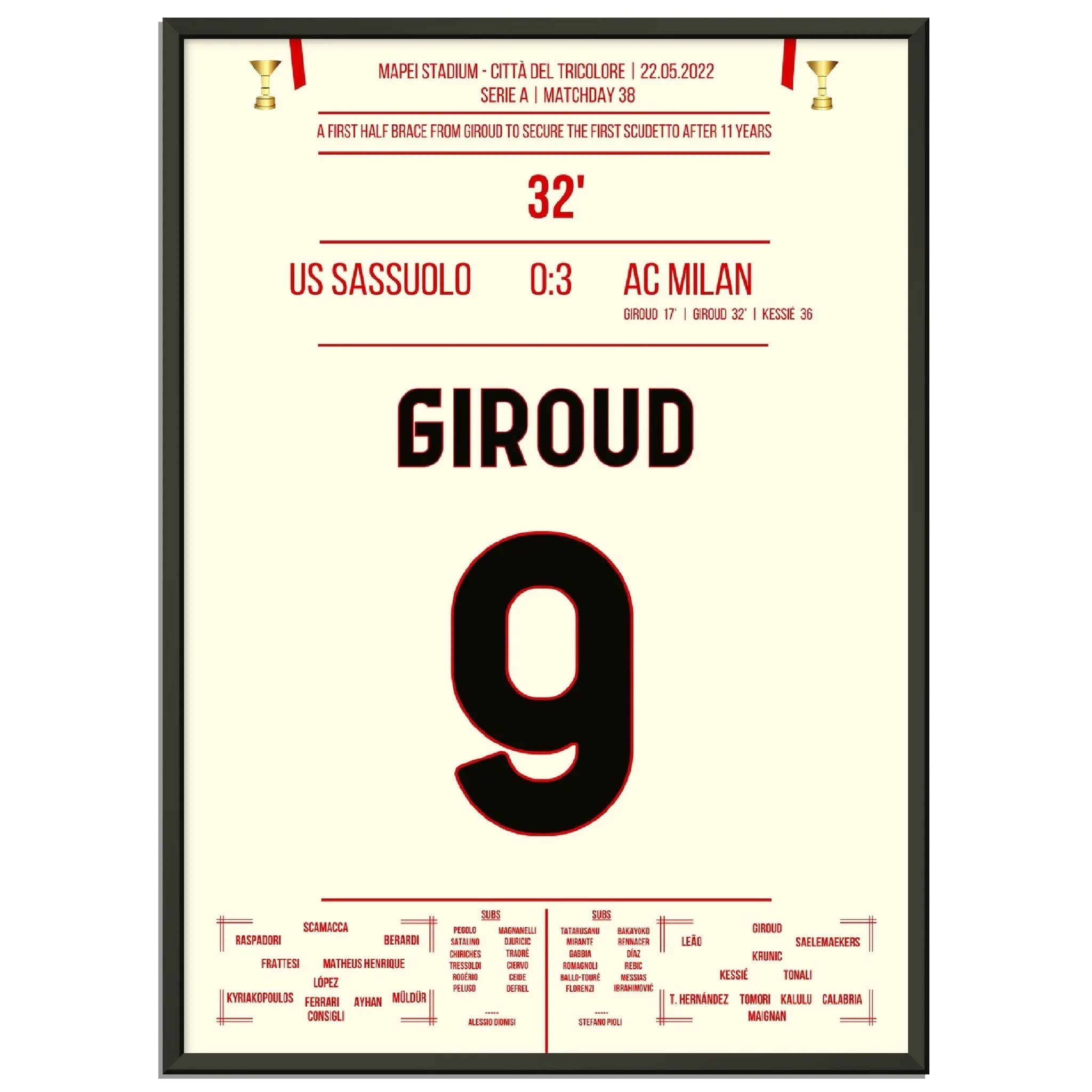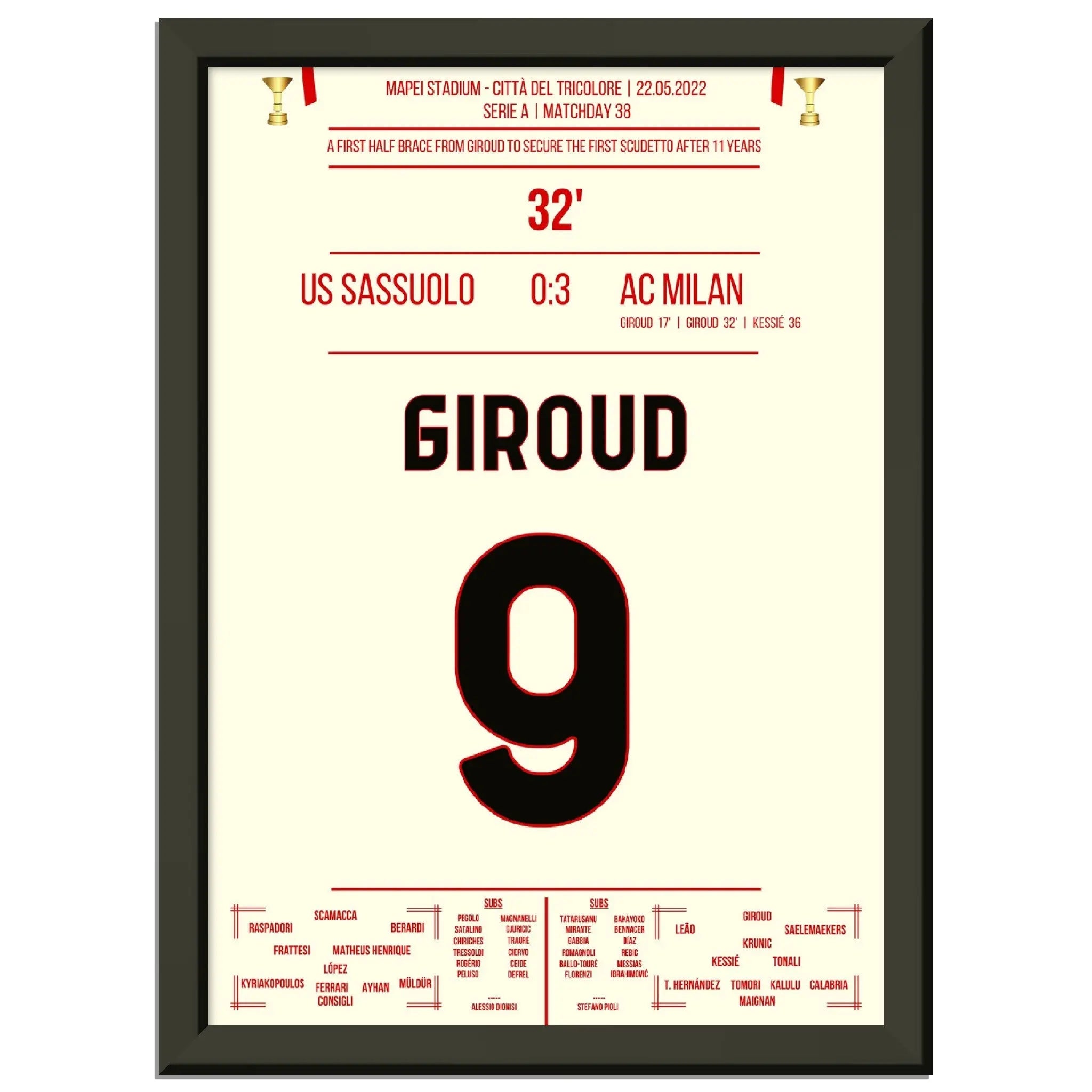Giroud Doppelpack gegen Sassuolo - Milan gewinnt den ersten Scudetto nach 11 Jahren