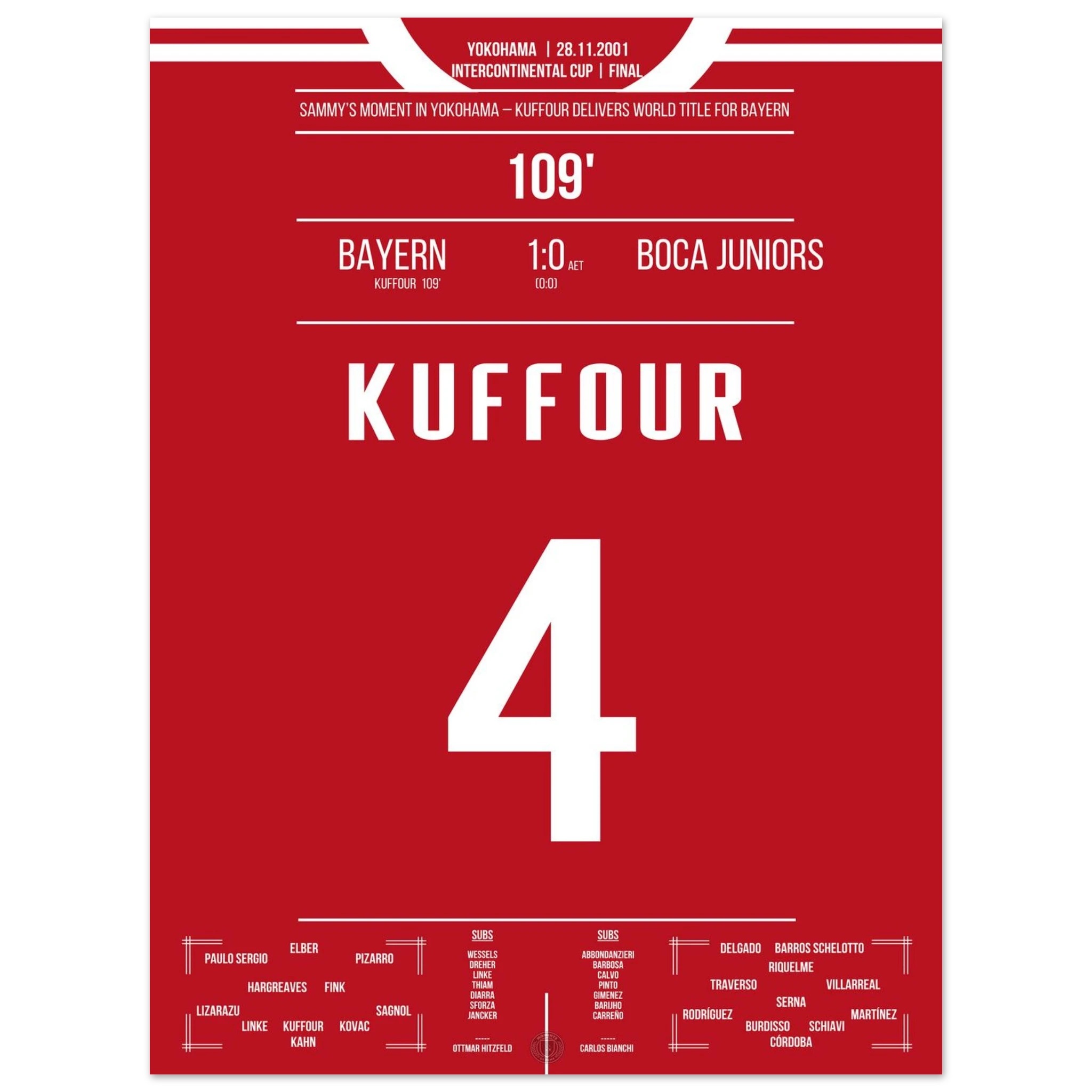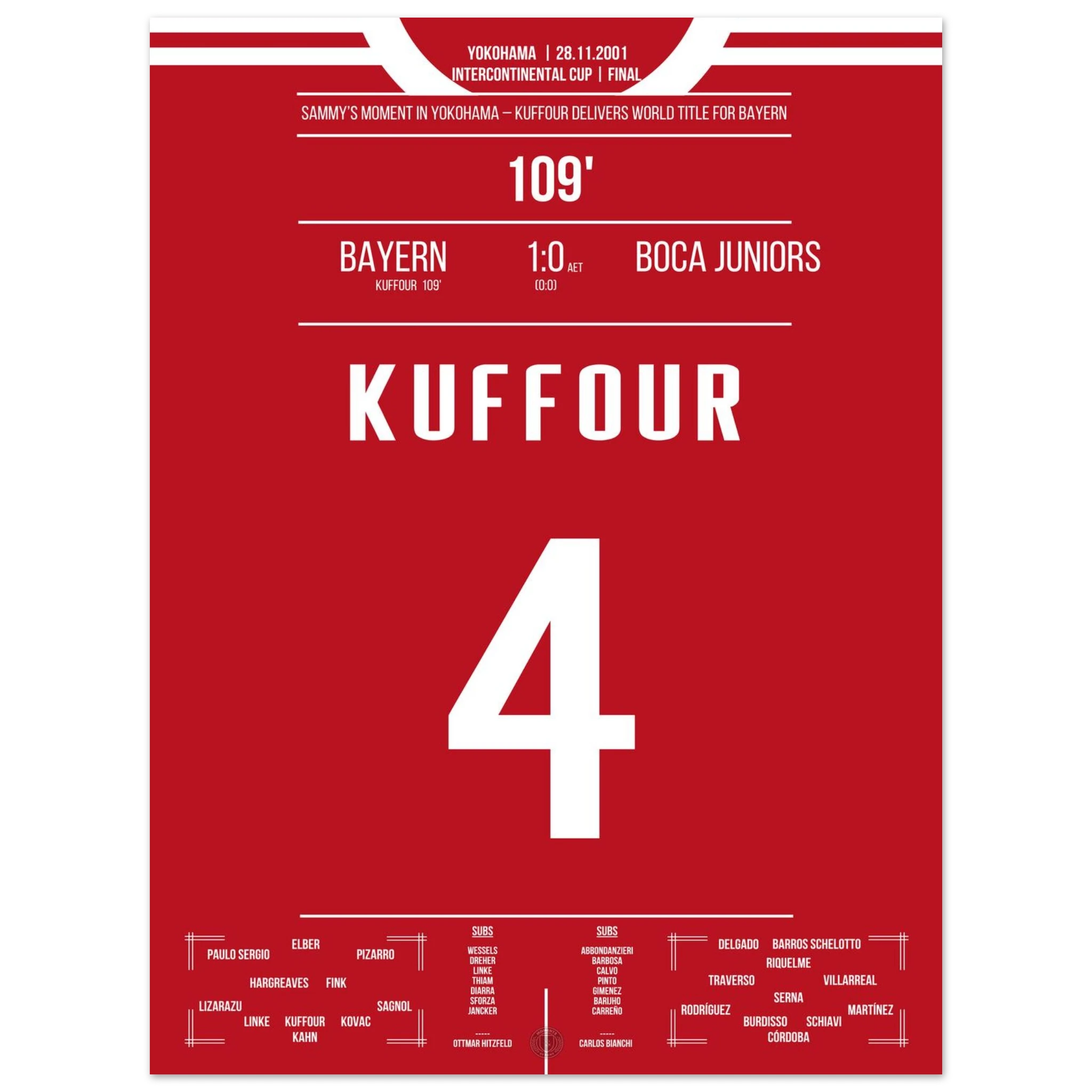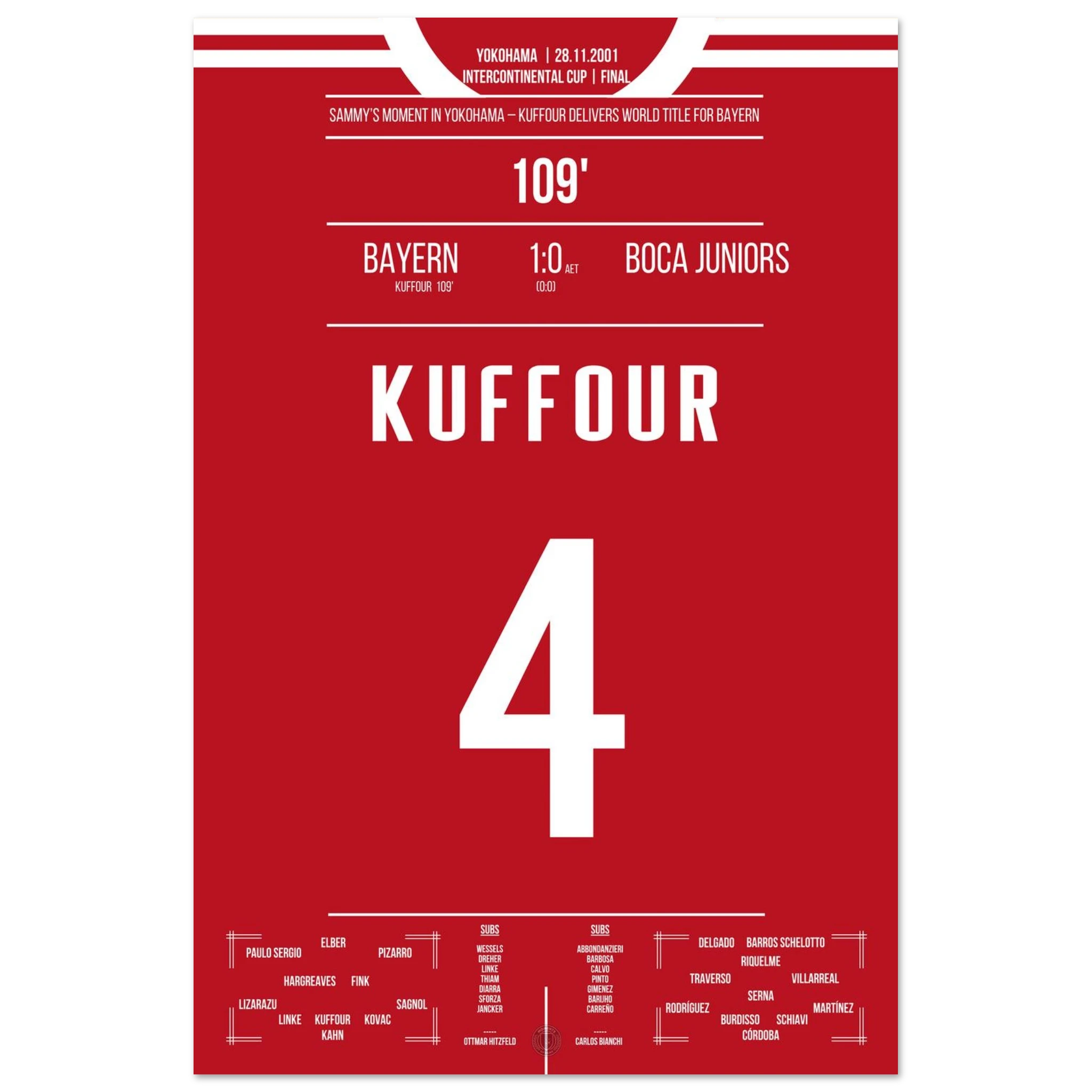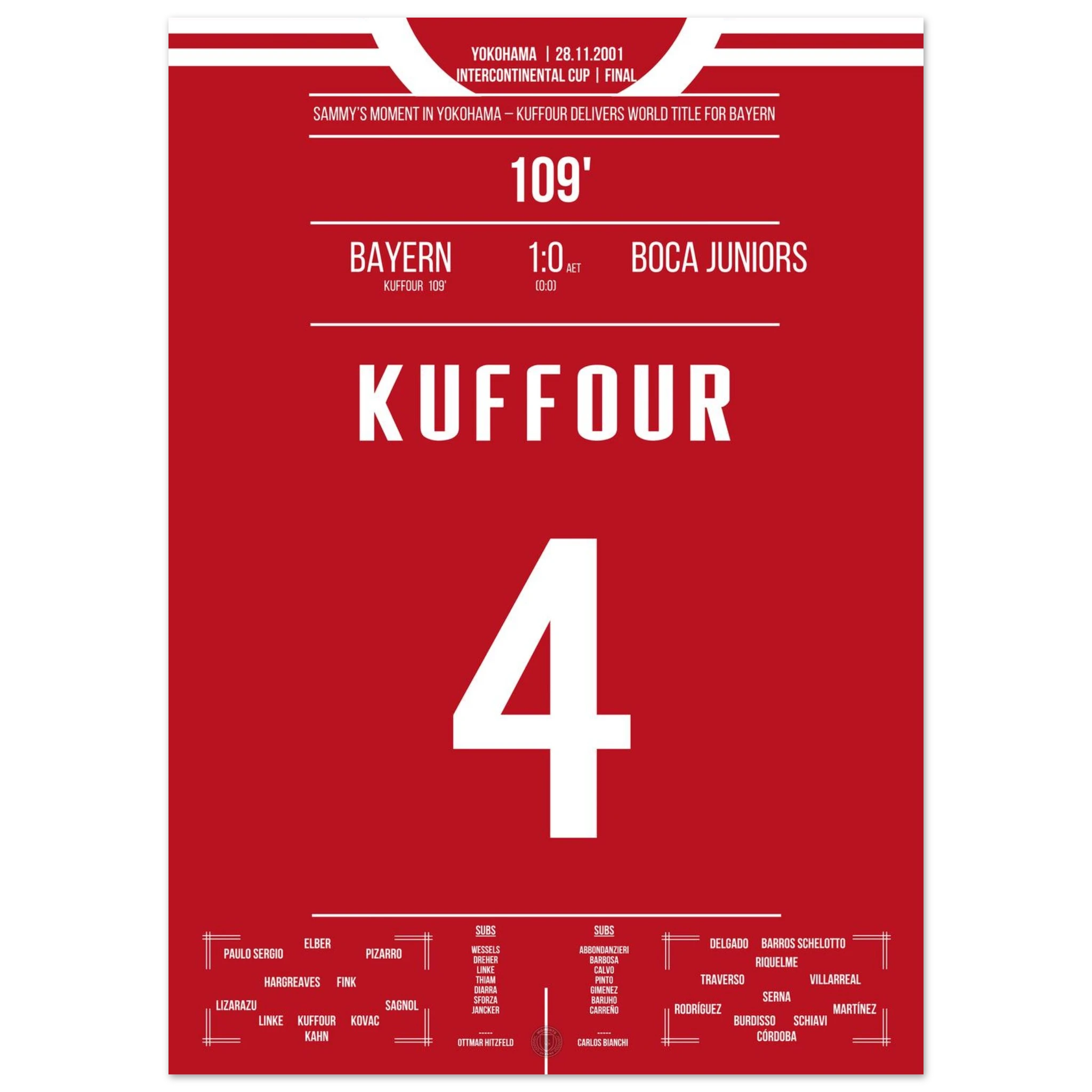 In einem intensiven Duell in Yokohama entscheidet Sammy Kuffour die Partie in der 109. Minute und Bayern sichert sich den Weltpokal. Tränen, Jubel und Erlösung nach einem Jahr voller Höhen. 🏆🔴⚪