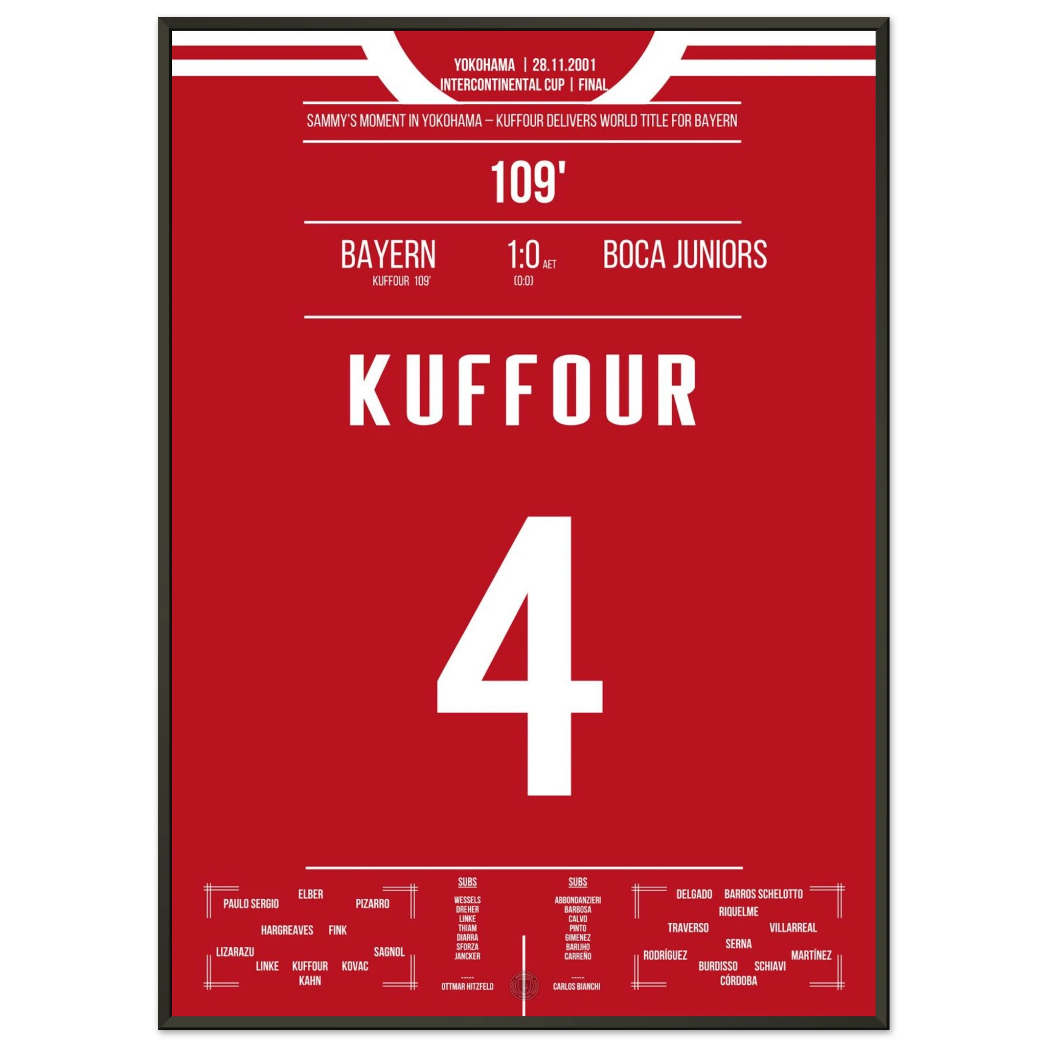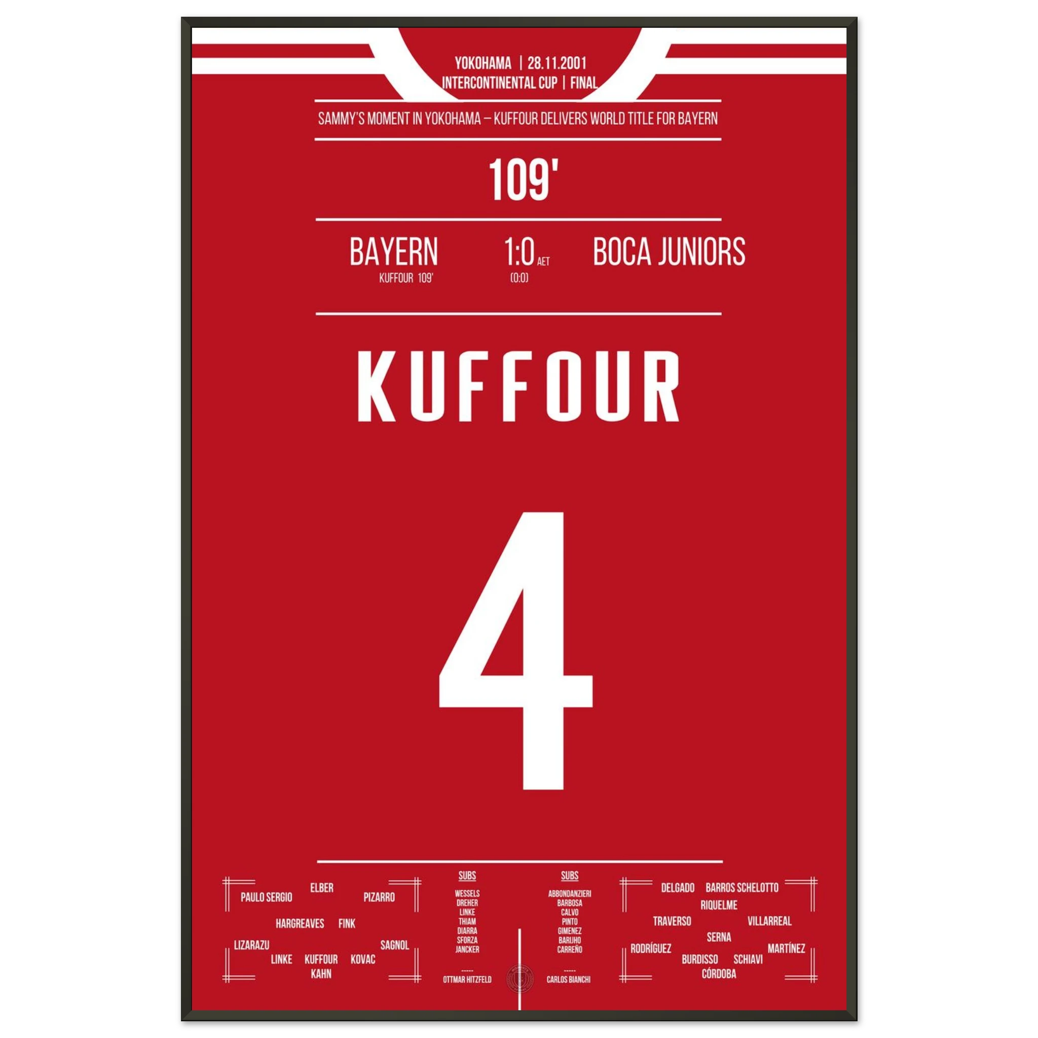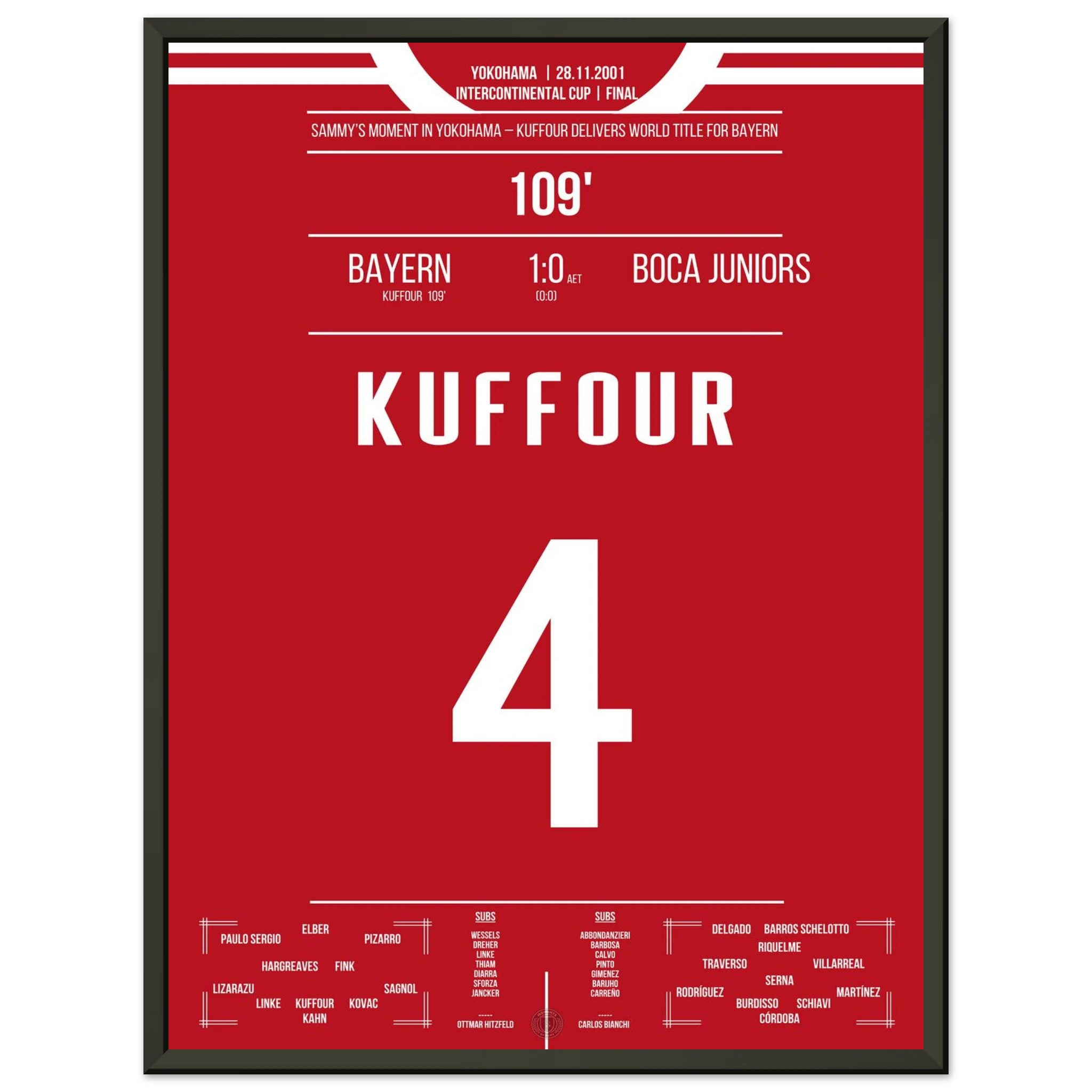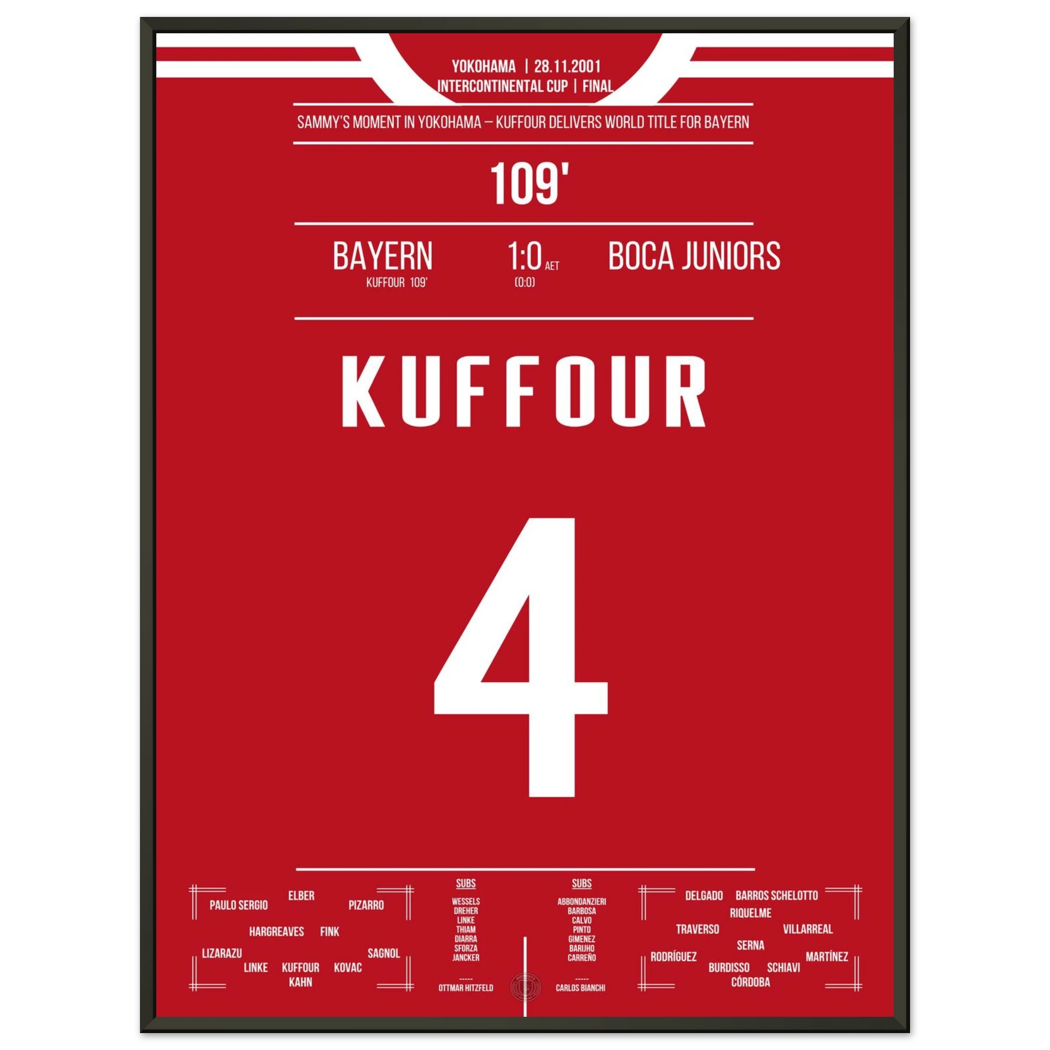 In einem intensiven Duell in Yokohama entscheidet Sammy Kuffour die Partie in der 109. Minute und Bayern sichert sich den Weltpokal. Tränen, Jubel und Erlösung nach einem Jahr voller Höhen. 🏆🔴⚪