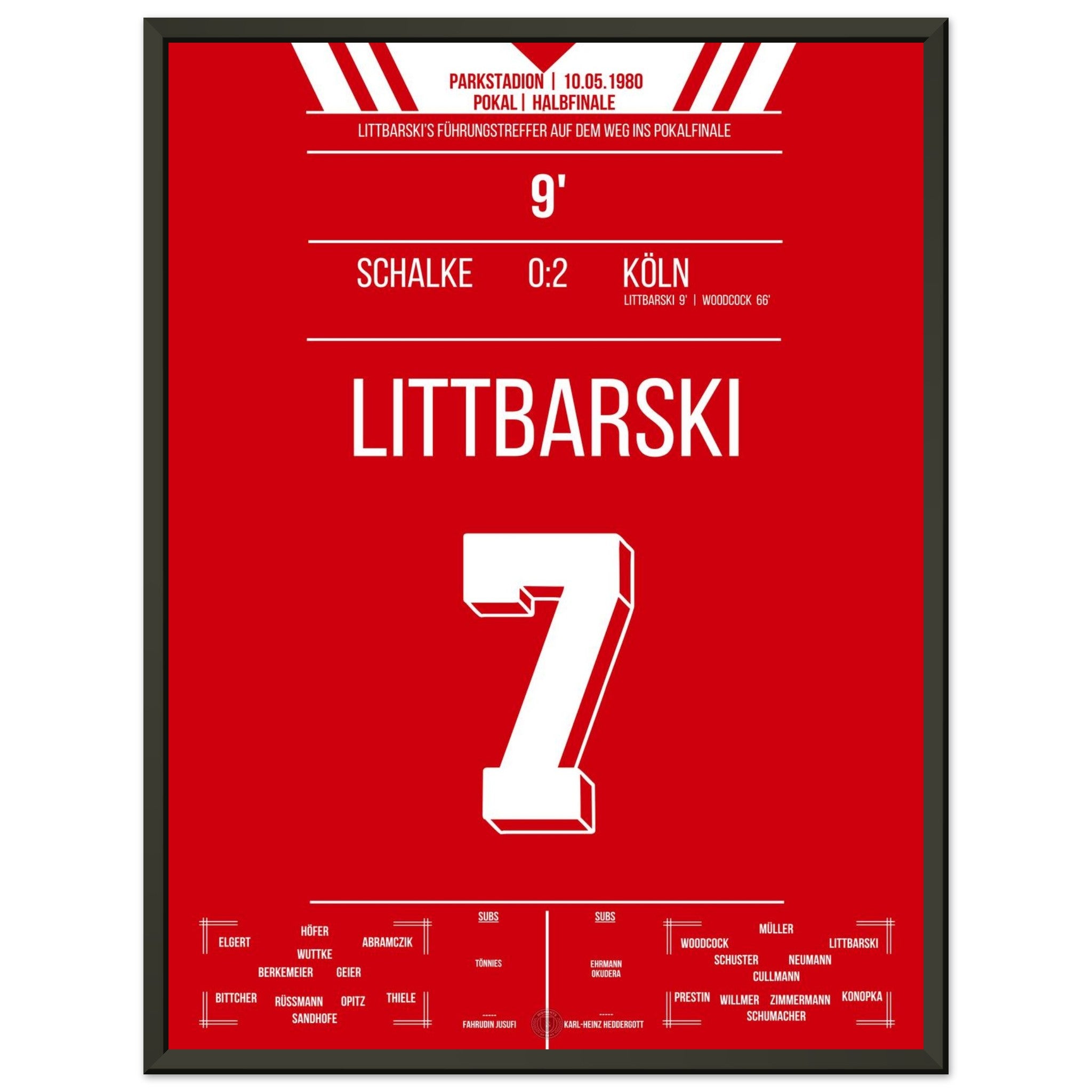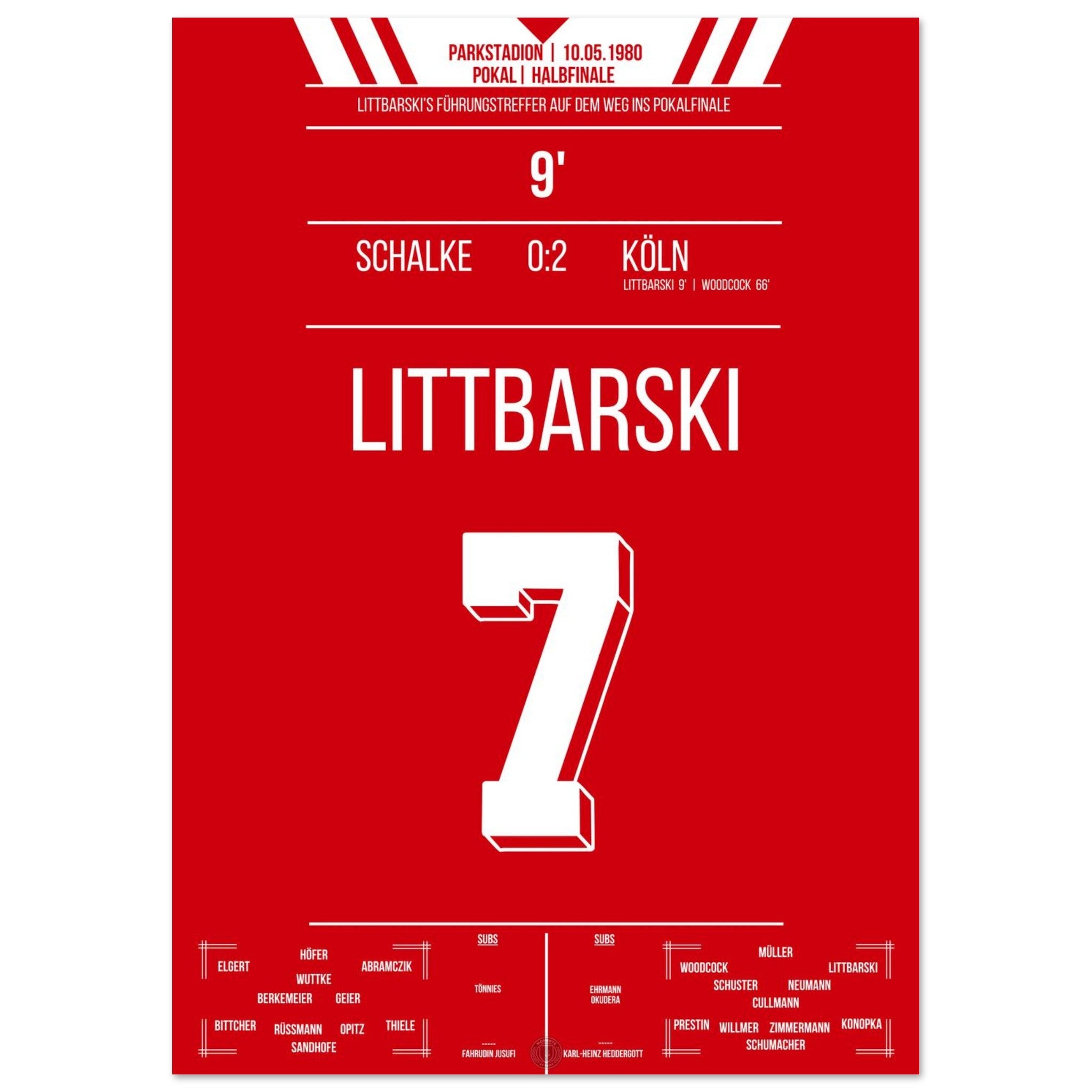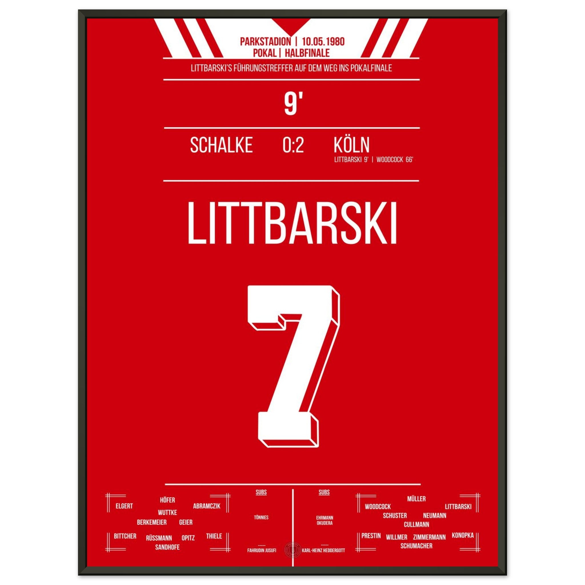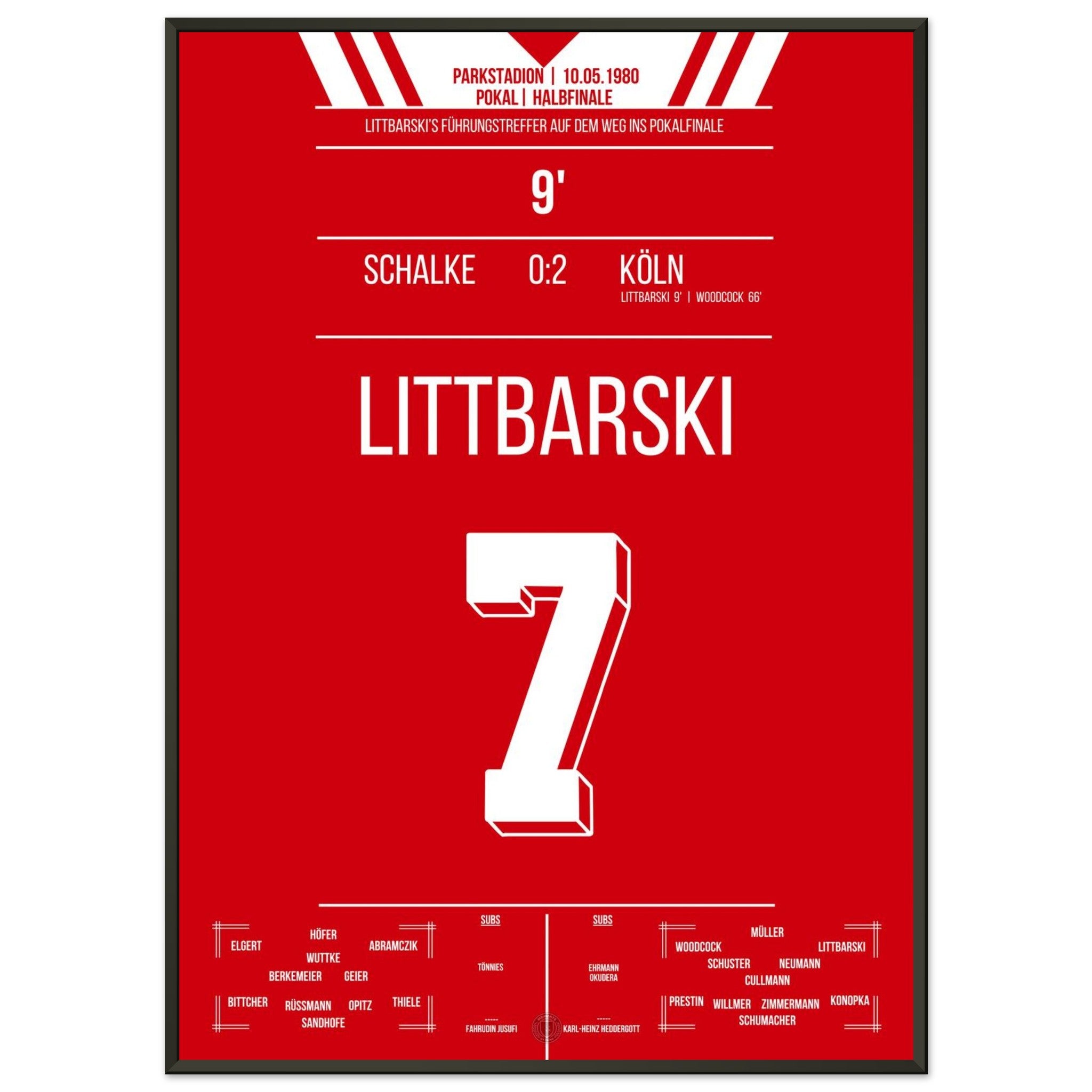 10. Mai 1980 – Schalke vs. Köln 0:2: Im Pokal-Halbfinale sorgt ein starker Pierre Littbarski für den Auswärtssieg auf Schalke und führt Köln ins Finale. Ein Auftritt voller Spielfreude und Entschlossenheit – der Beginn einer großen Pokalnacht. Unser Poster hält diesen historischen Moment in Rot-Weiß fest.