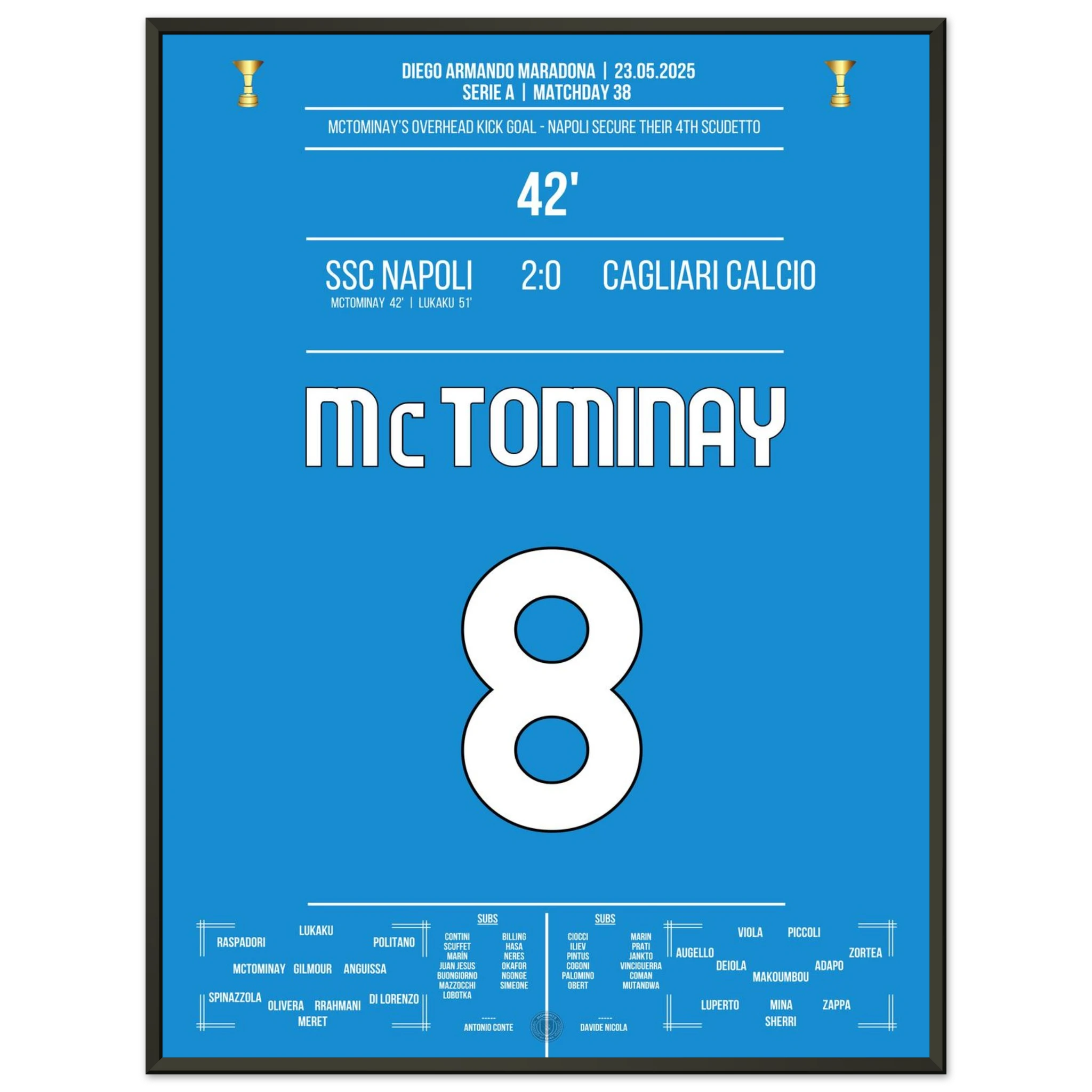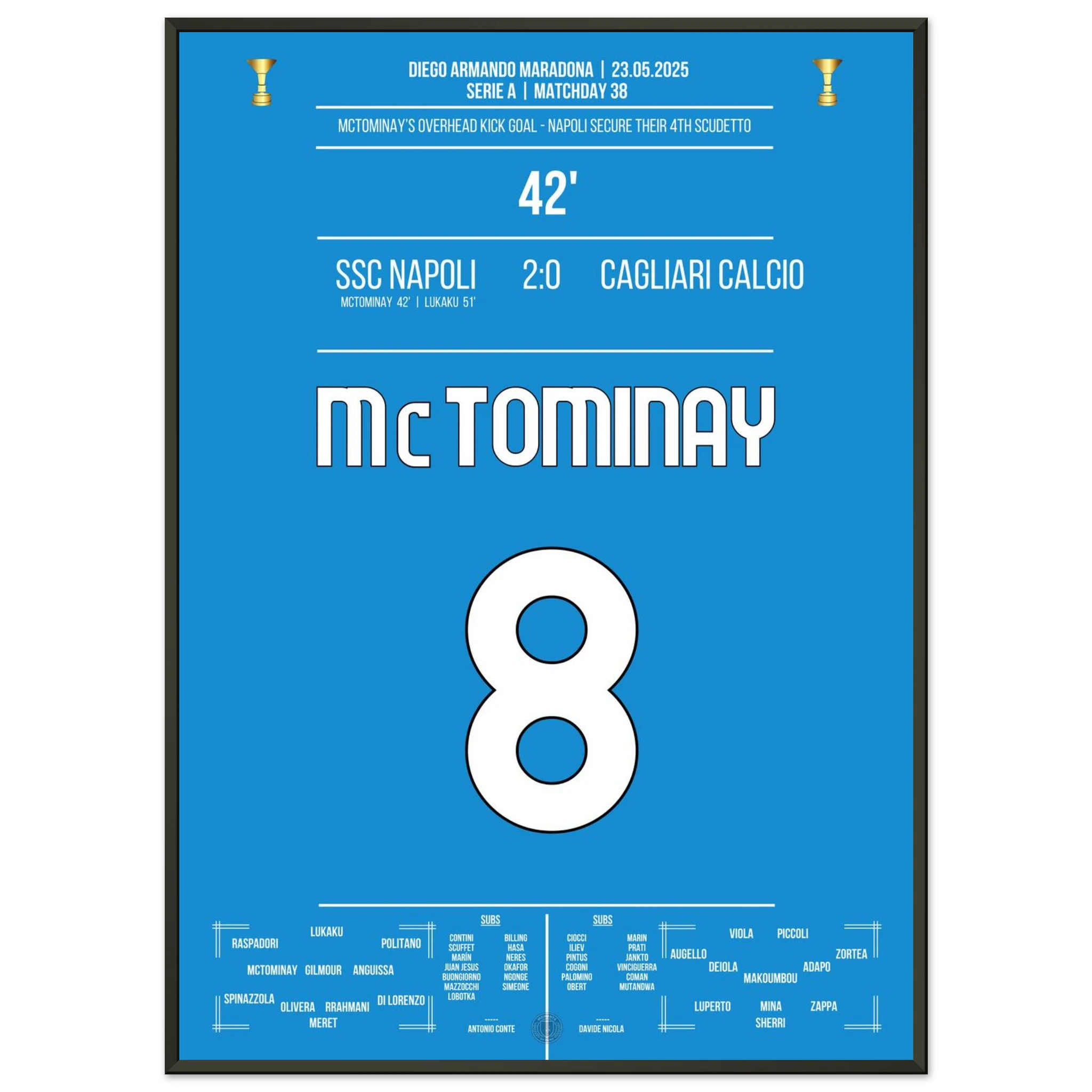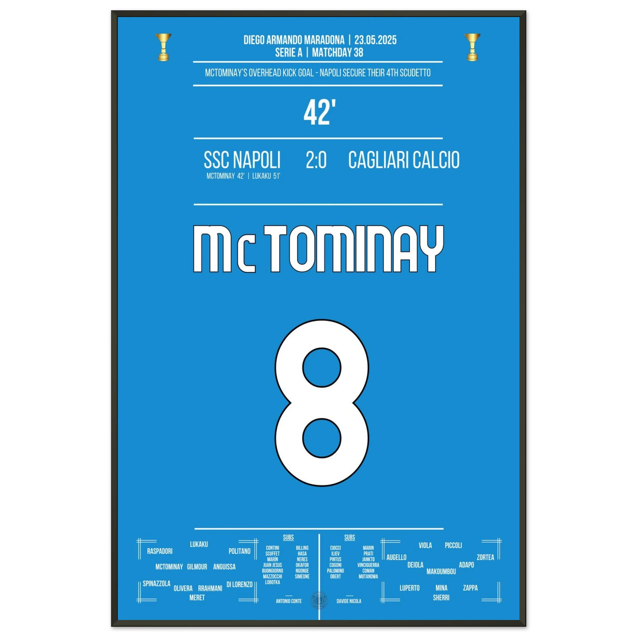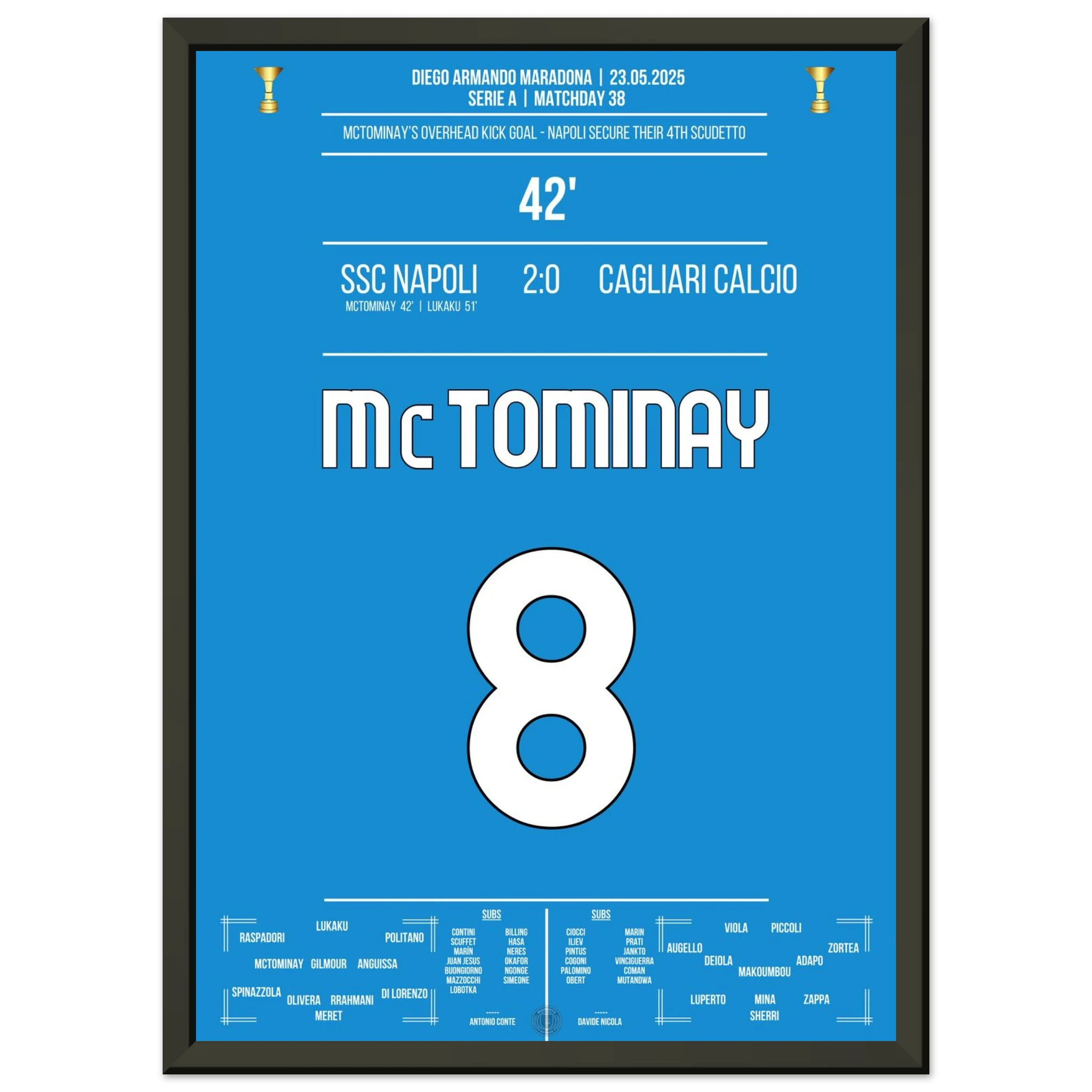 Jedes Poster und jeder Rahmen wird sicher verpackt versandt, sodass sie in einwandfreiem Zustand ankommen. Perfekt für die Sammlung jedes Fußballfans oder als ideales Geschenk!