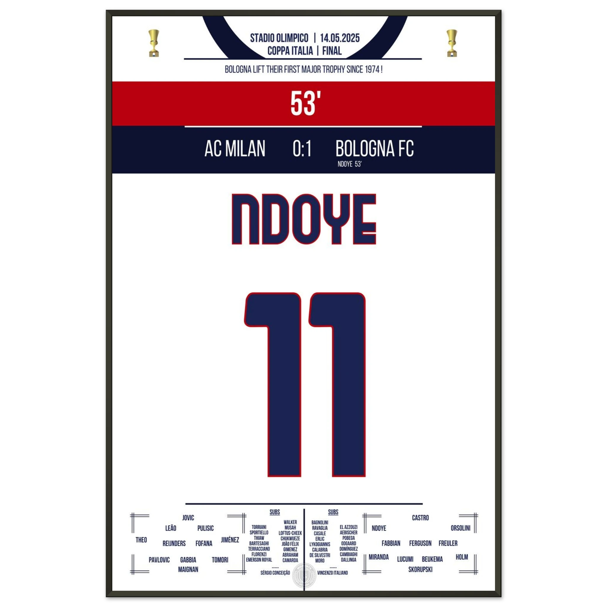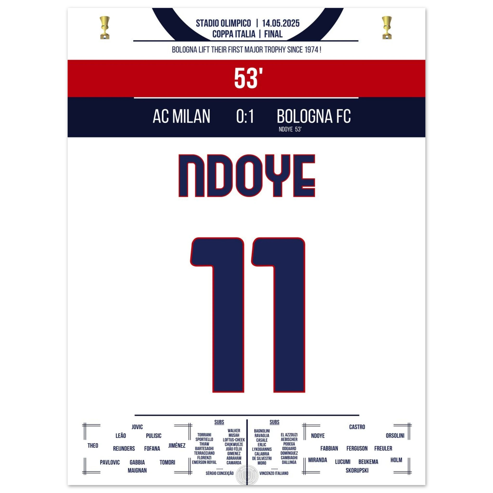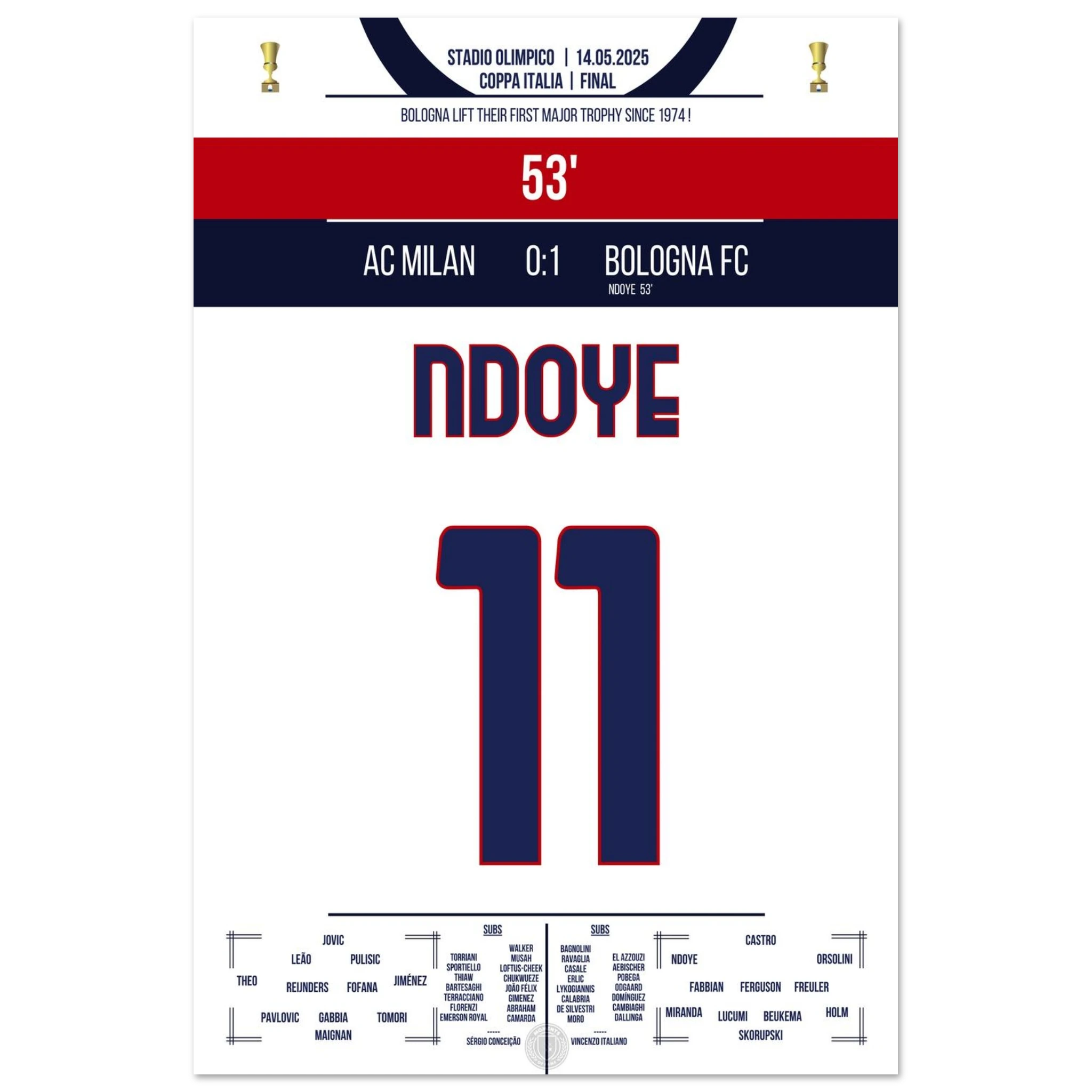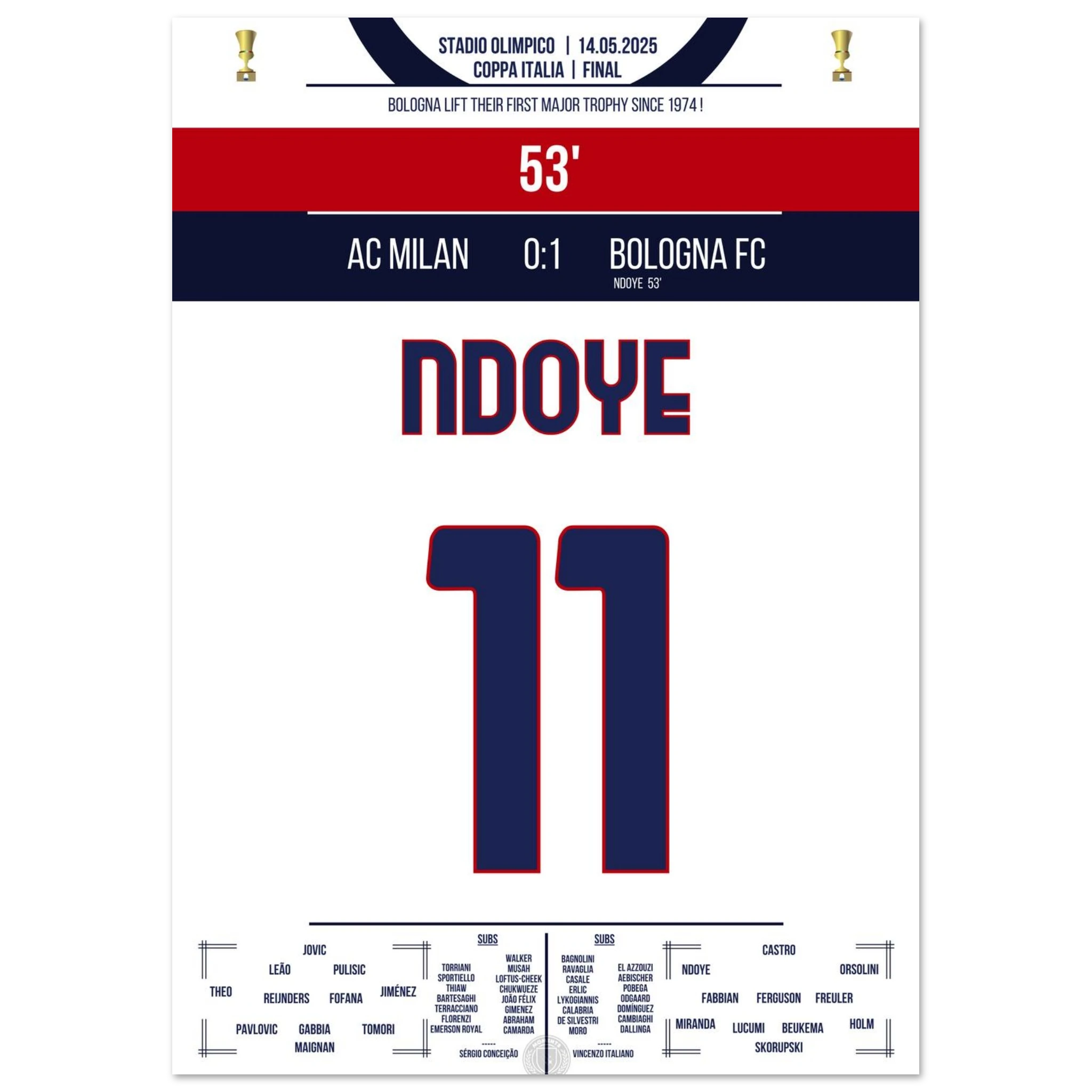 Ndoye führt Bologna zum ersten Pokalgewinn seit 1974