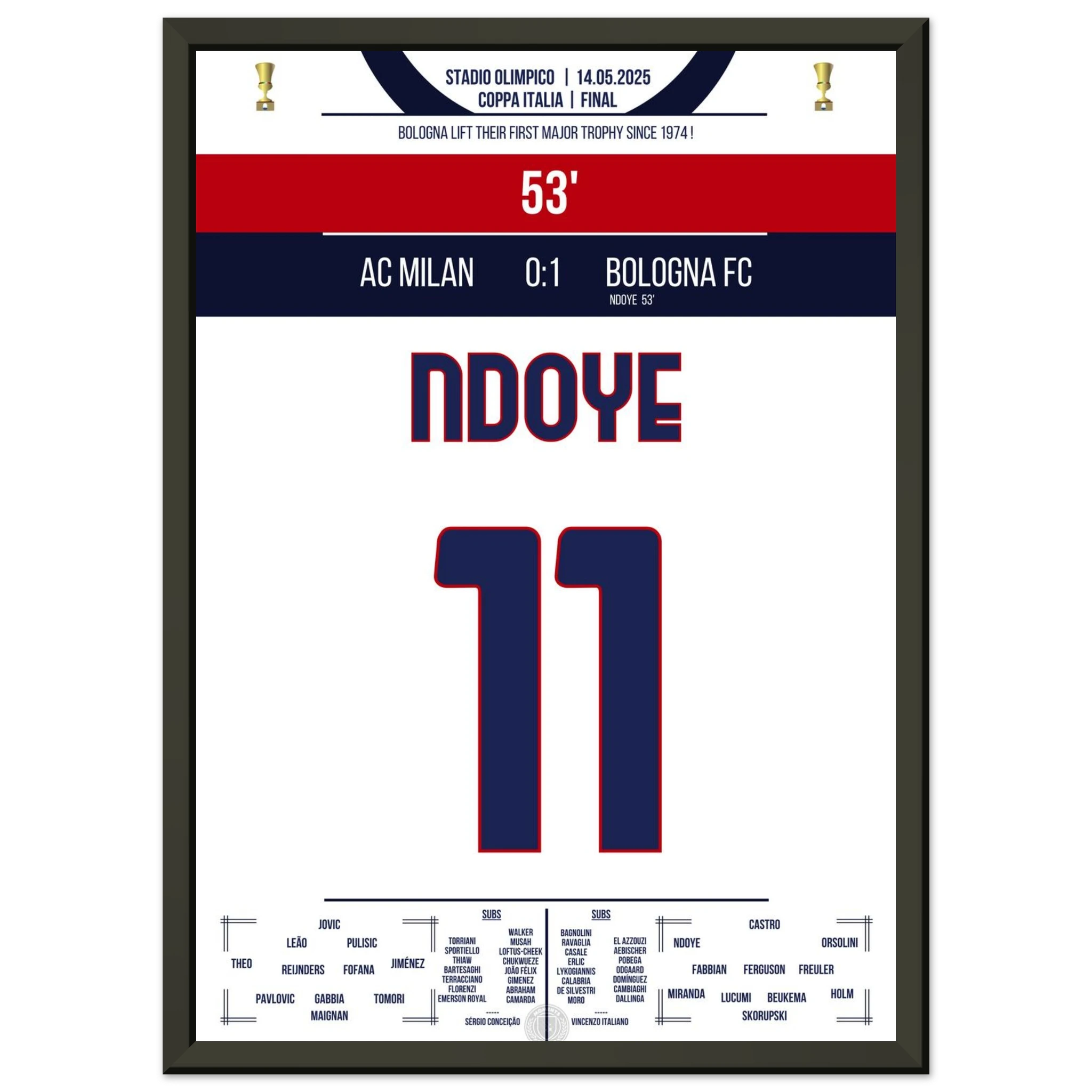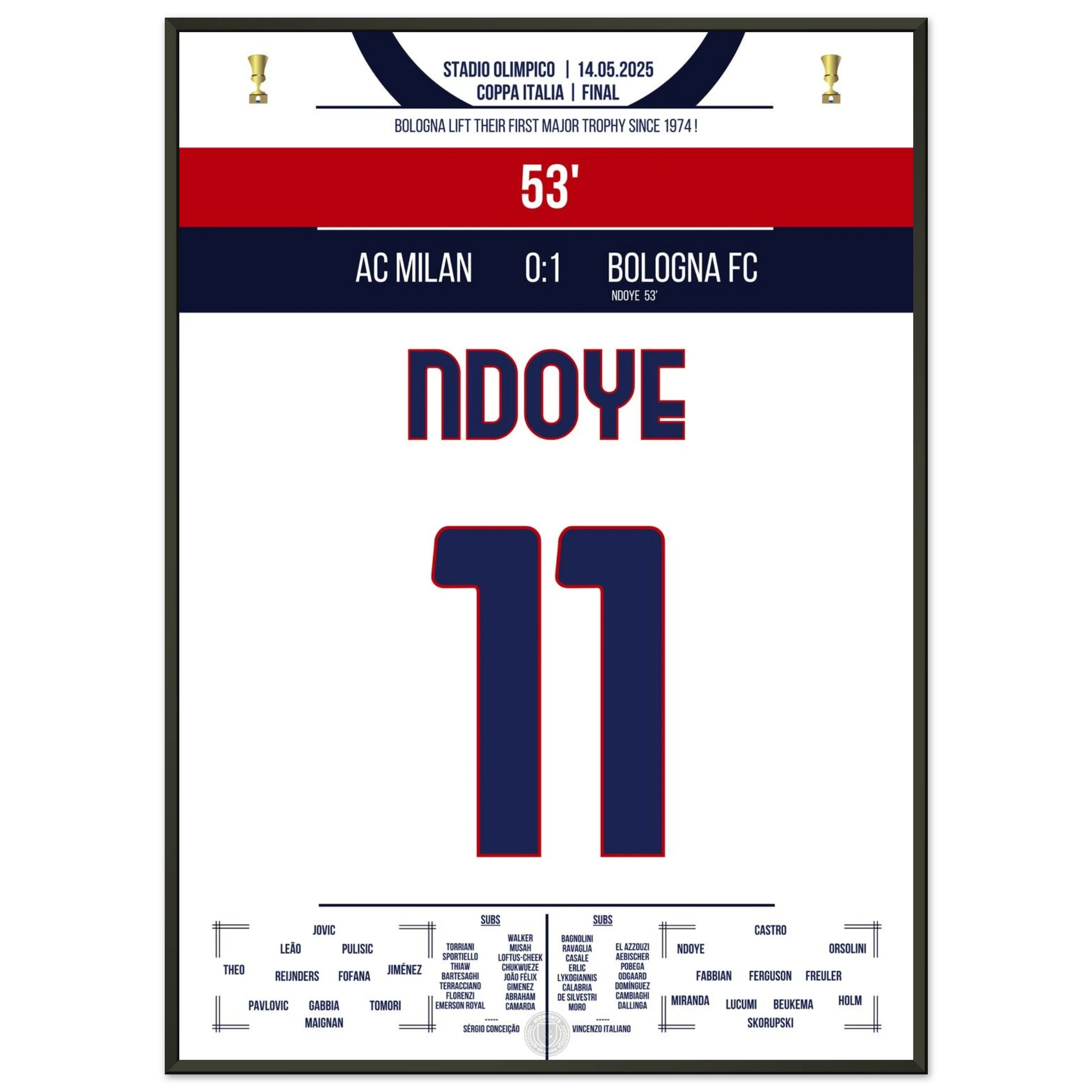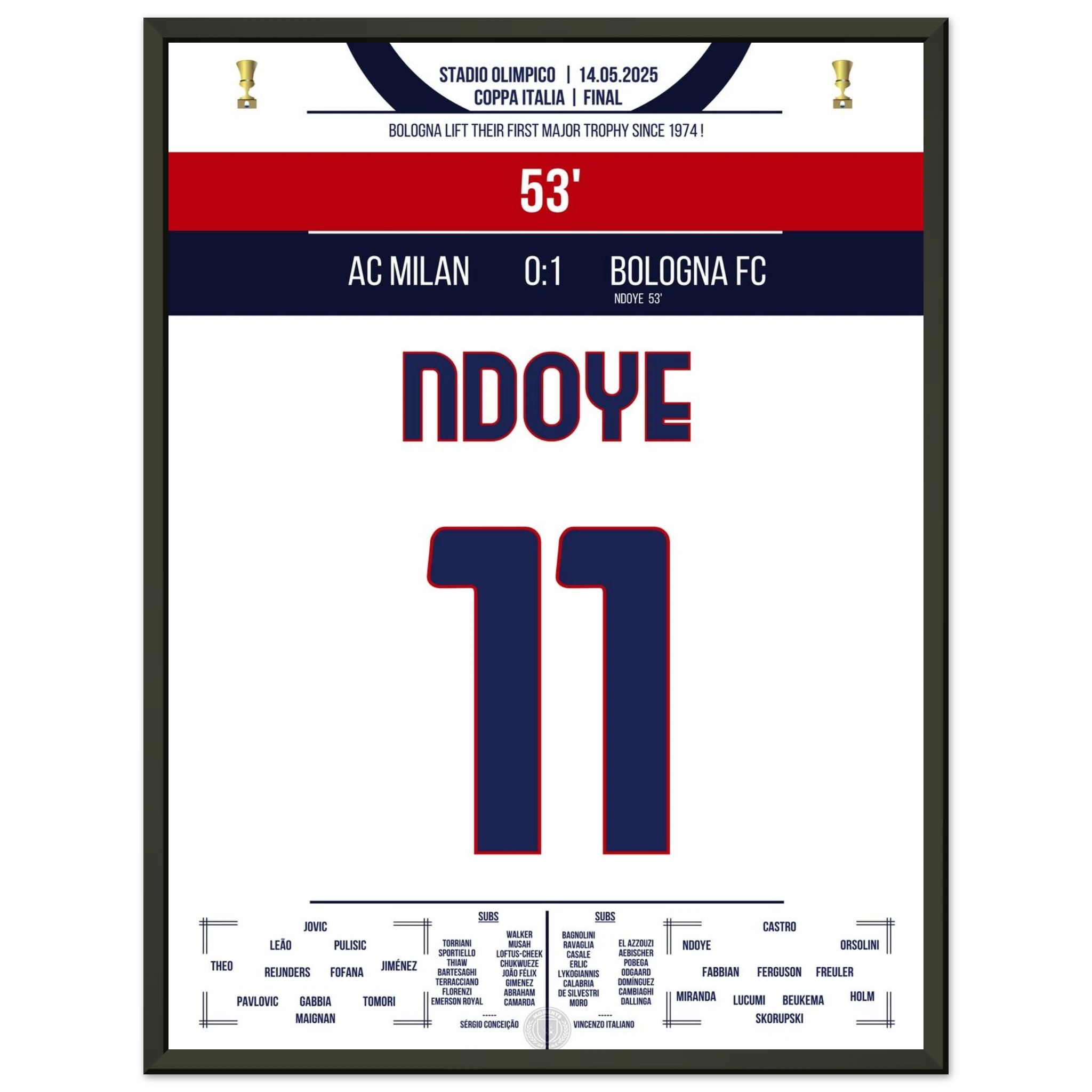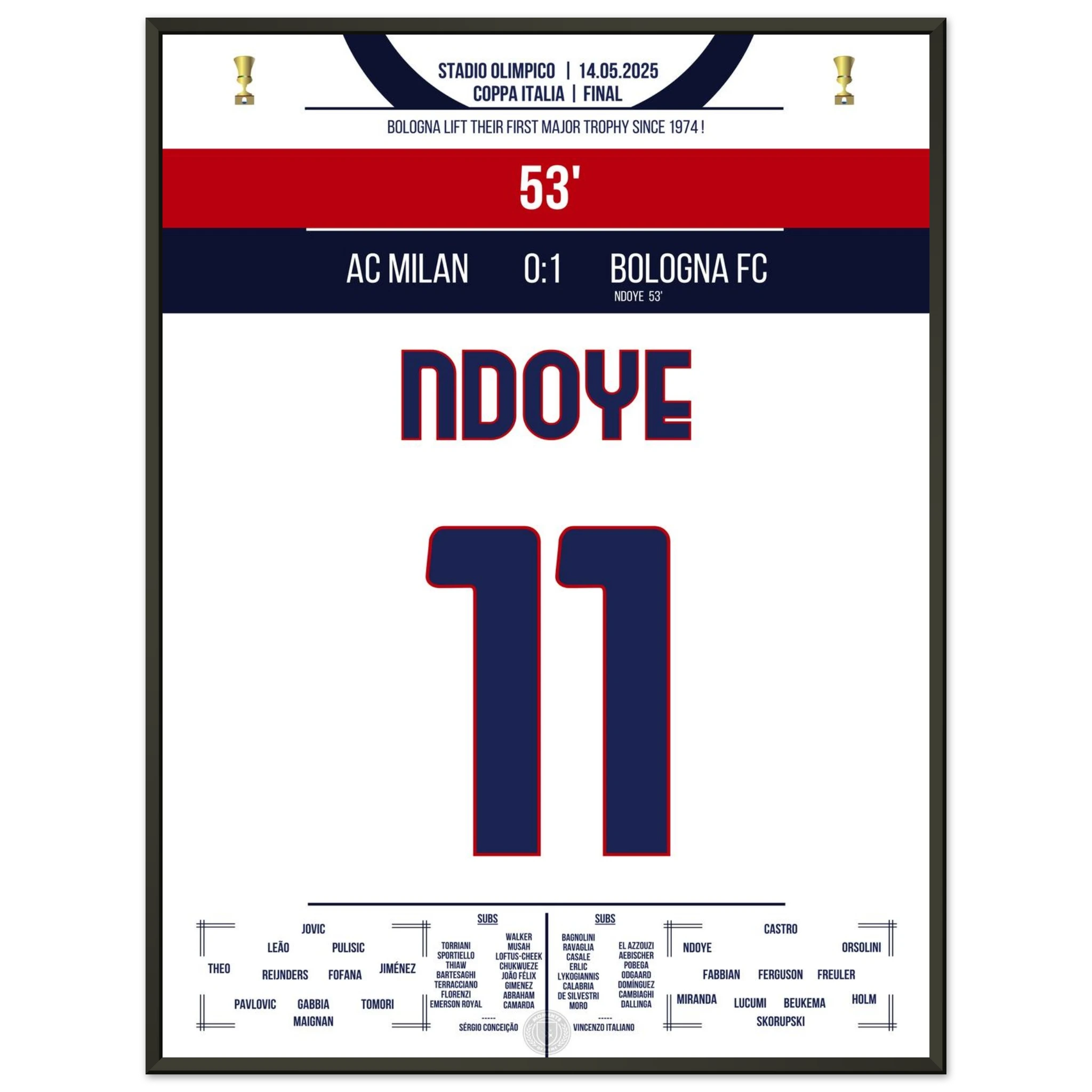 Ndoye führt Bologna zum ersten Pokalgewinn seit 1974