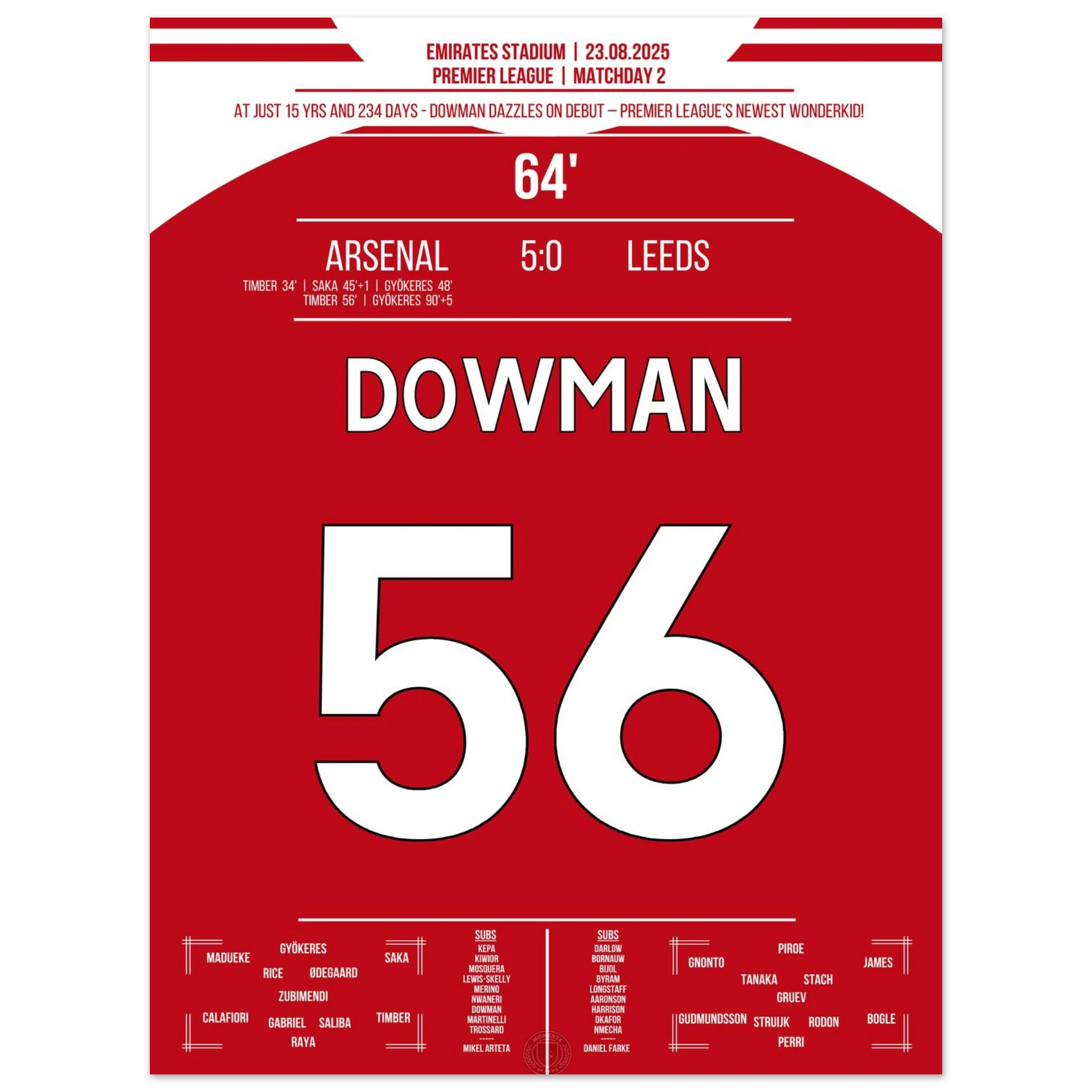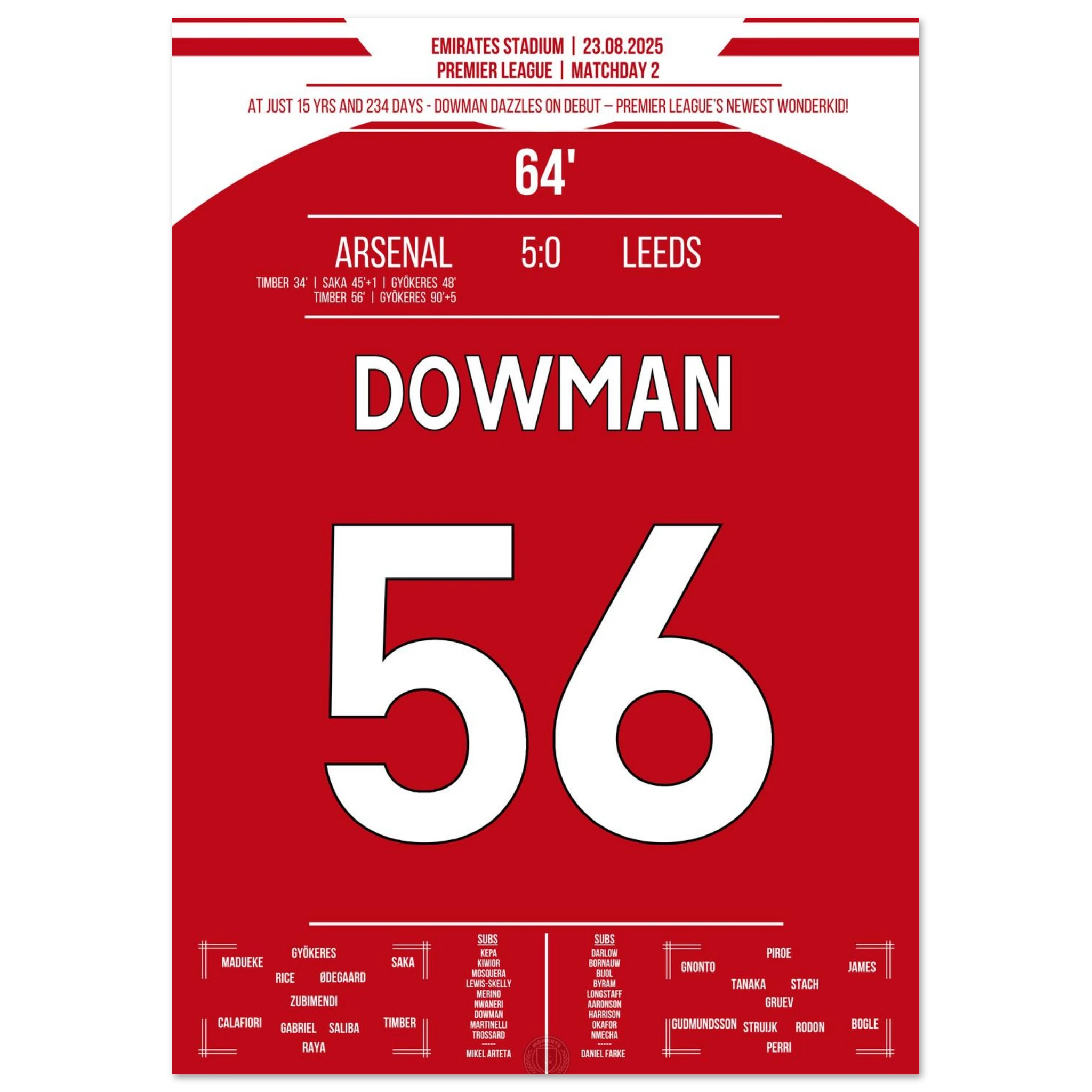 Dieses Poster fängt den Moment ein, an dem ein Talent die große Bühne betritt. Pflicht für jeden Gooner!