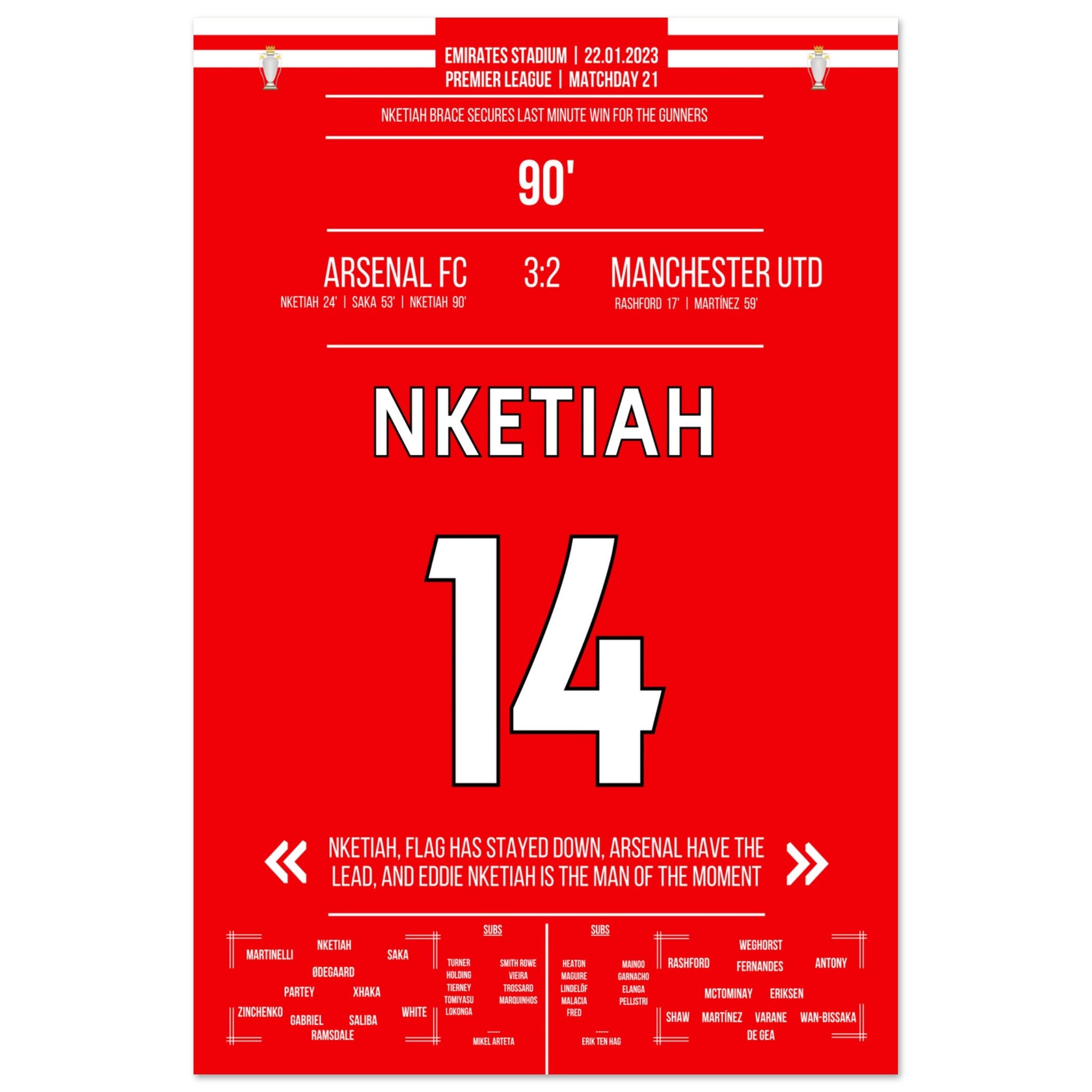 Nketiah trifft zum Last Minute Sieg gegen Man Utd