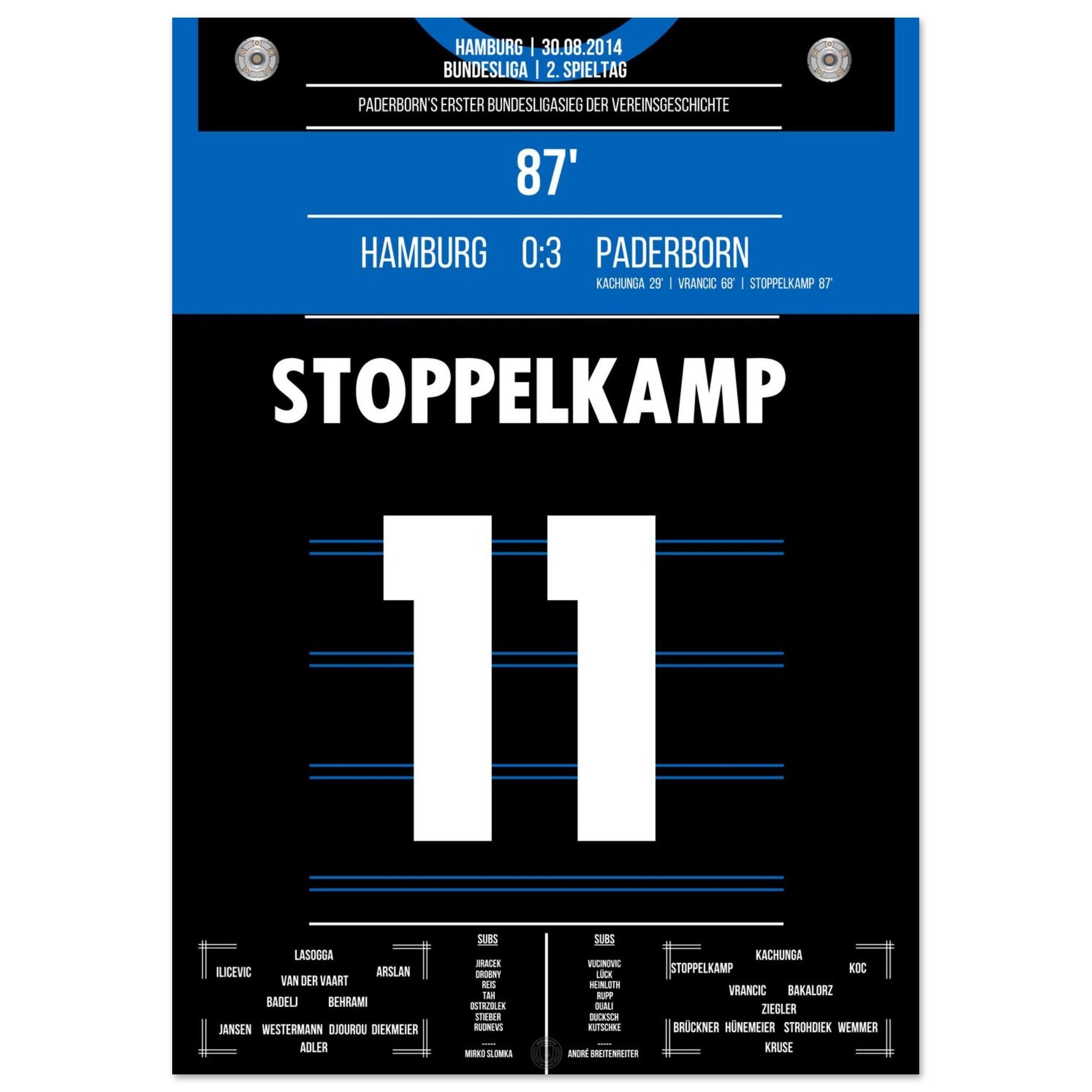 Stoppelkamp trifft in der 87. Minute und setzt den Schlusspunkt beim historischen Auswärtssieg. Mit diesem Erfolg feiert Paderborn den ersten Bundesliga-Sieg der Vereinsgeschichte – ein Meilenstein!