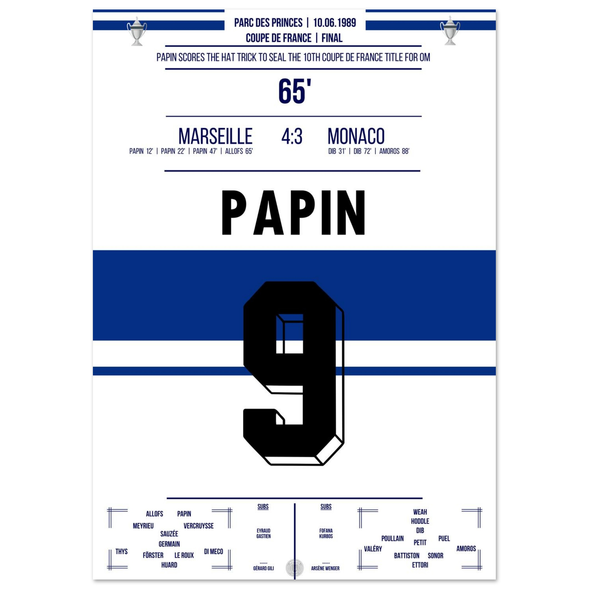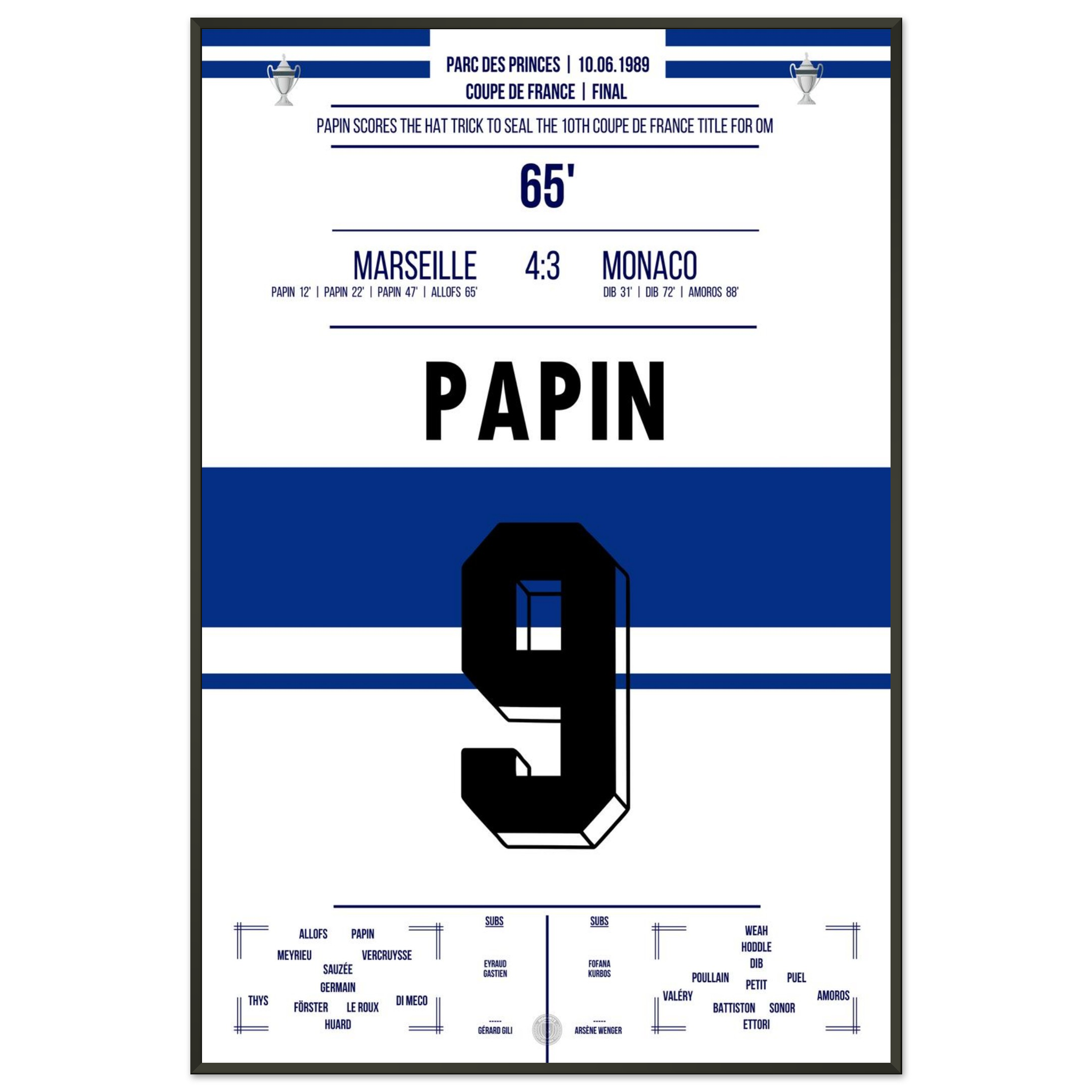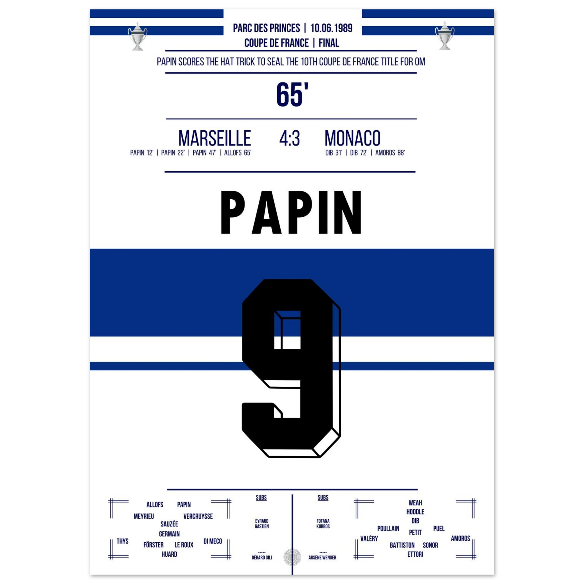 Dieses Poster fängt den Moment ein, in dem ein Stürmer zur Legende und Marseille zur Pokalmacht wurde.