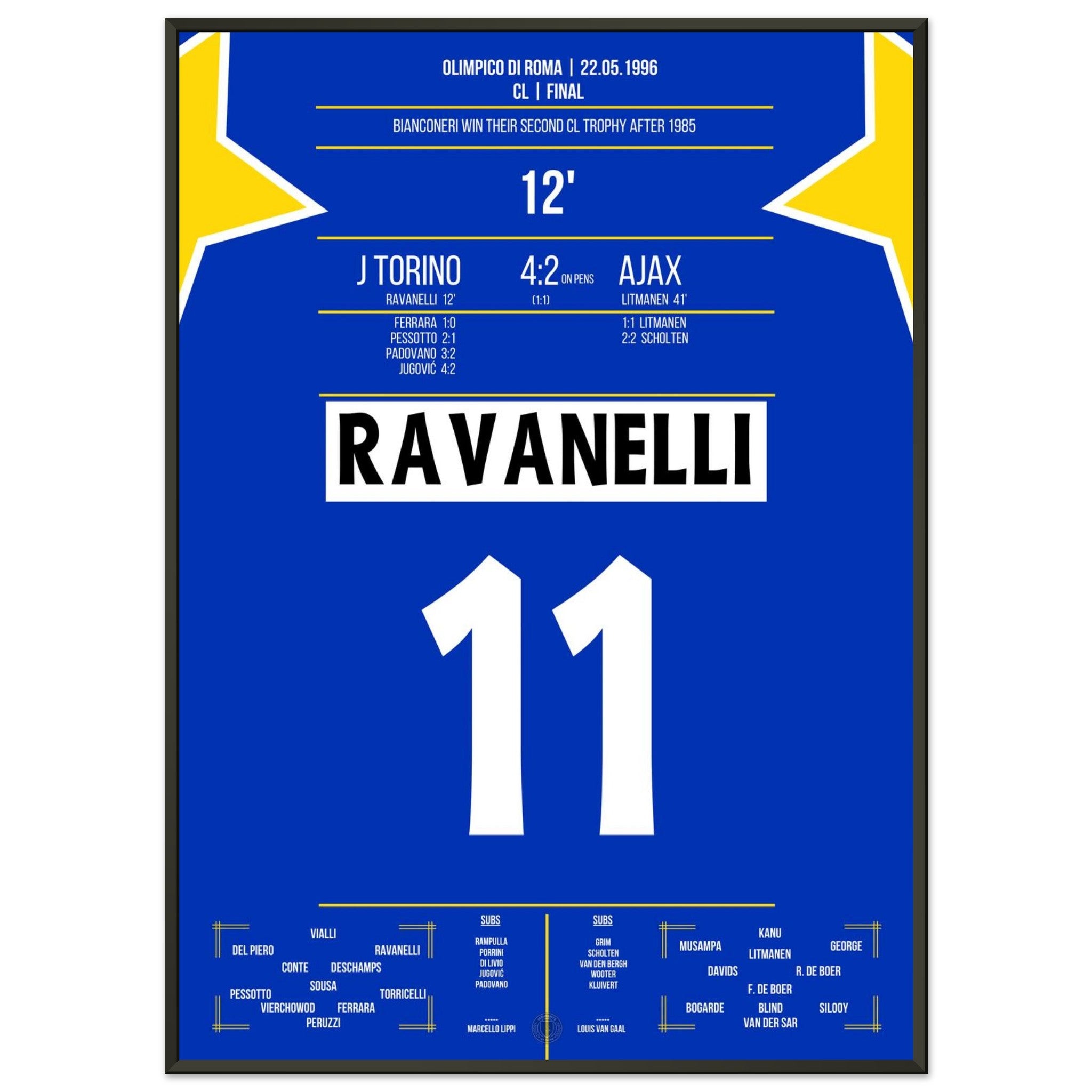 Hier kommt unser Premium-Druck dieses unvergesslichen Fußballmoments für das ultimative Fan-Erlebnis. Gedruckt auf schwerem, seidenmattem Premium-Papier, glänzt dieses Kunstwerk mit verstärkten Farben und einem subtilen Glanz, der jedes Detail zum Vorschein bringt.