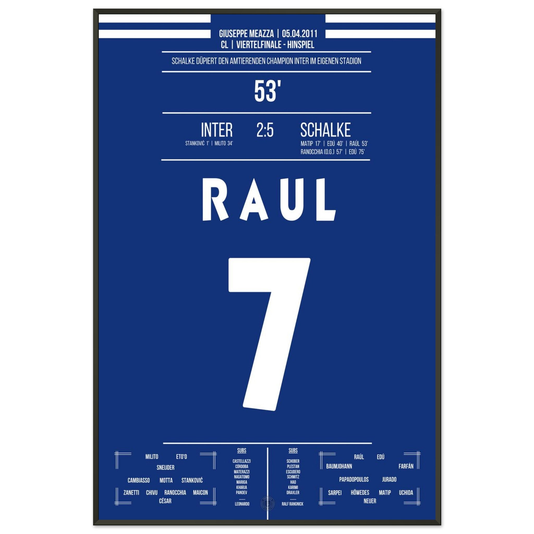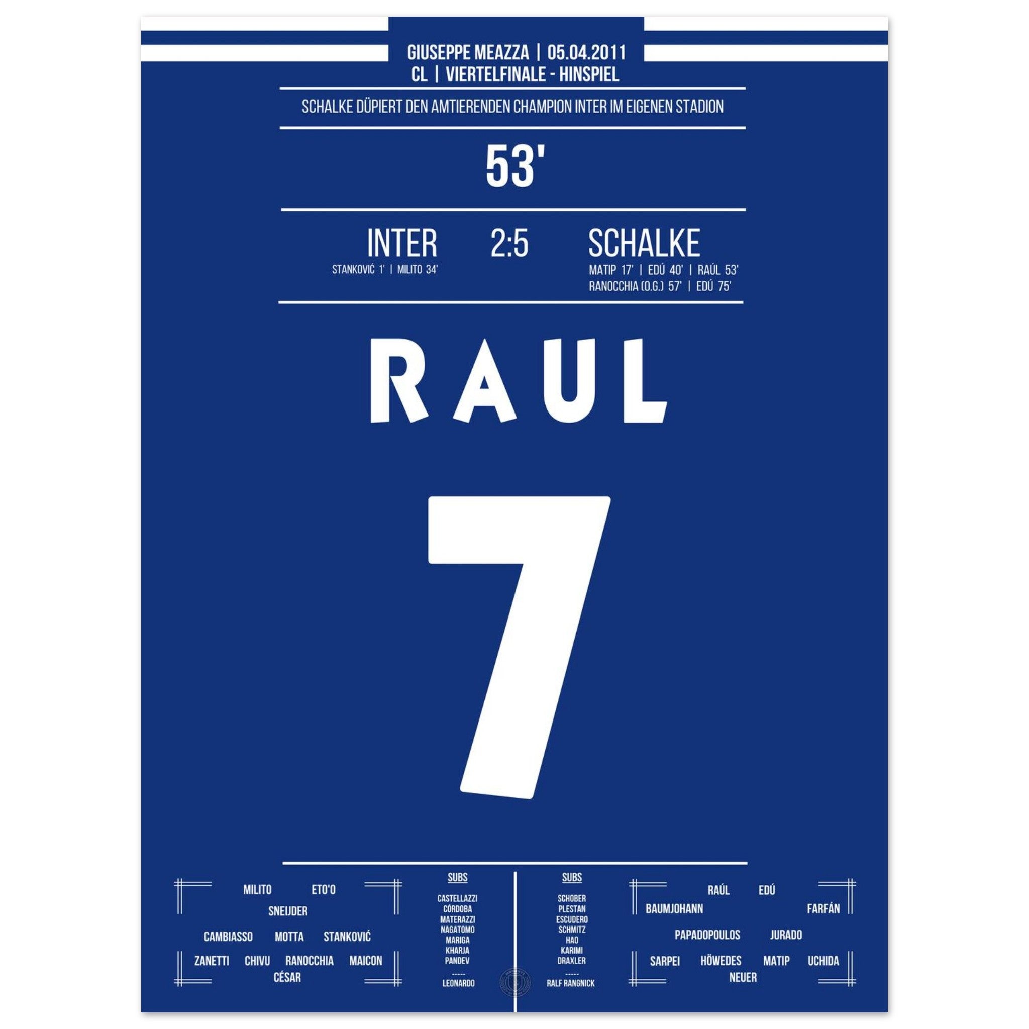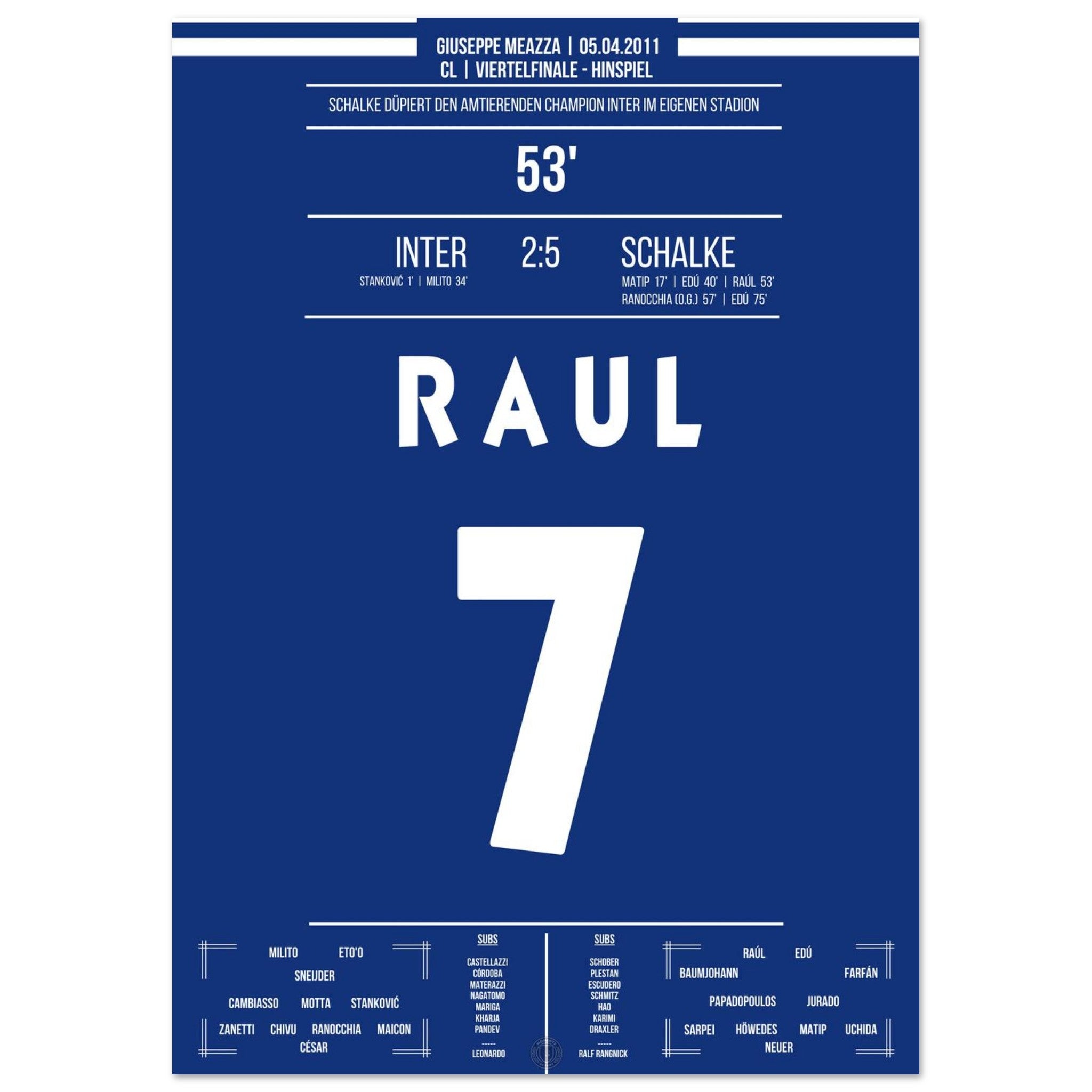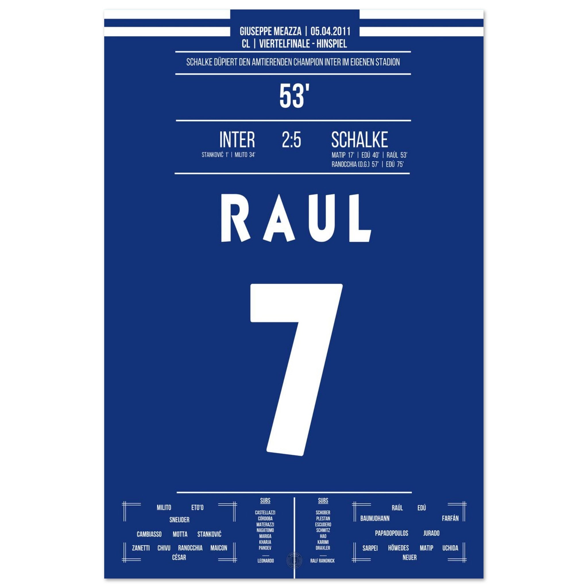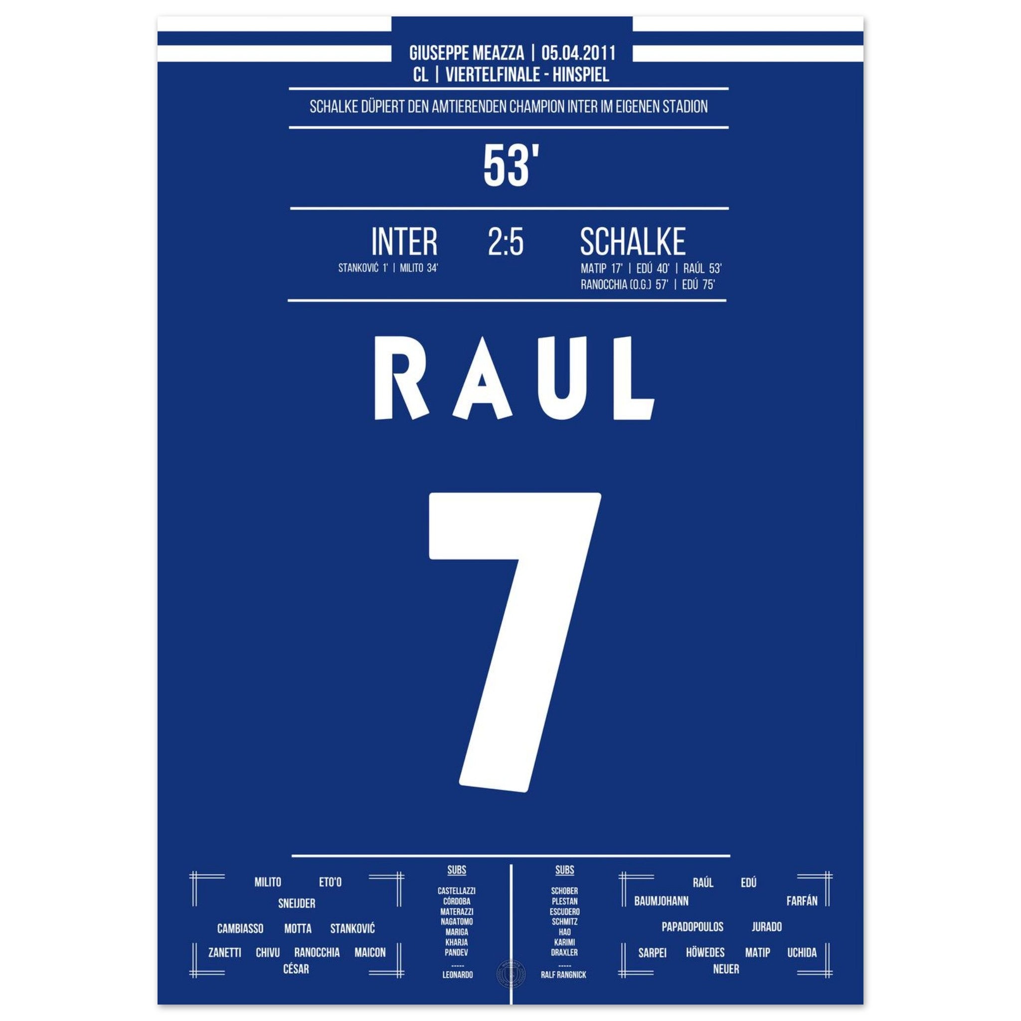 Was für ein Fußball-Wahnsinn! Schalke schockt Titelverteidiger Inter in deren eigenem Stadion mit einem historischen 5:2-Sieg im Viertelfinal-Hinspiel. Raul trifft und dirigiert, Edu schnürt einen Doppelpack – und die Königsblauen schreiben Europapokal-Geschichte.
