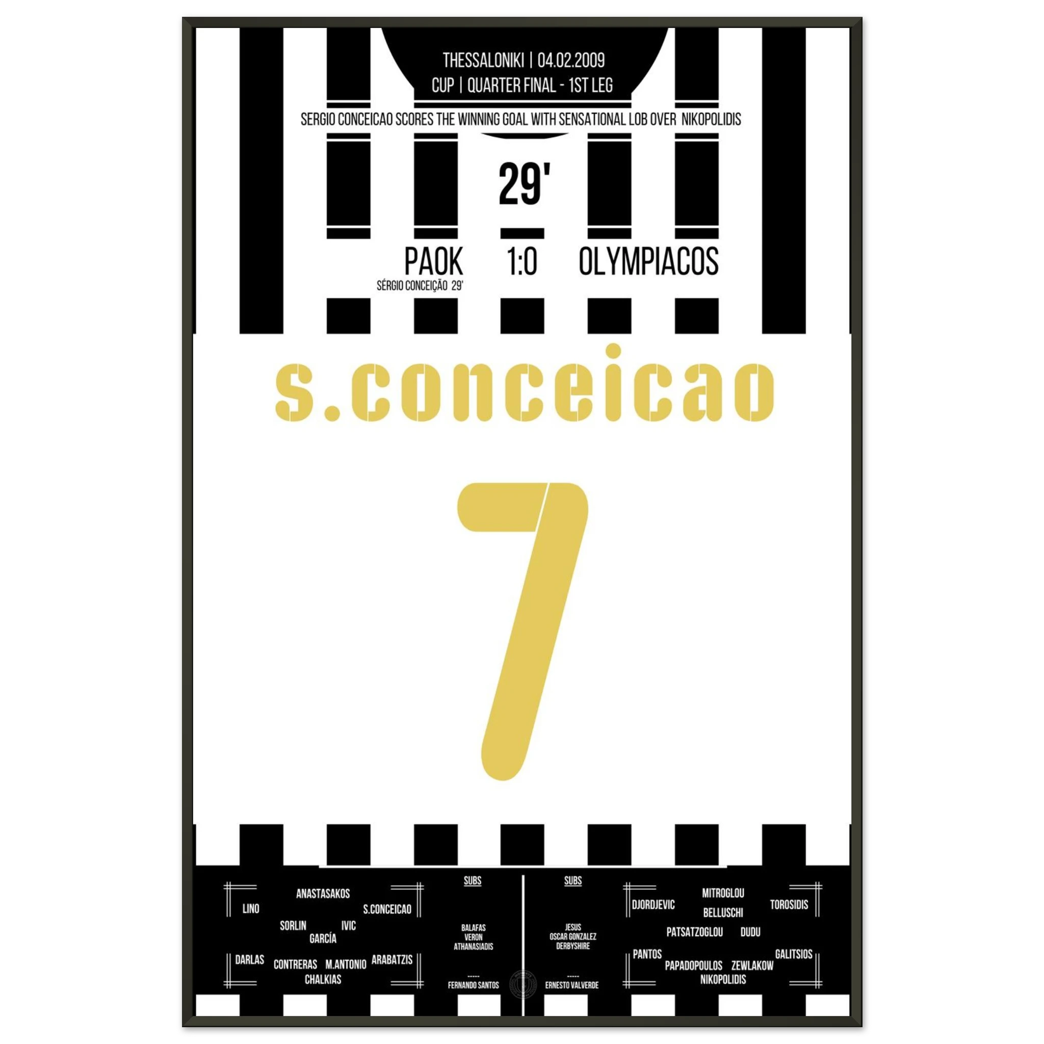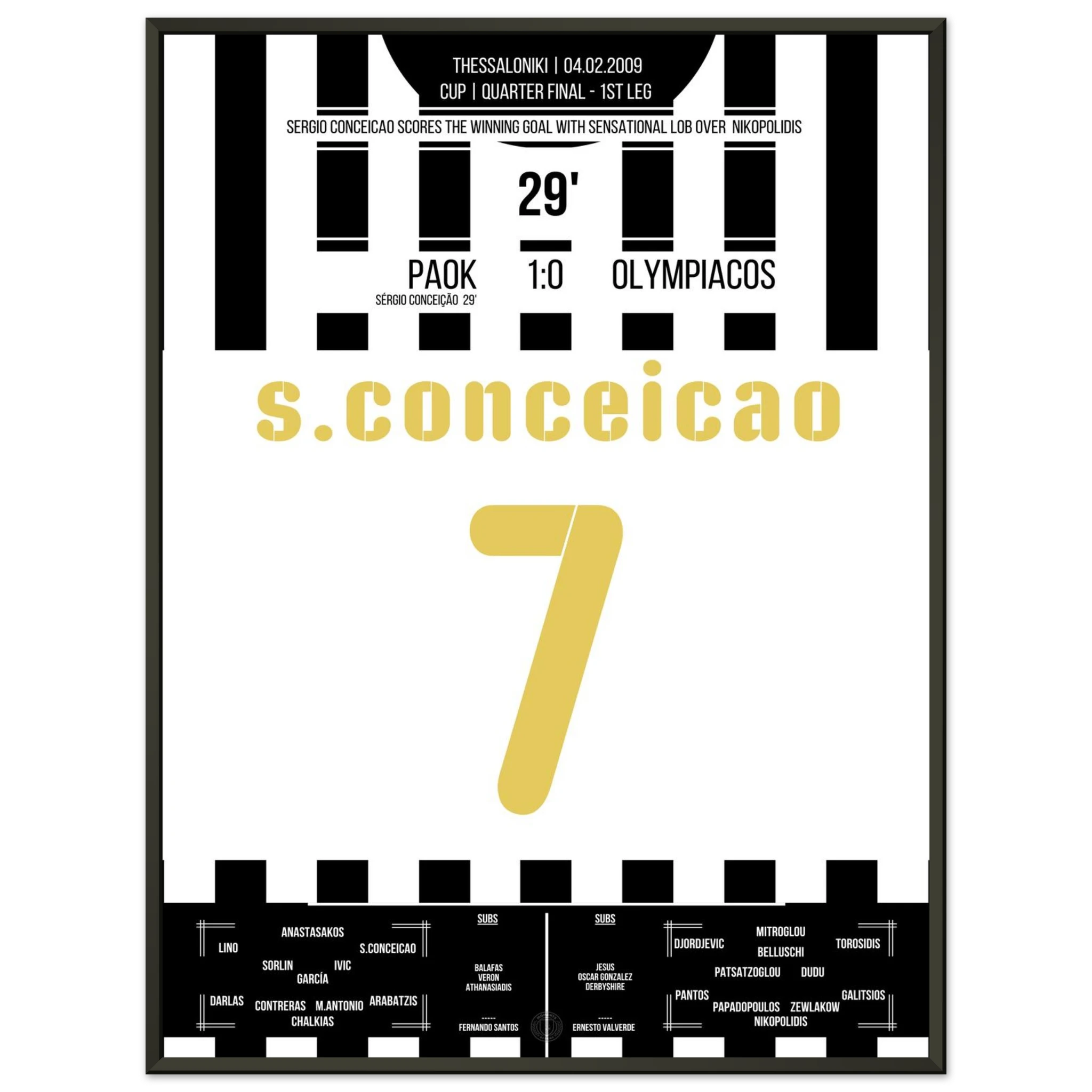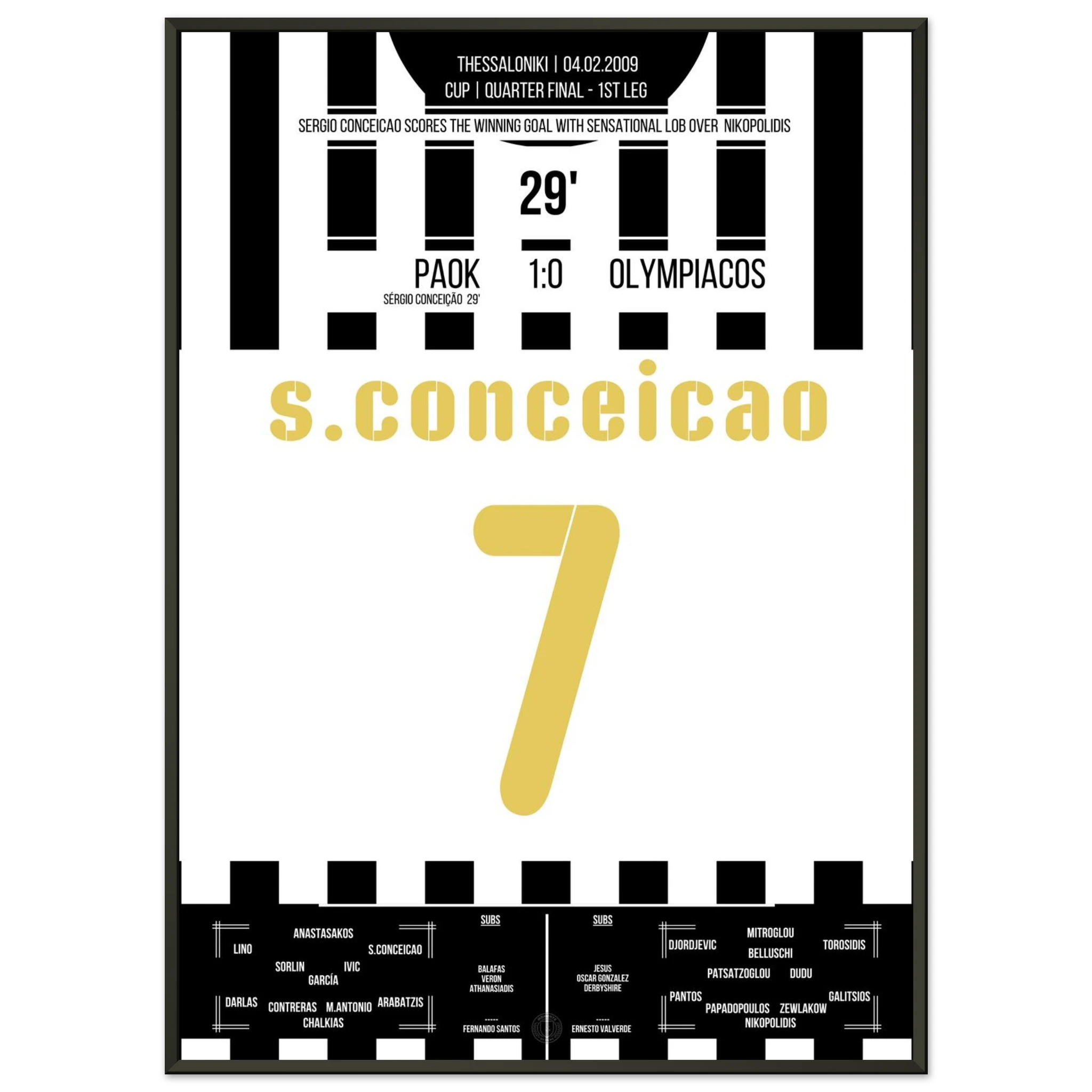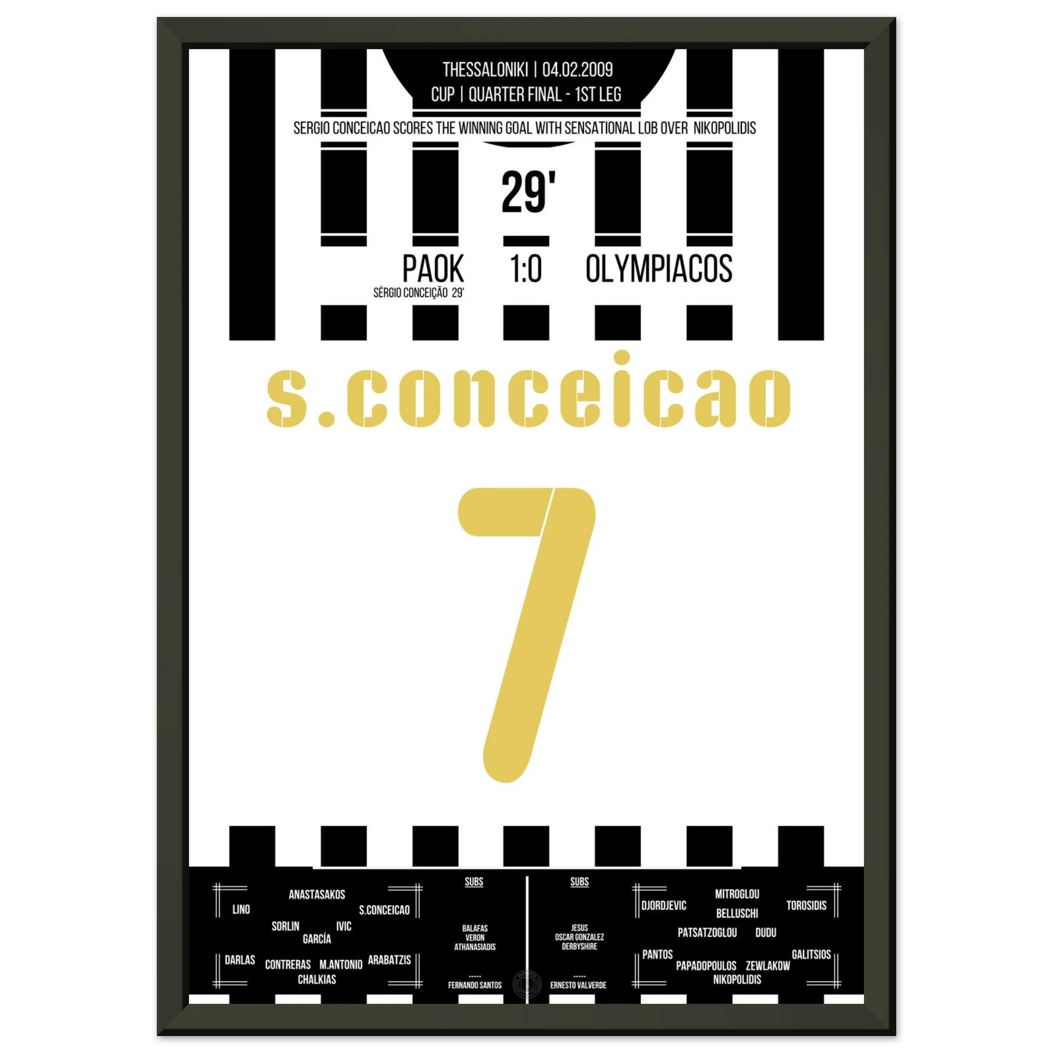 Unser Poster feiert diesen unvergesslichen Abend – Thessaloniki in Weiß-Schwarz, elektrisiert vom Jubel der Fans. ⚫⚪