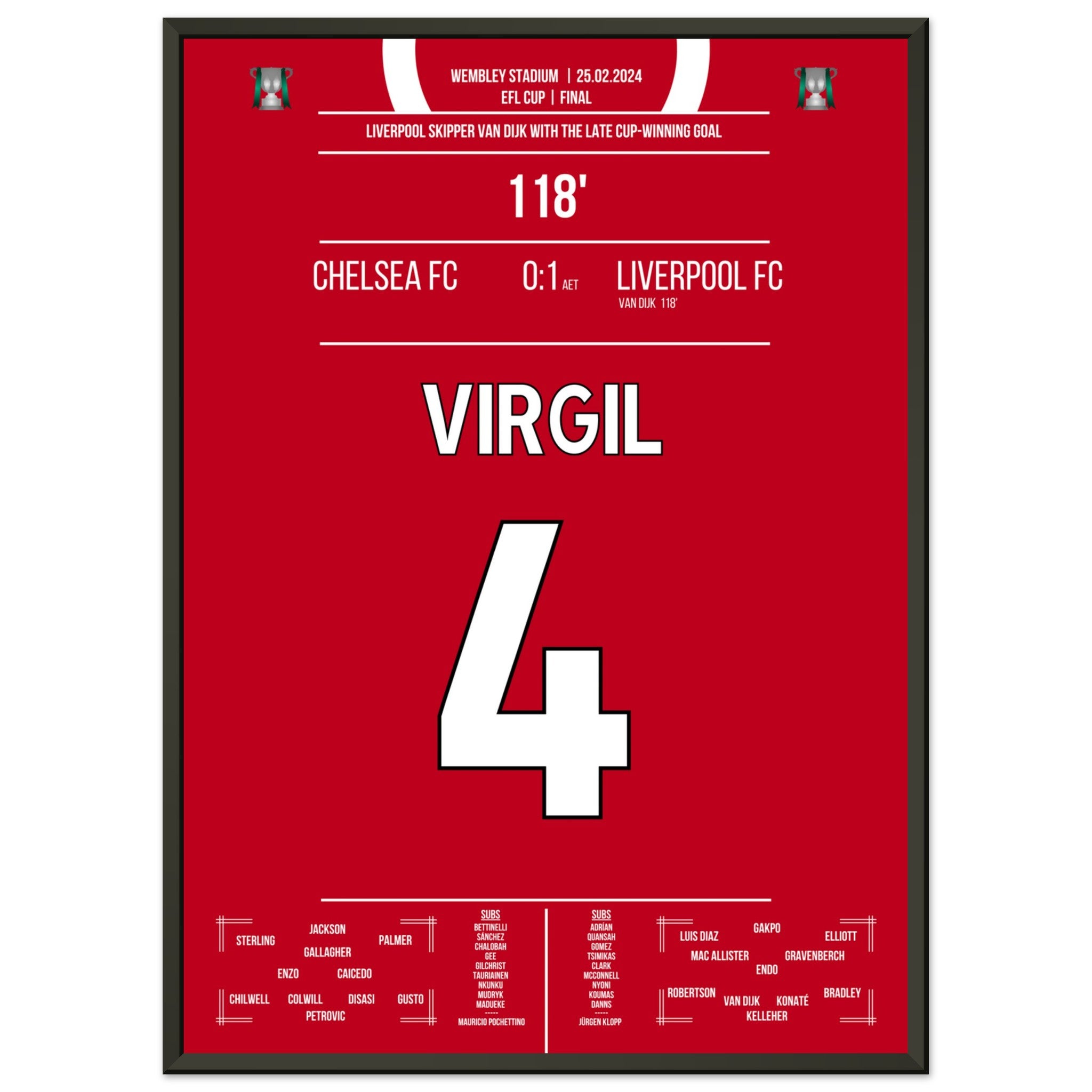 Hier kommt unser Premium-Druck dieses unvergesslichen Fußballmoments für das ultimative Fan-Erlebnis. Gedruckt auf schwerem, seidenmattem Premium-Papier, glänzt dieses Kunstwerk mit verstärkten Farben und einem subtilen Glanz, der jedes Detail zum Vorschein bringt.