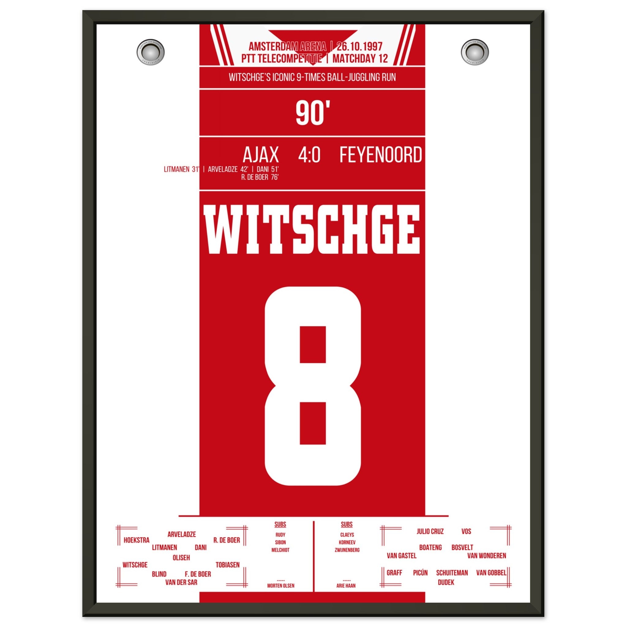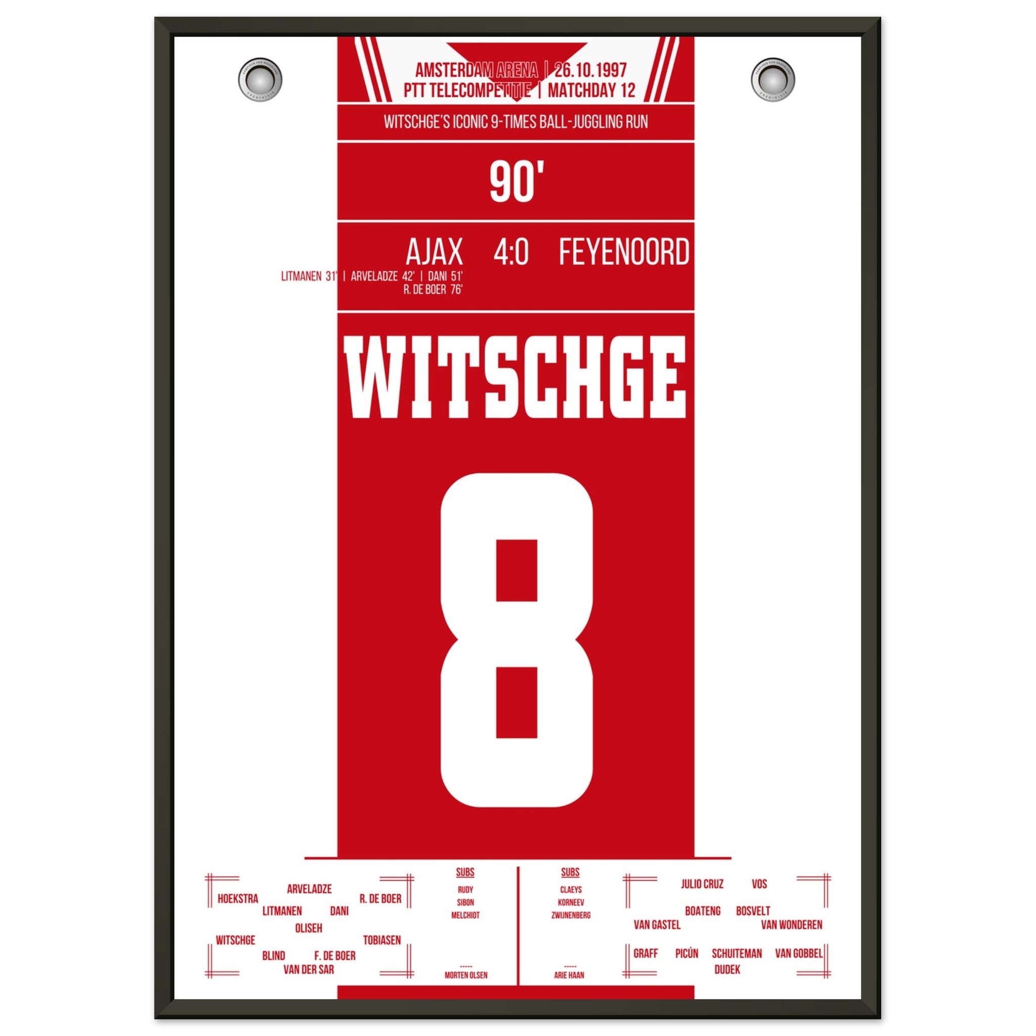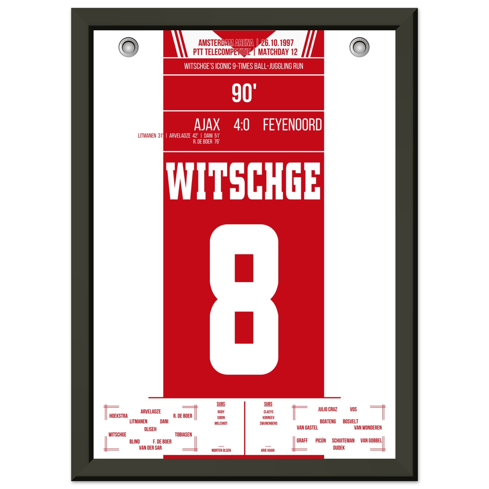 Hier kommt unser Premium-Druck dieses unvergesslichen Fußballmoments für das ultimative Fan-Erlebnis. Gedruckt auf schwerem, seidenmattem Premium-Papier, glänzt dieses Kunstwerk mit verstärkten Farben und einem subtilen Glanz, der jedes Detail zum Vorschein bringt.