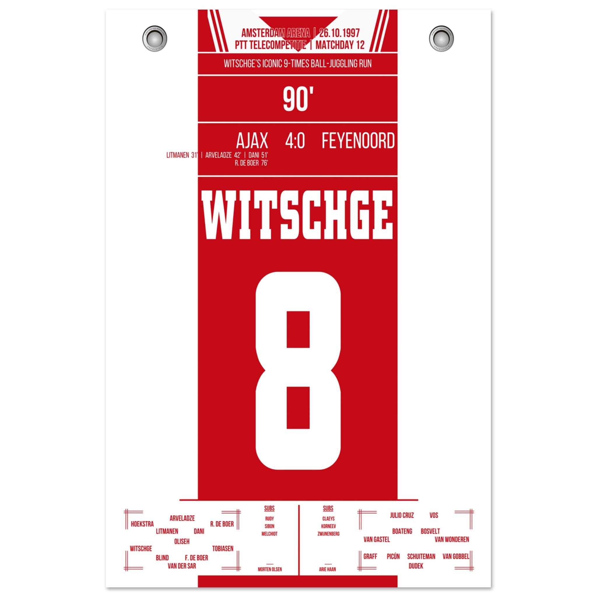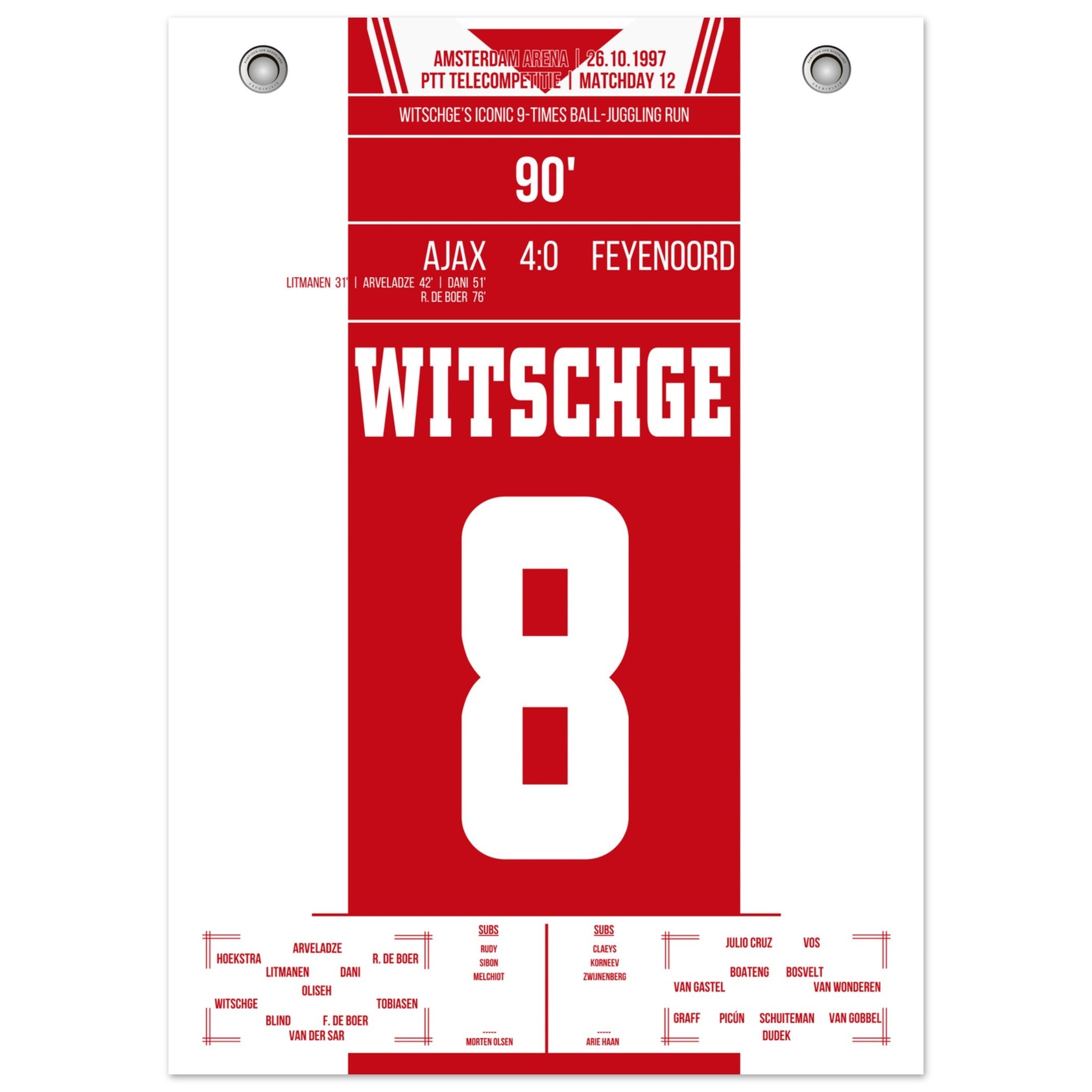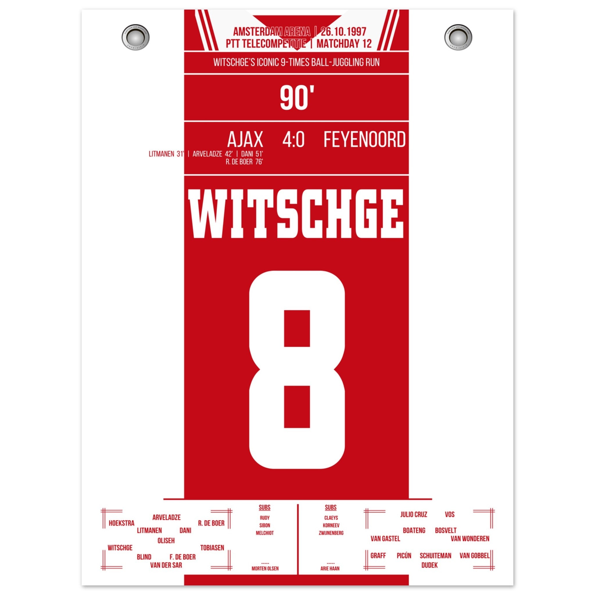 Hier kommt unser Premium-Druck dieses unvergesslichen Fußballmoments für das ultimative Fan-Erlebnis. Gedruckt auf schwerem, seidenmattem Premium-Papier, glänzt dieses Kunstwerk mit verstärkten Farben und einem subtilen Glanz, der jedes Detail zum Vorschein bringt.