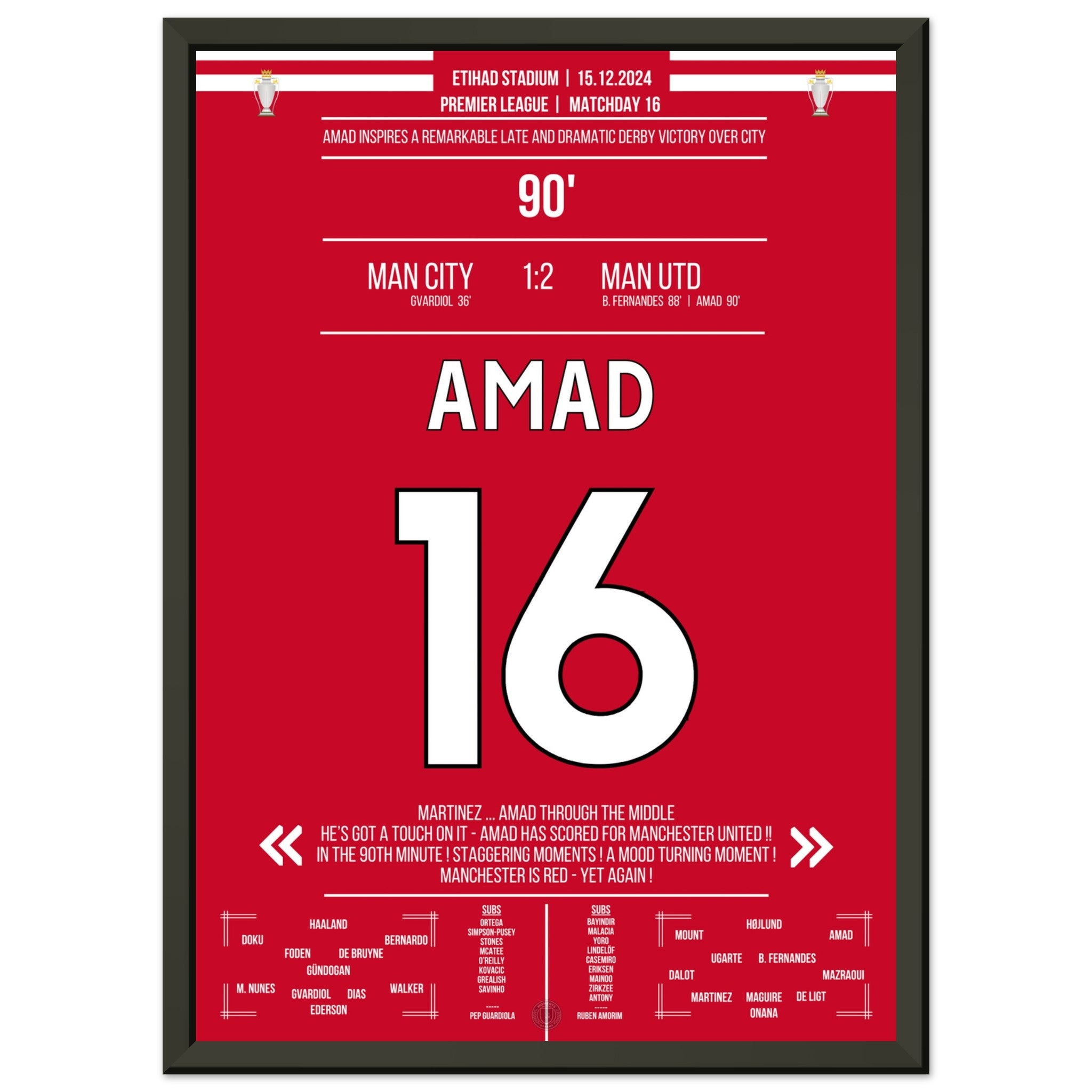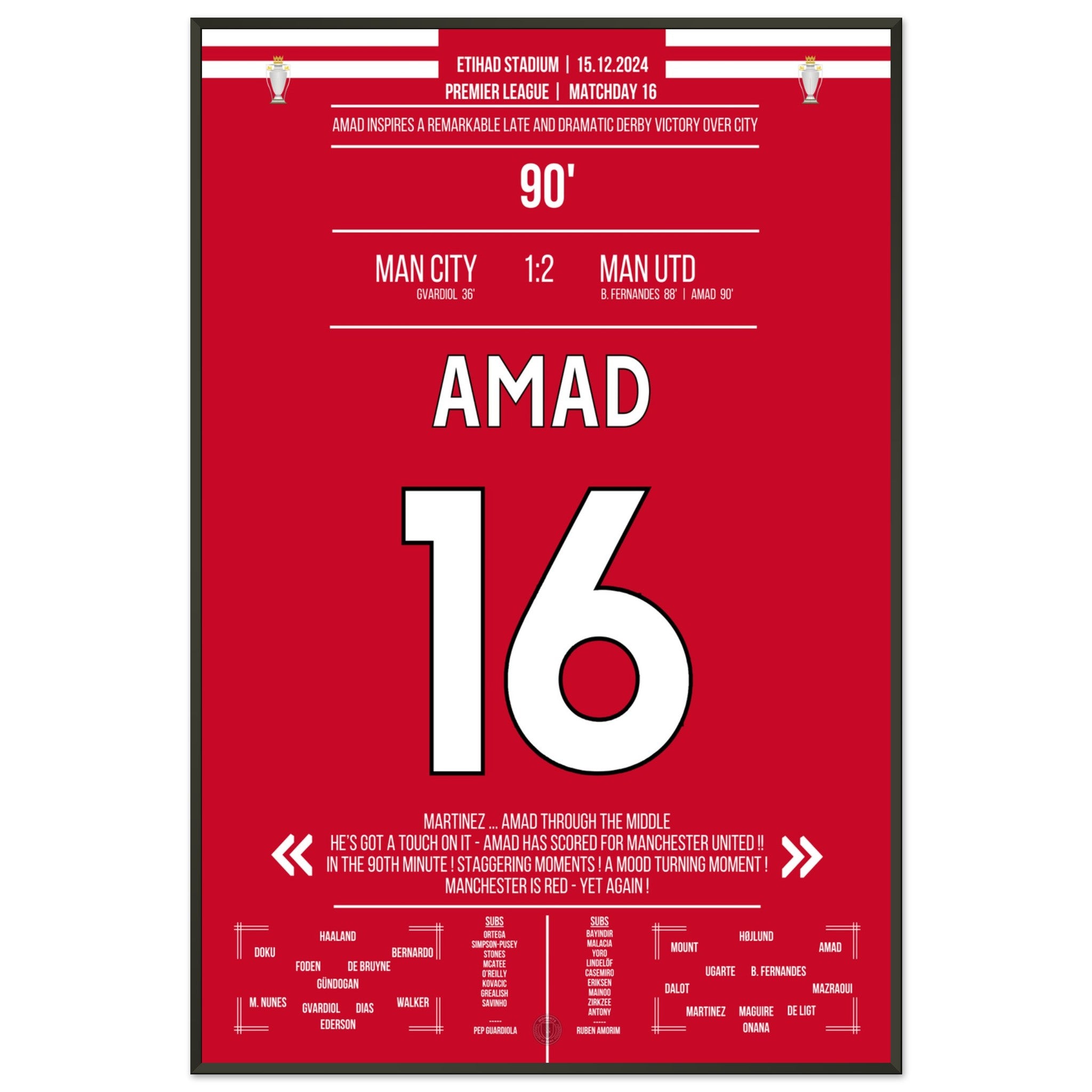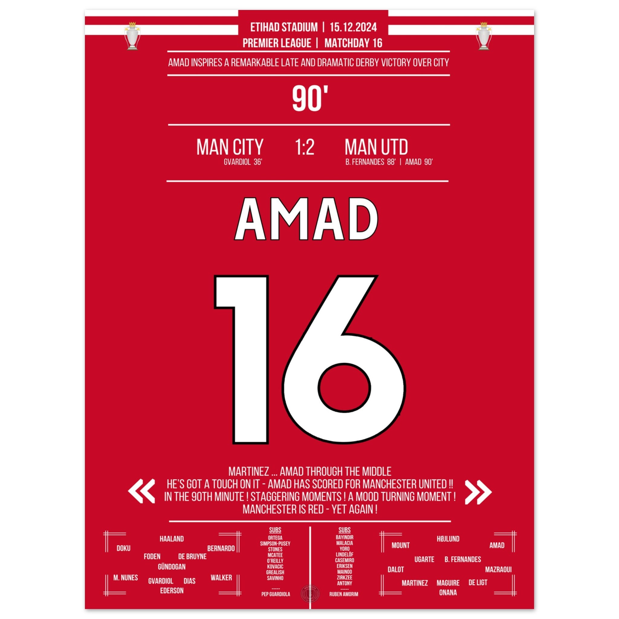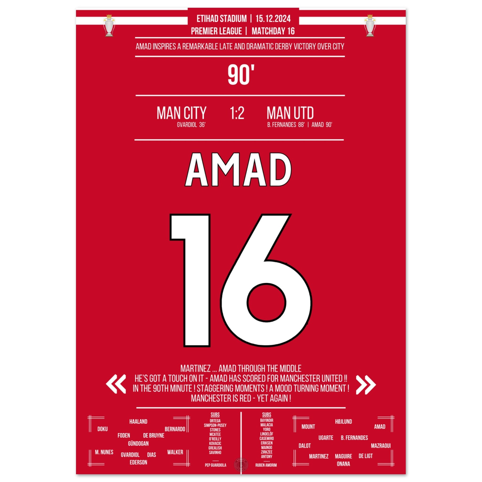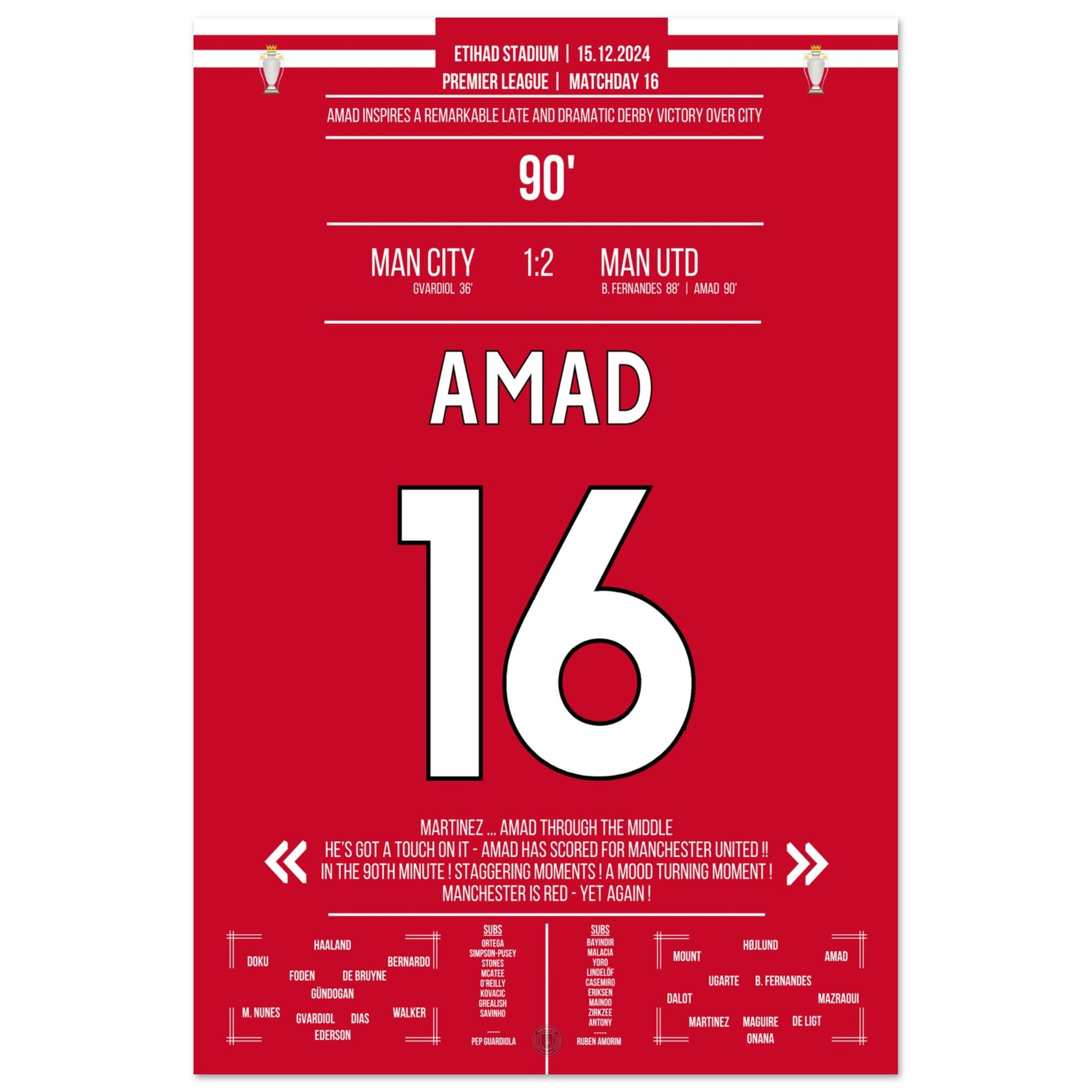 Amad scores the Red Devils' late comeback derby victory at the Etihad.