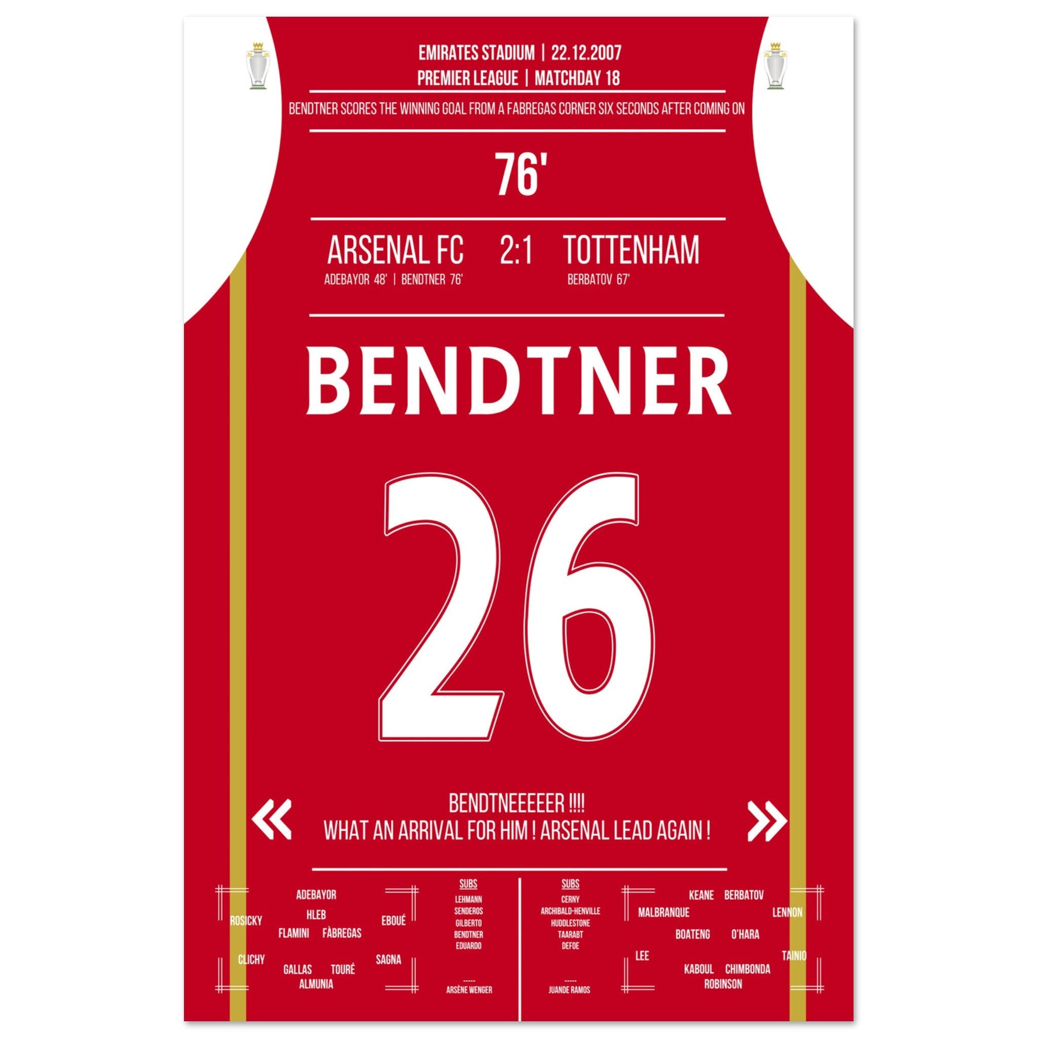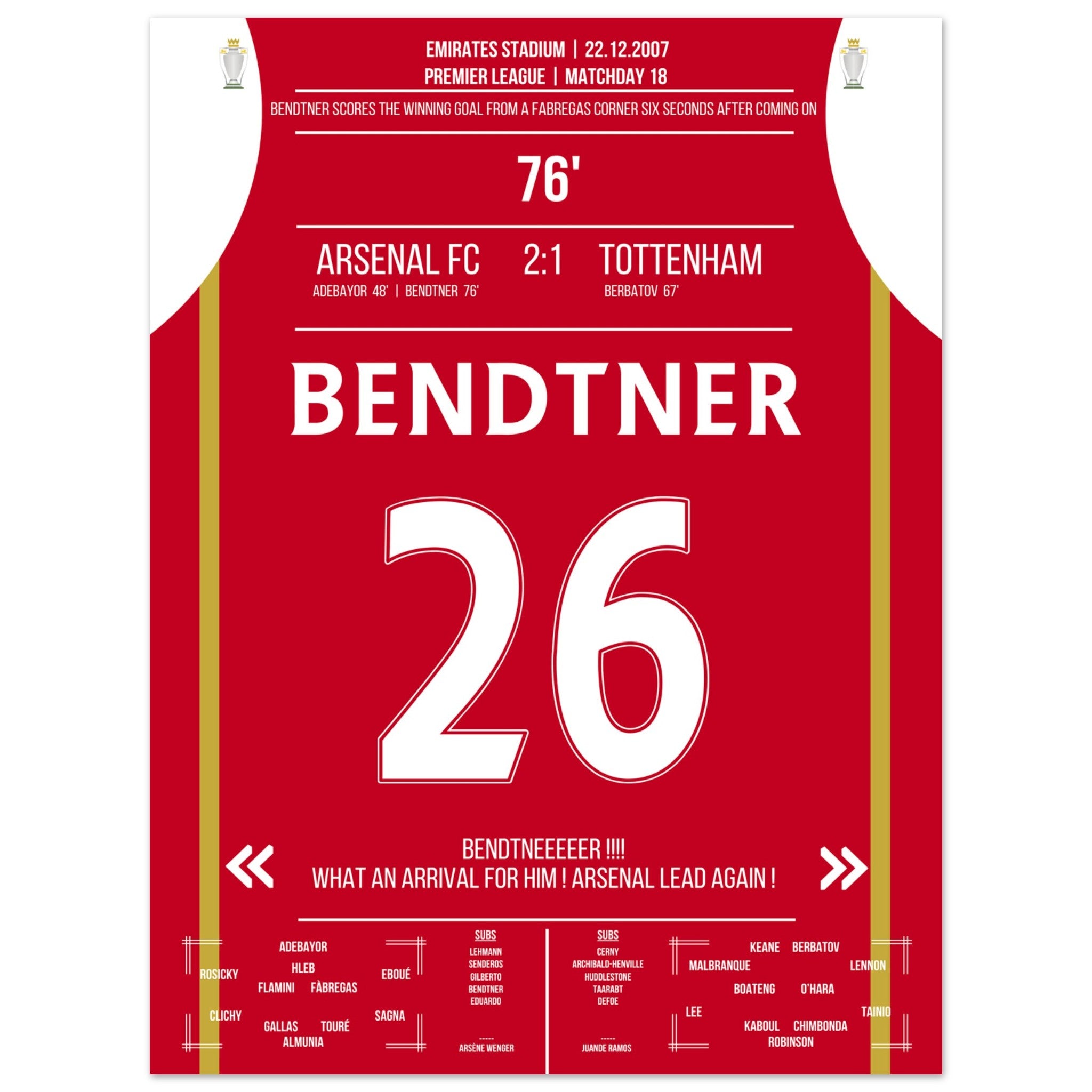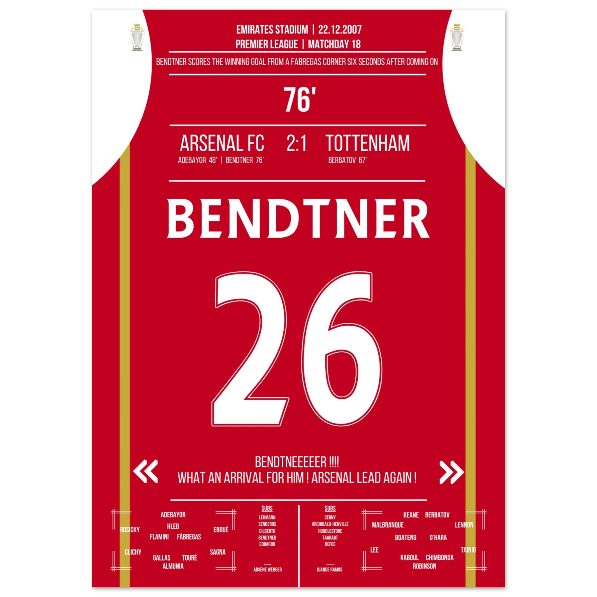 Bendtner's winning goal 6 seconds after being substituted in the NLD
