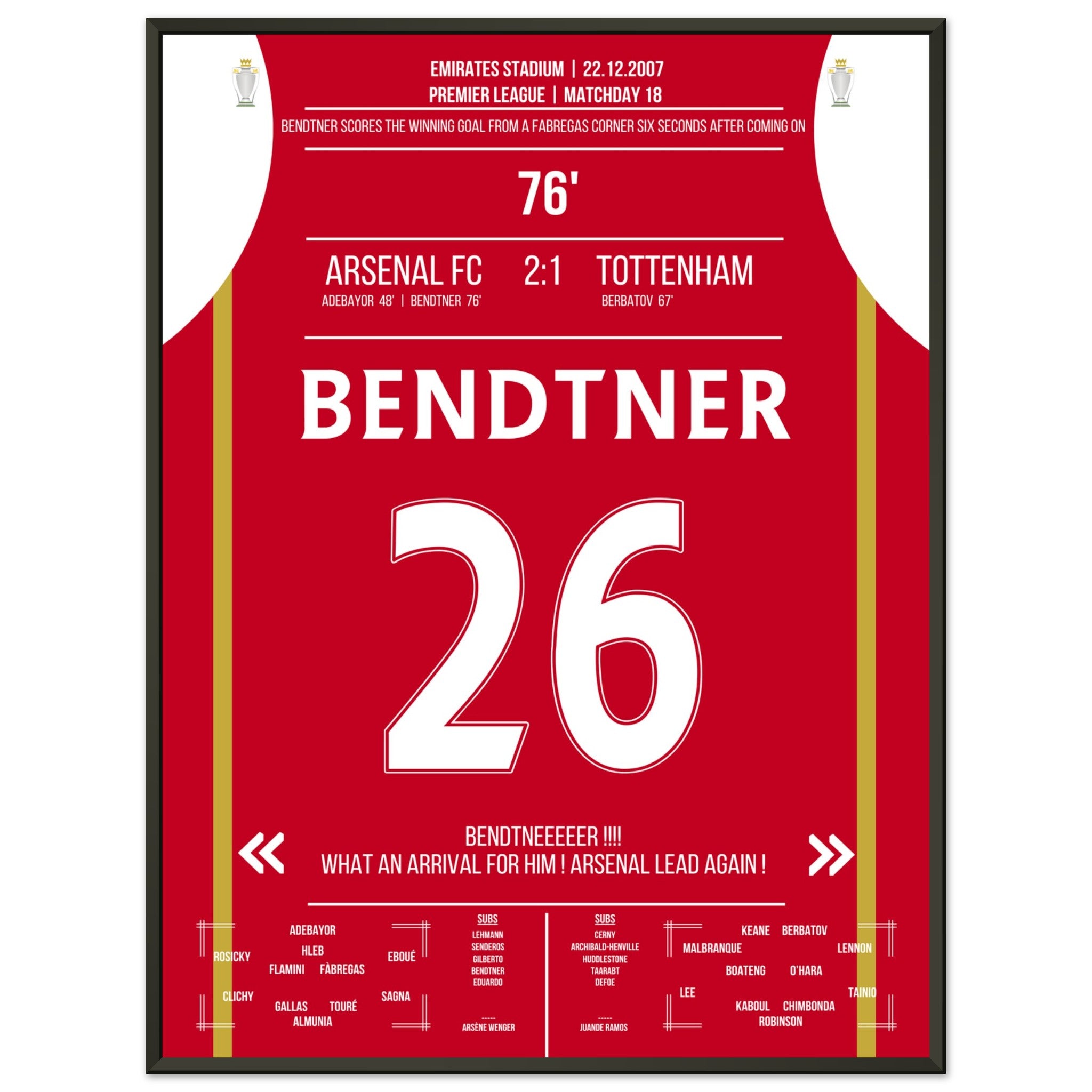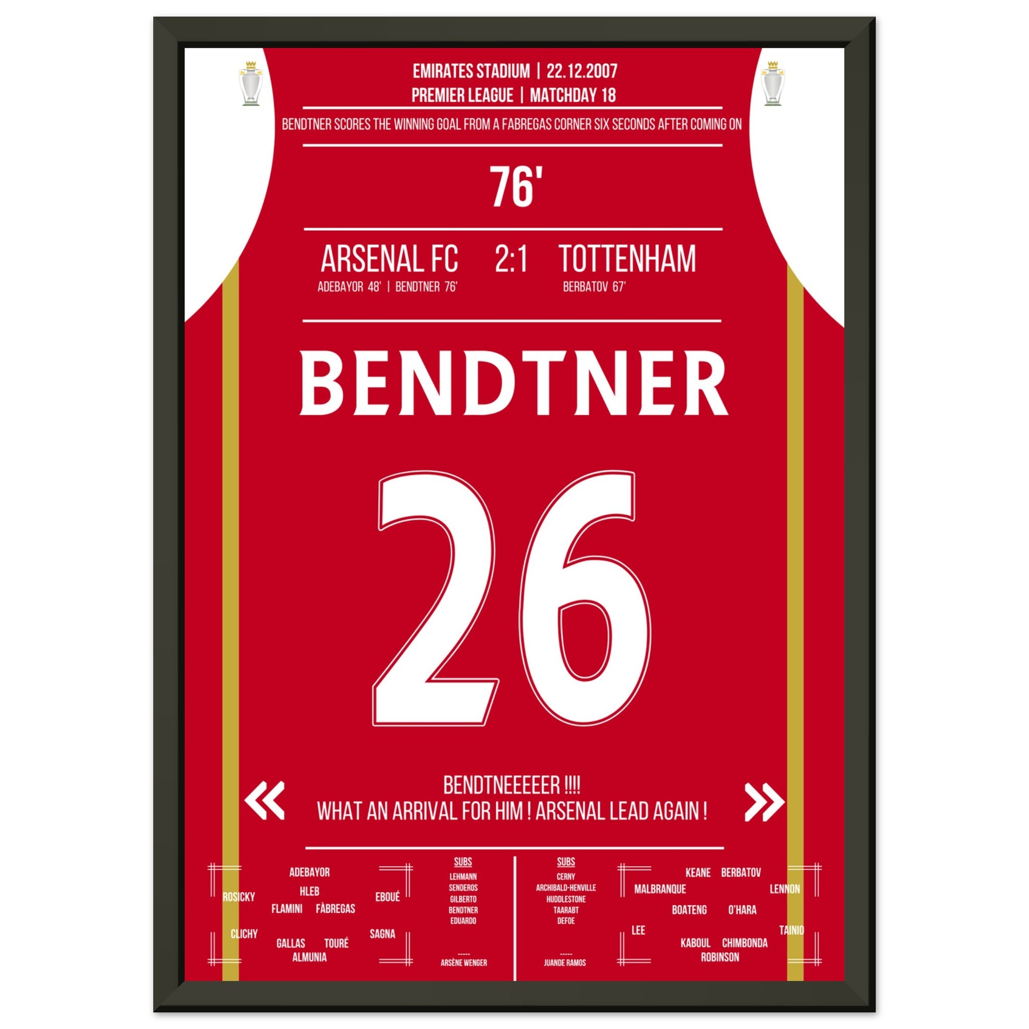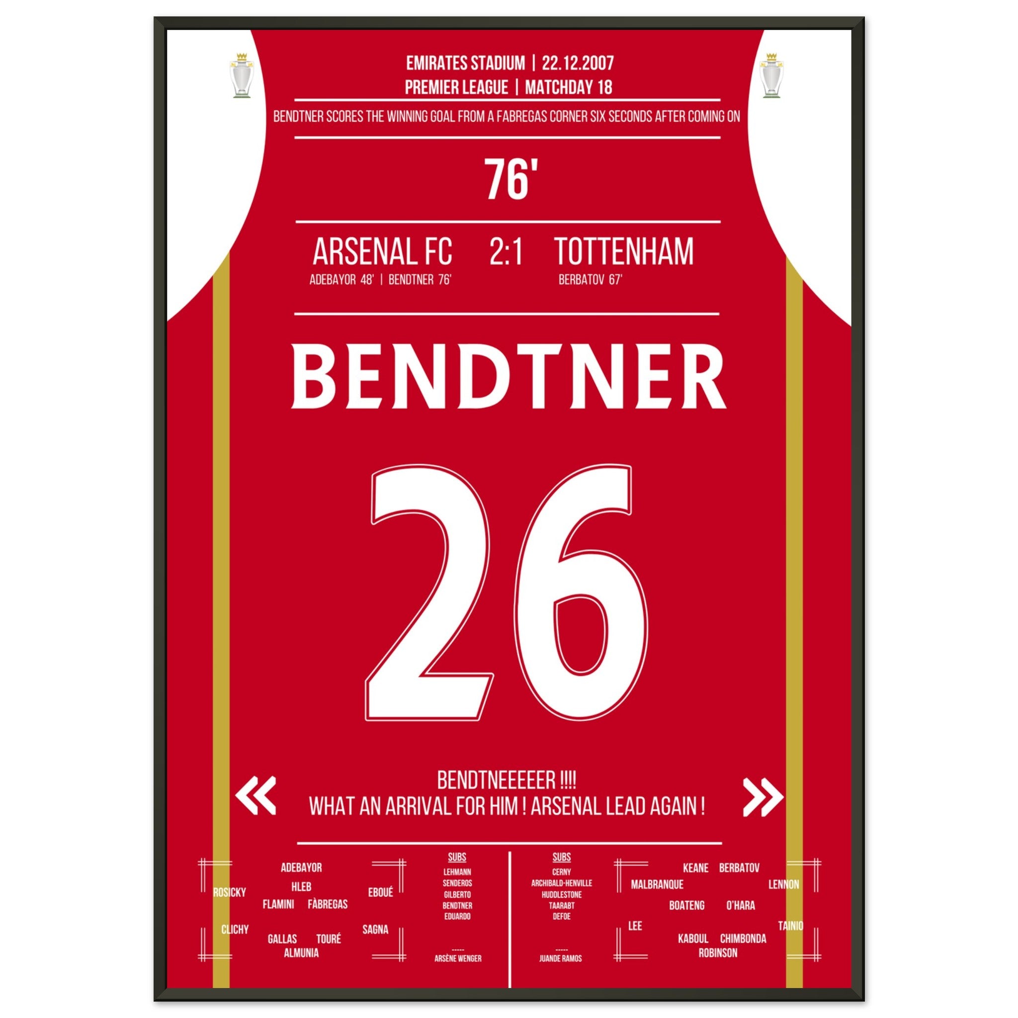 Bendtner's winning goal 6 seconds after being substituted in the NLD