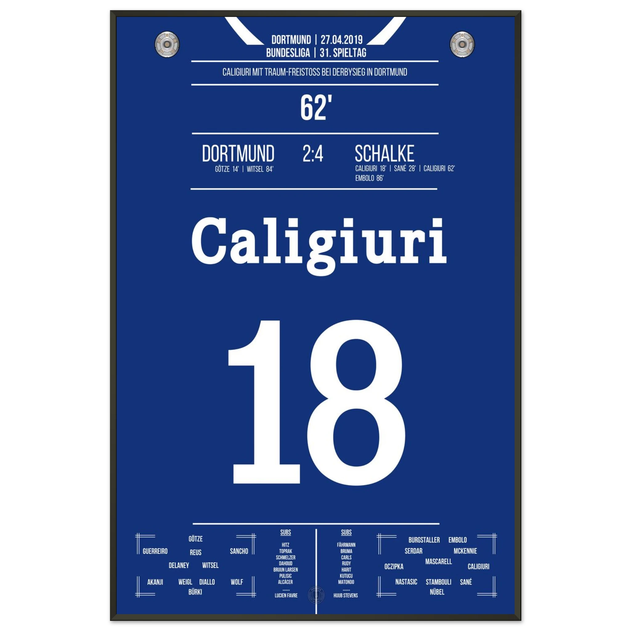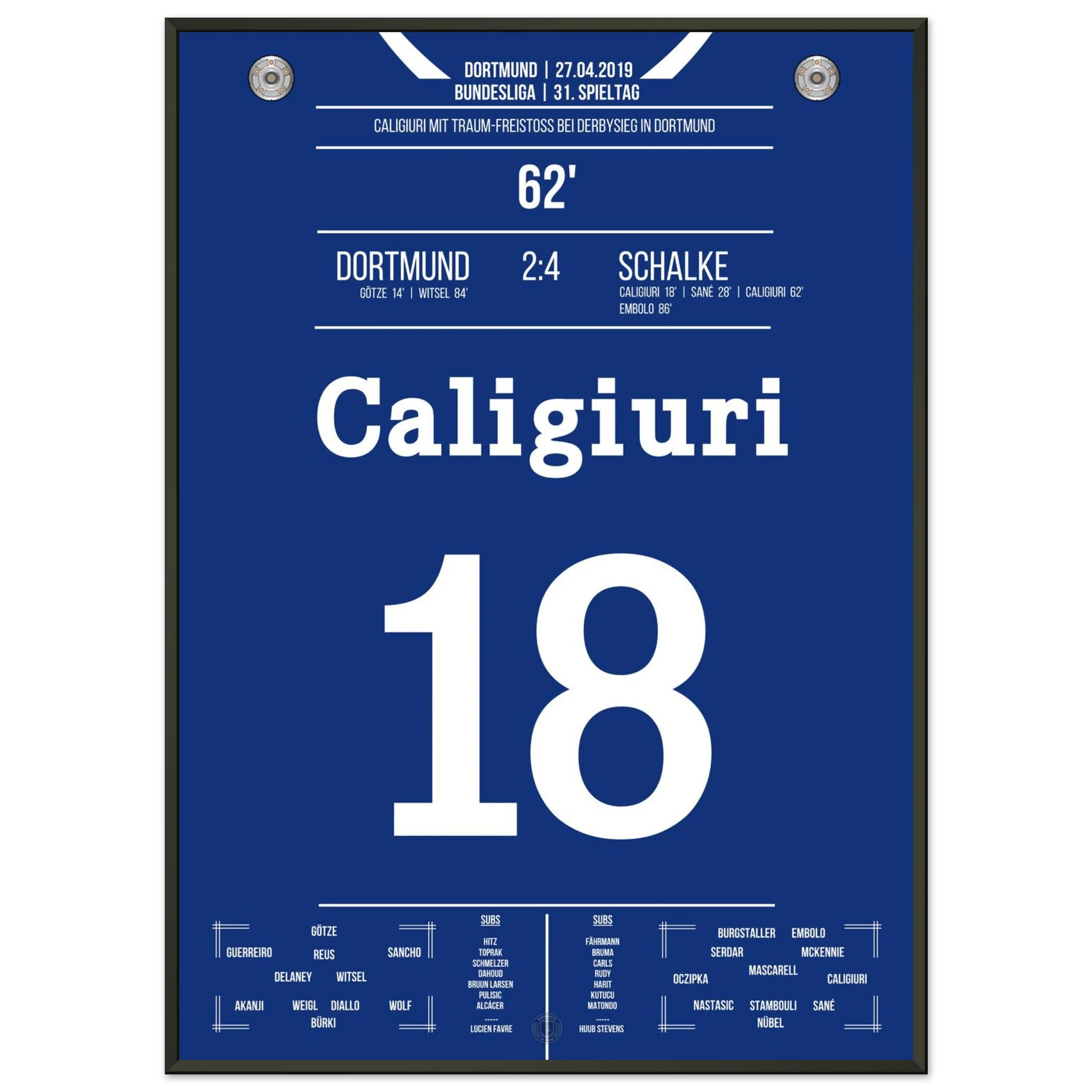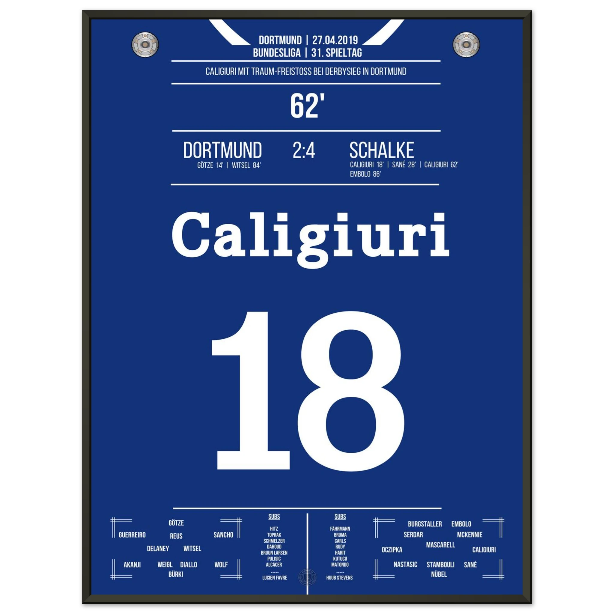 Unser Poster hält den Moment fest, als das Revierderby völlig eskalierte – ein Spiel, das in die Geschichte beider Städte eingraviert ist.