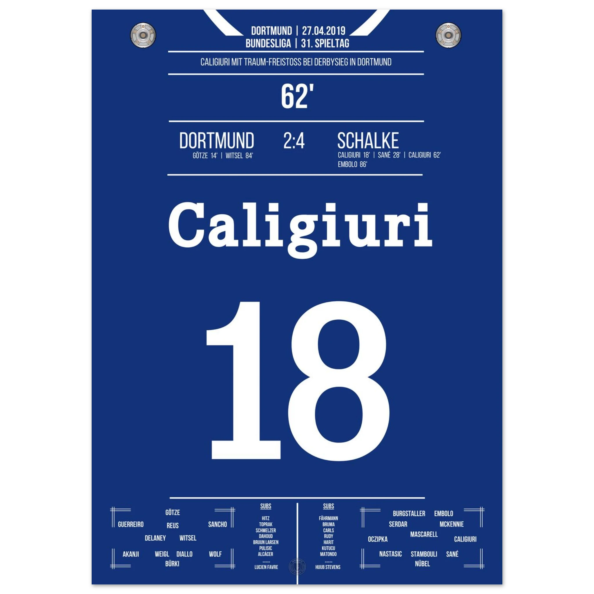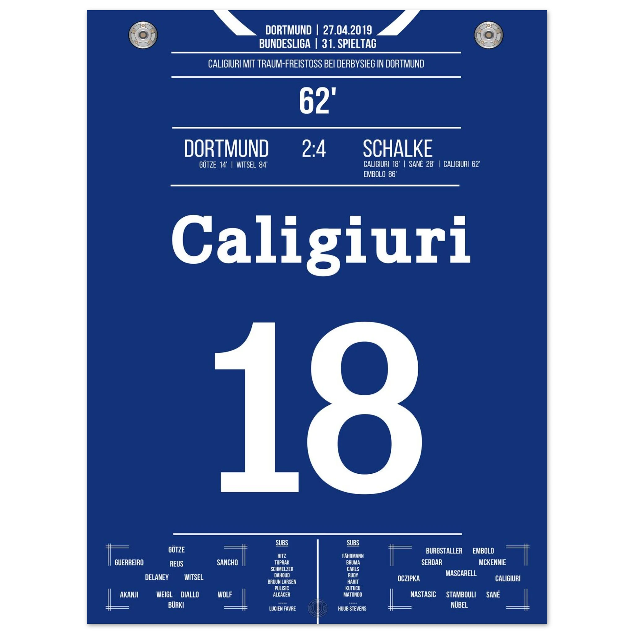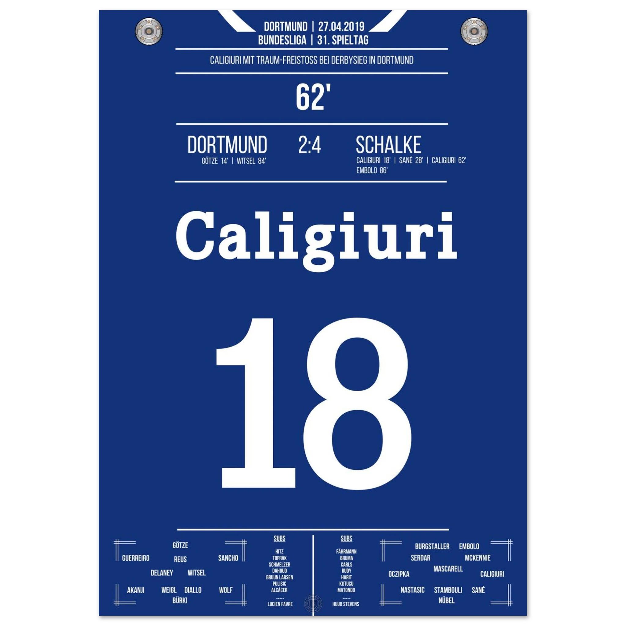 Unser Poster hält den Moment fest, als das Revierderby völlig eskalierte – ein Spiel, das in die Geschichte beider Städte eingraviert ist.