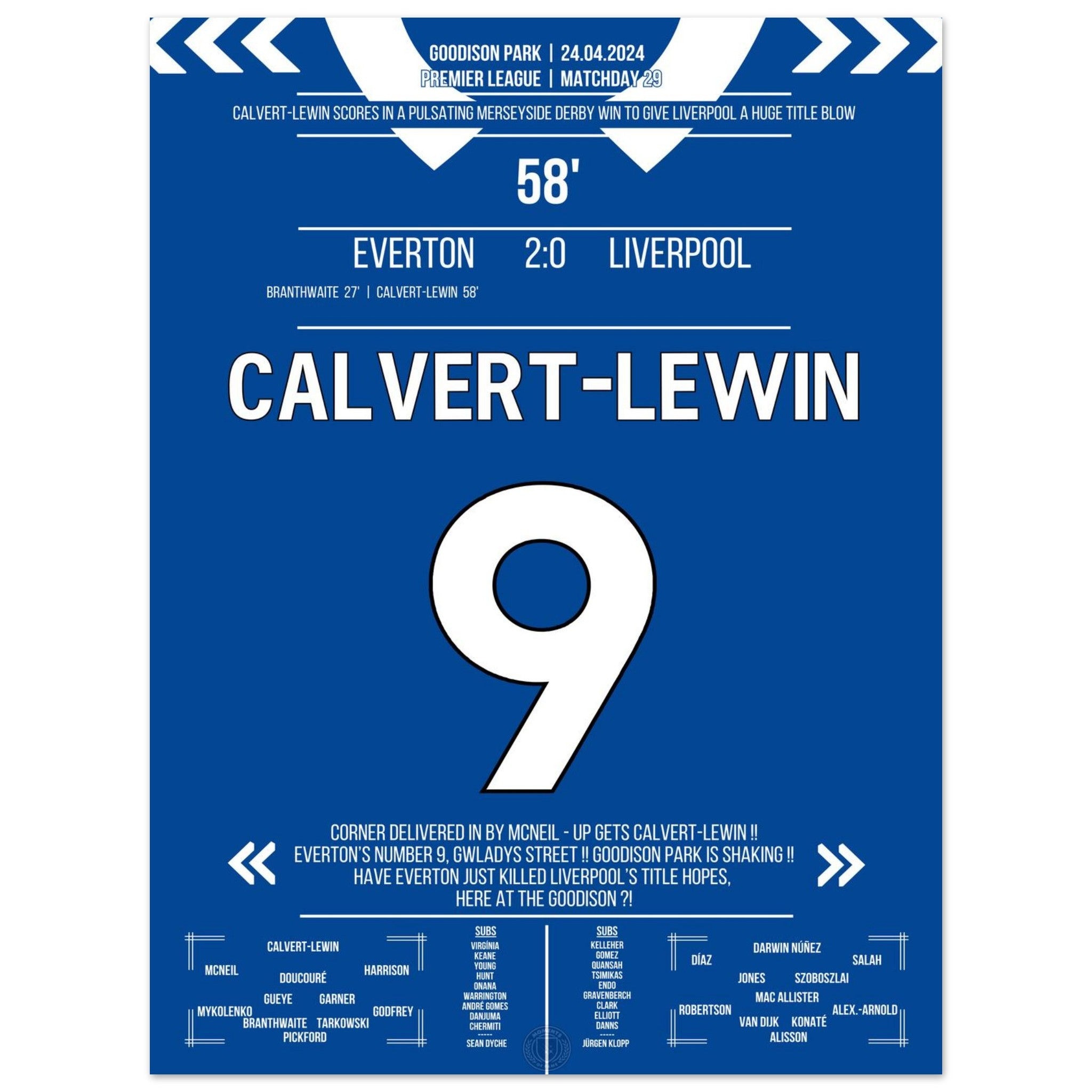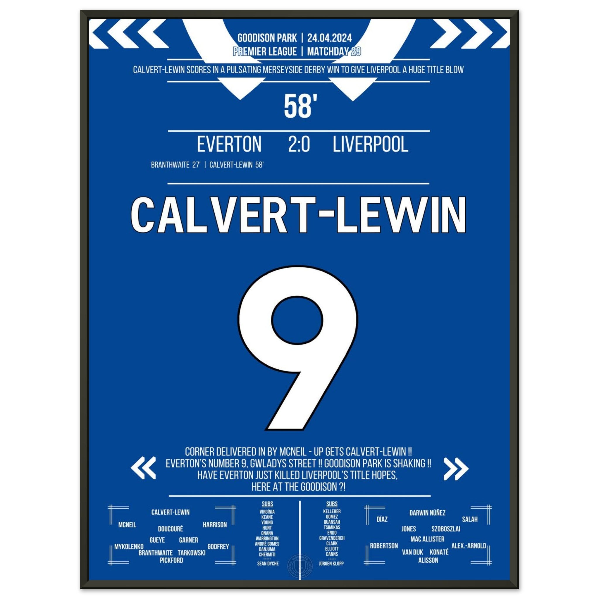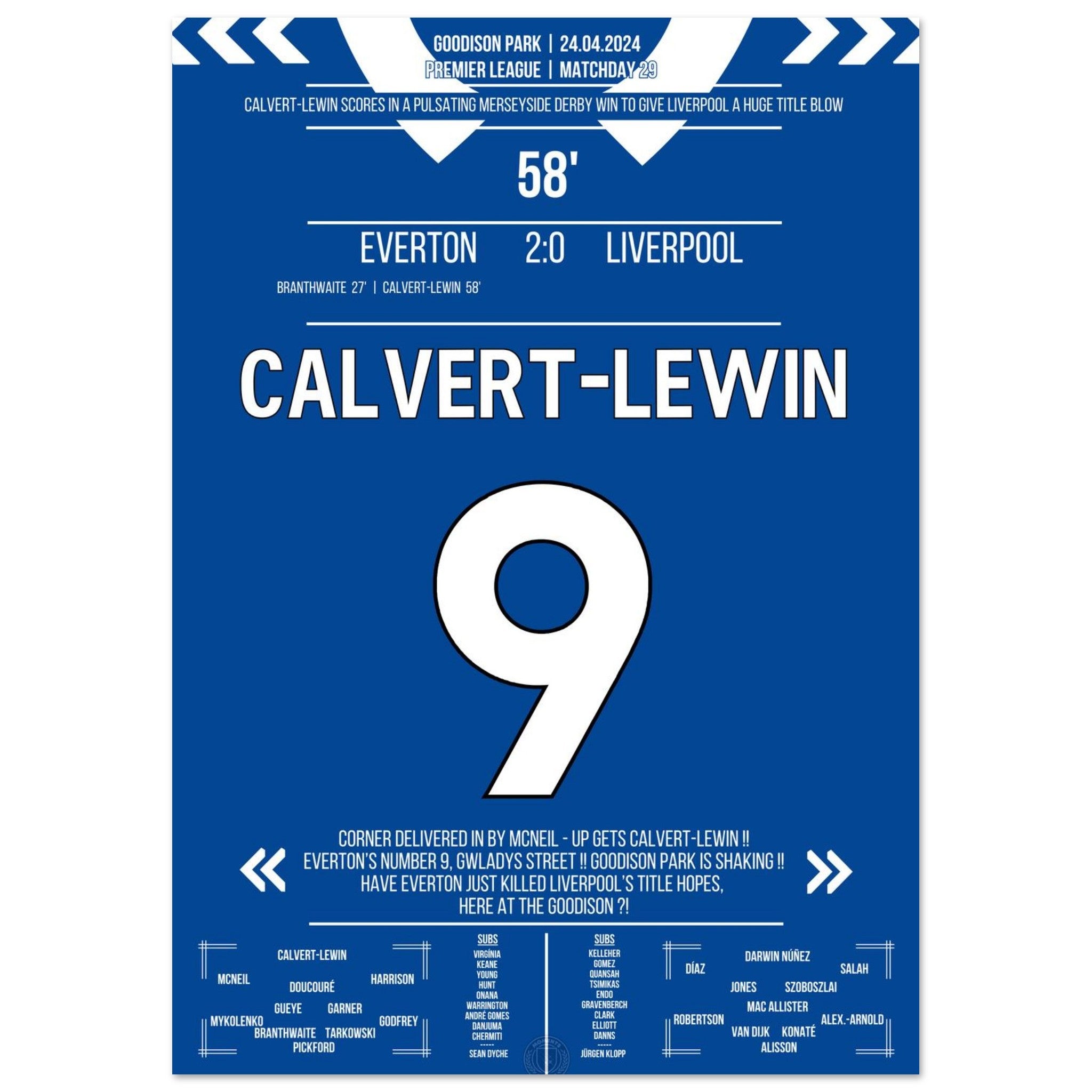 Calvert-Lewin scores the winning goal in the Merseyside Derby.
