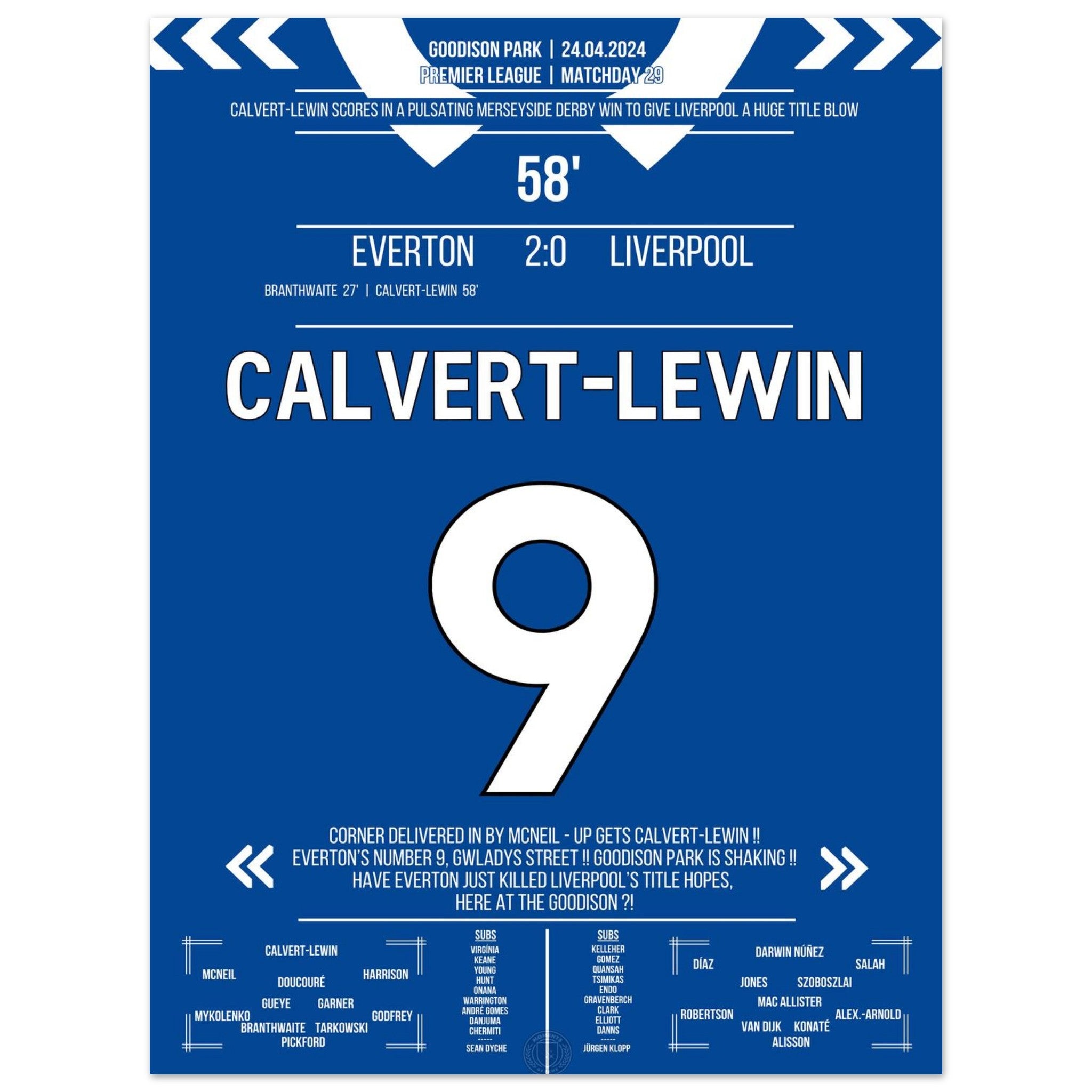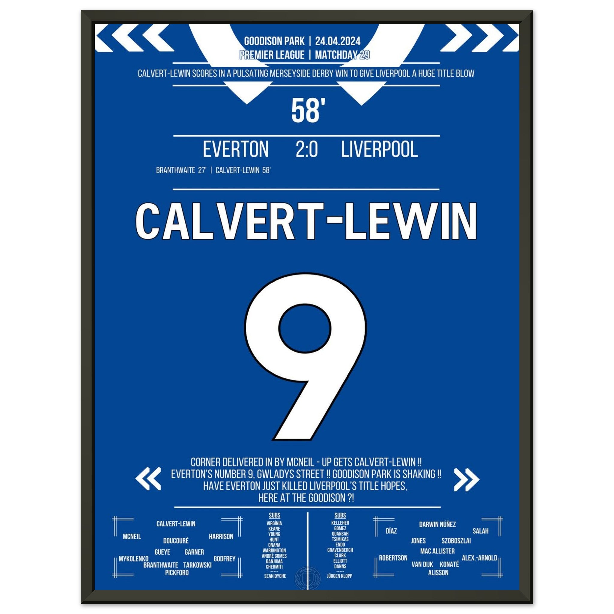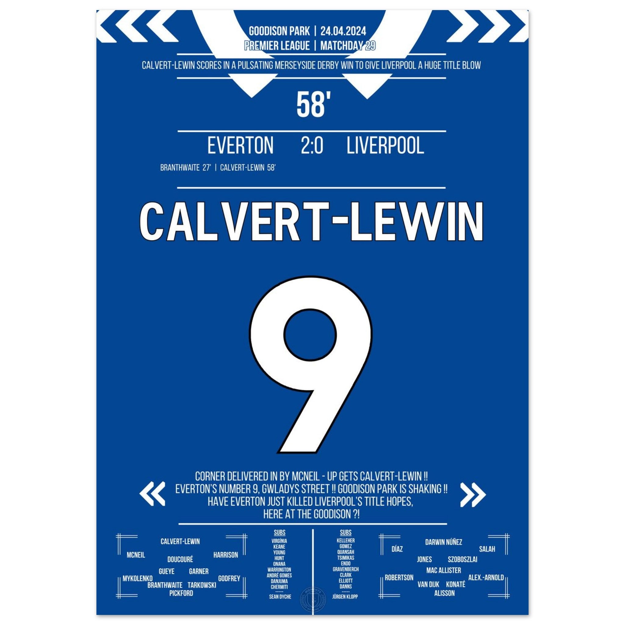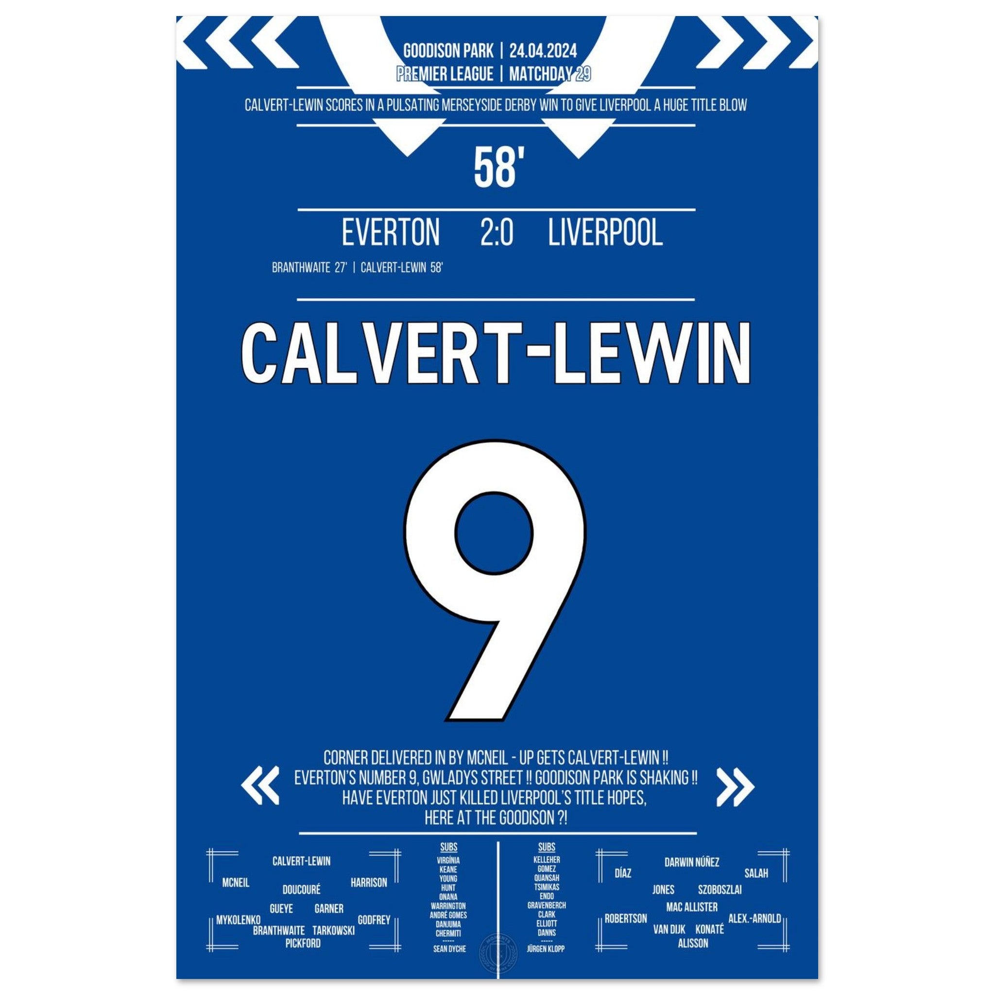 Calvert-Lewin scores the winning goal in the Merseyside Derby.