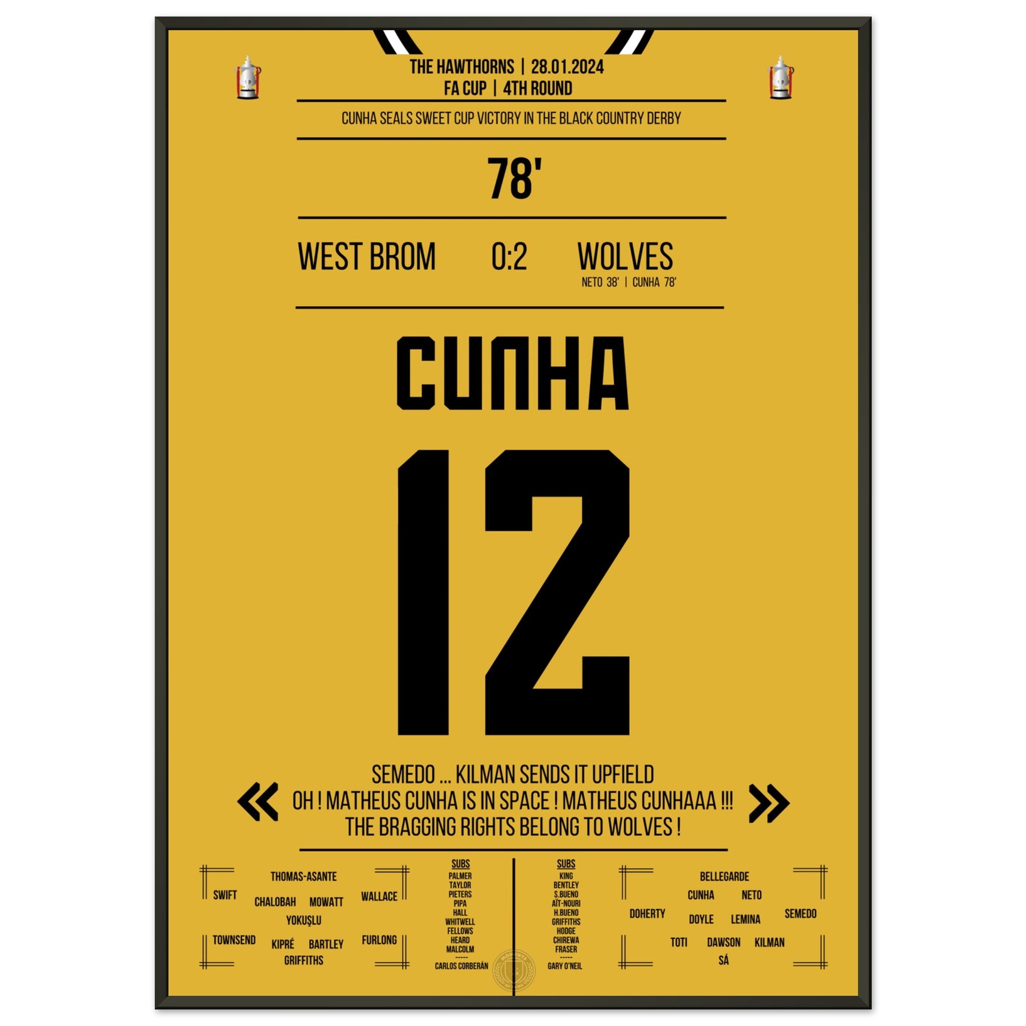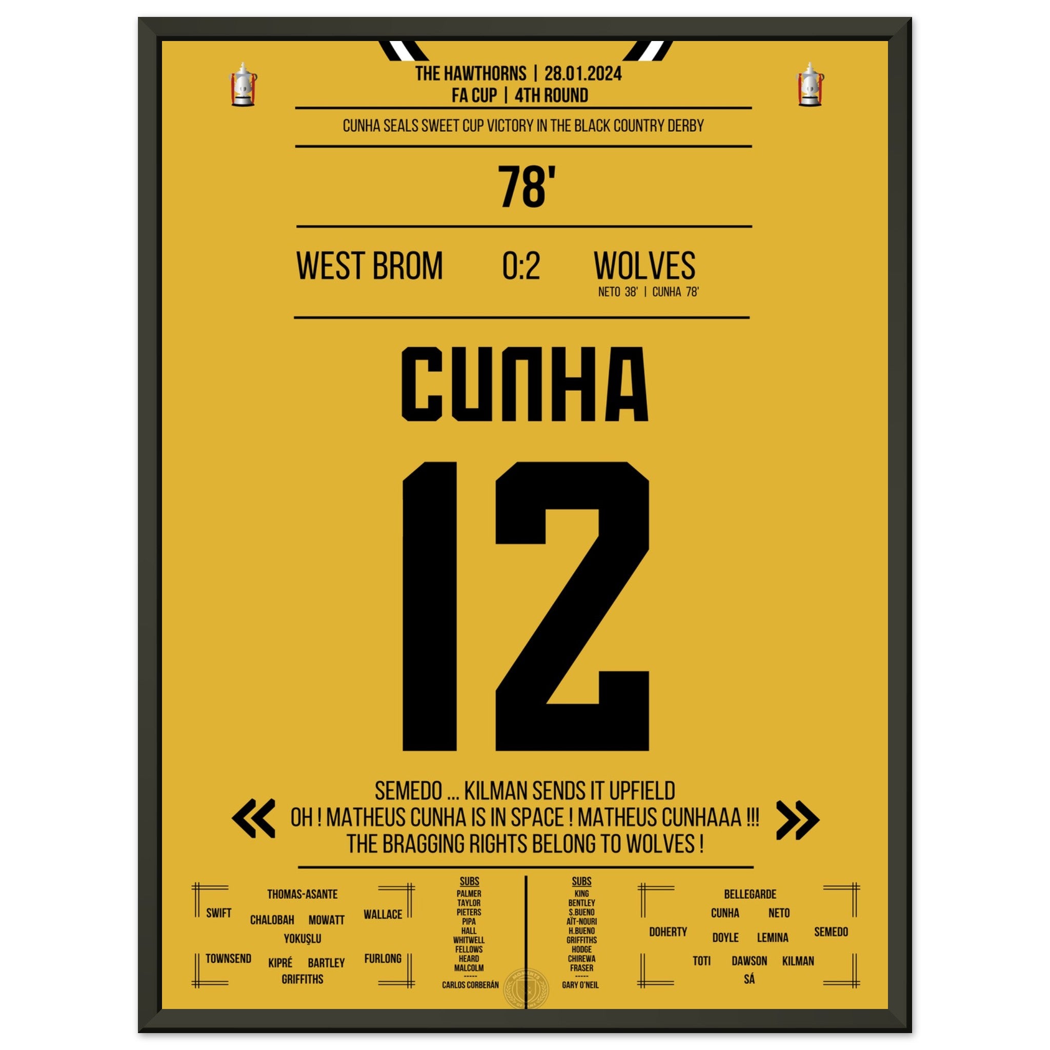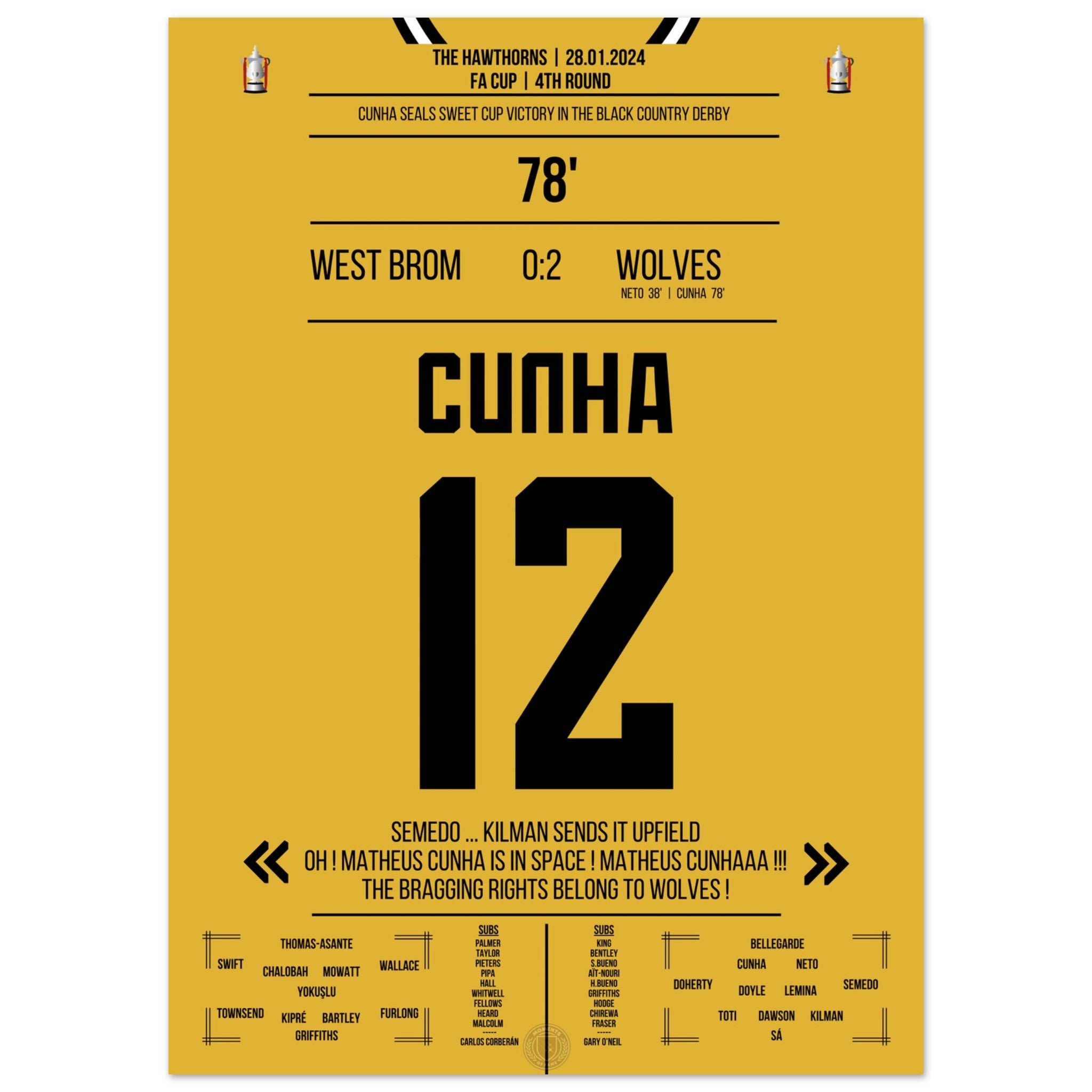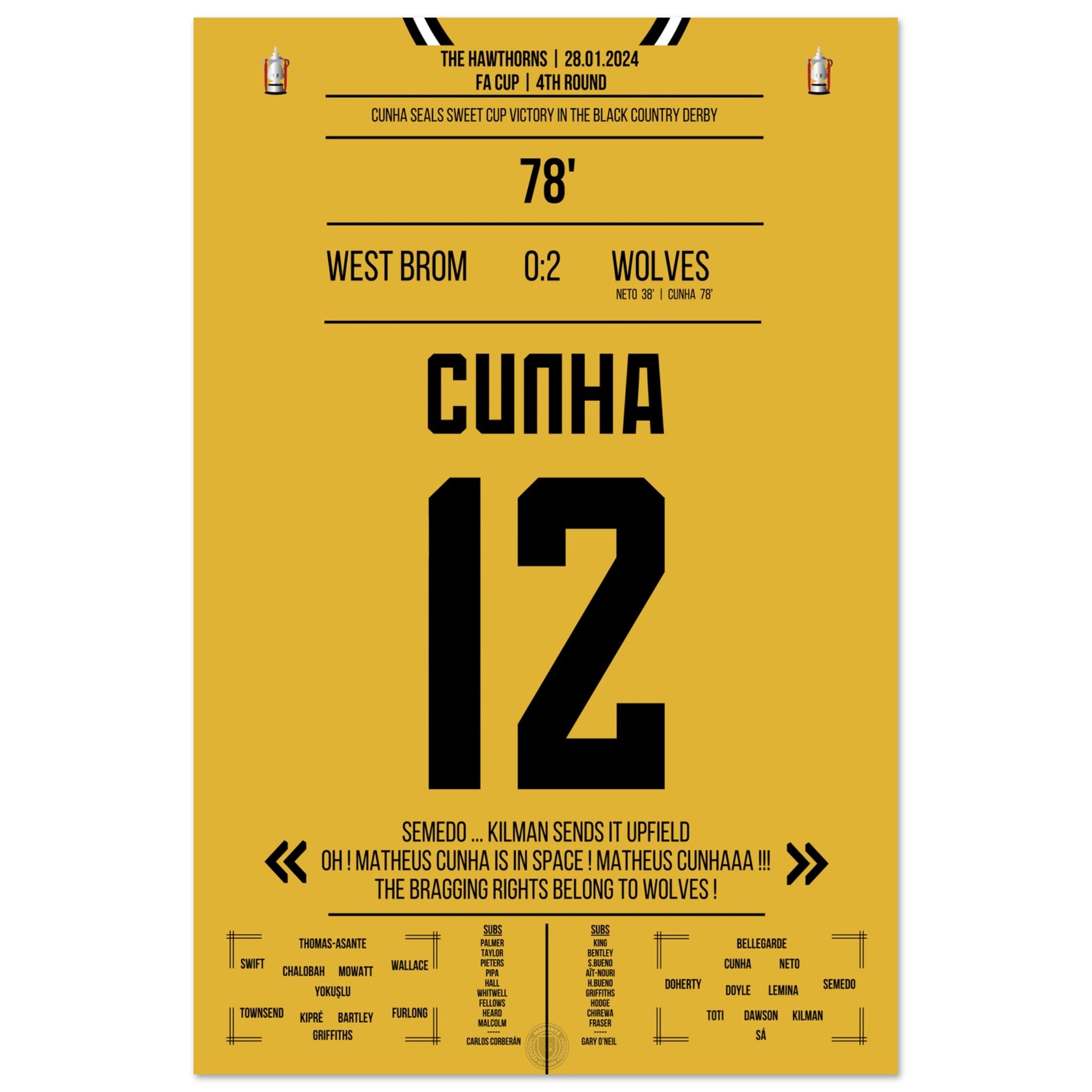 Cunha scores for the Black Country Derby victory in the cup.