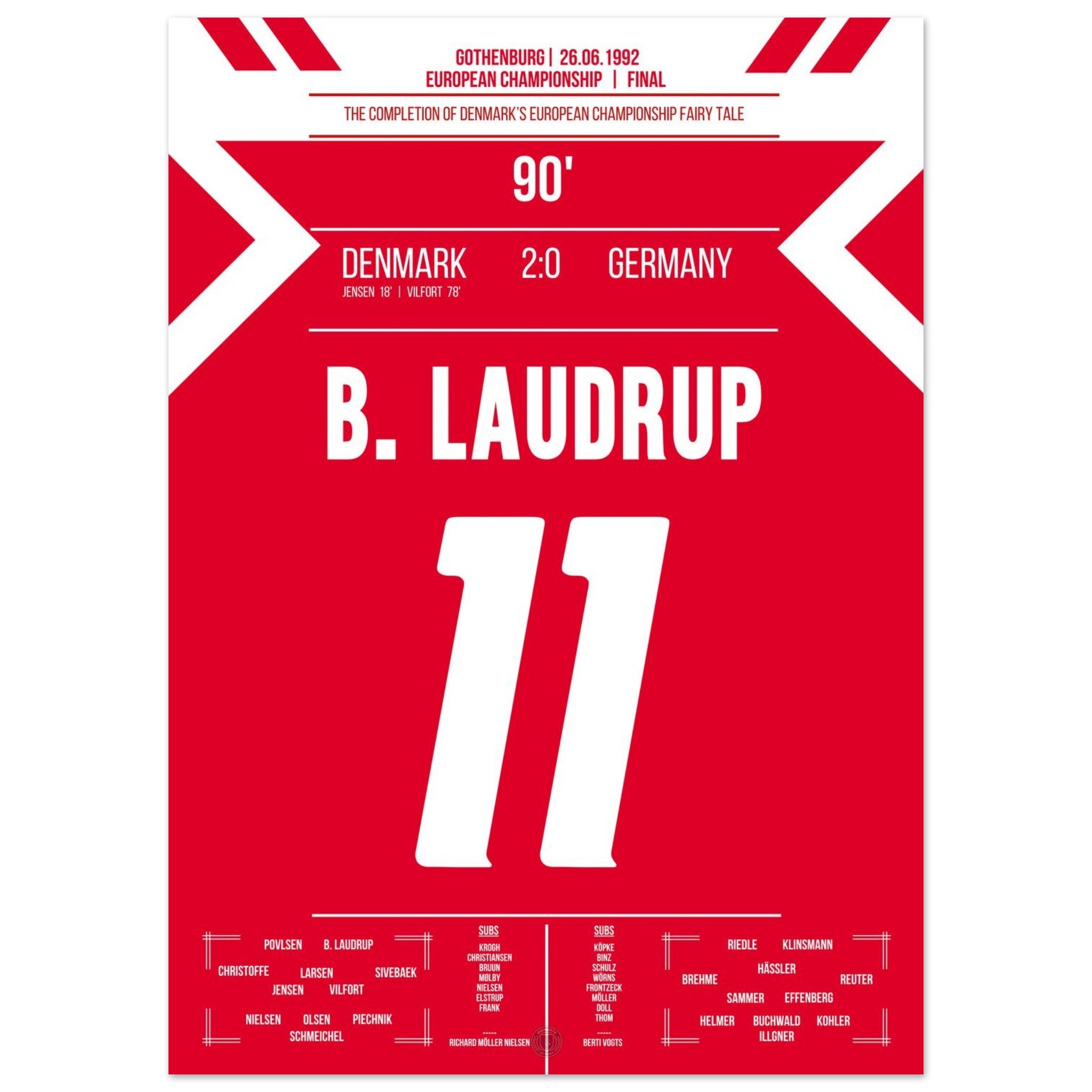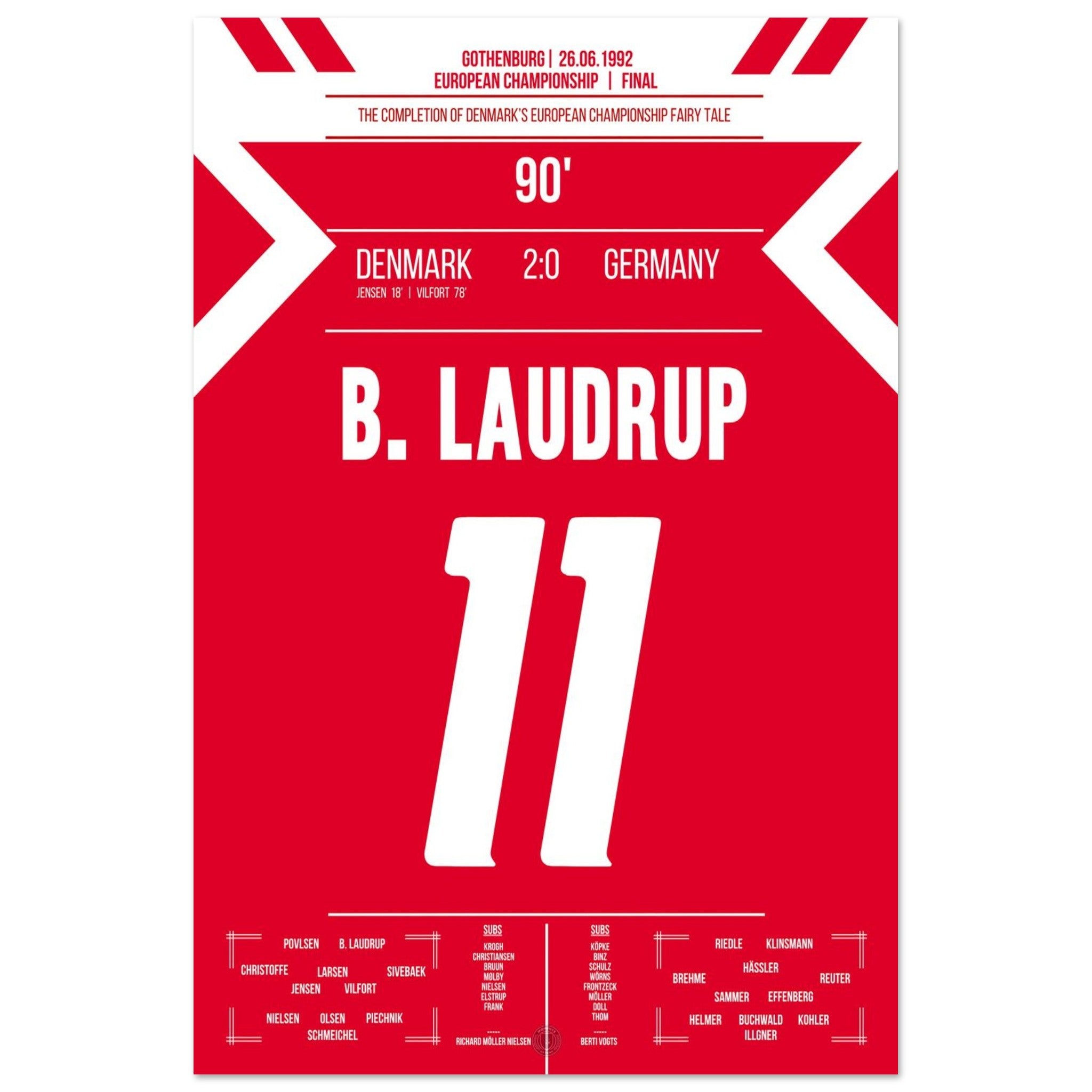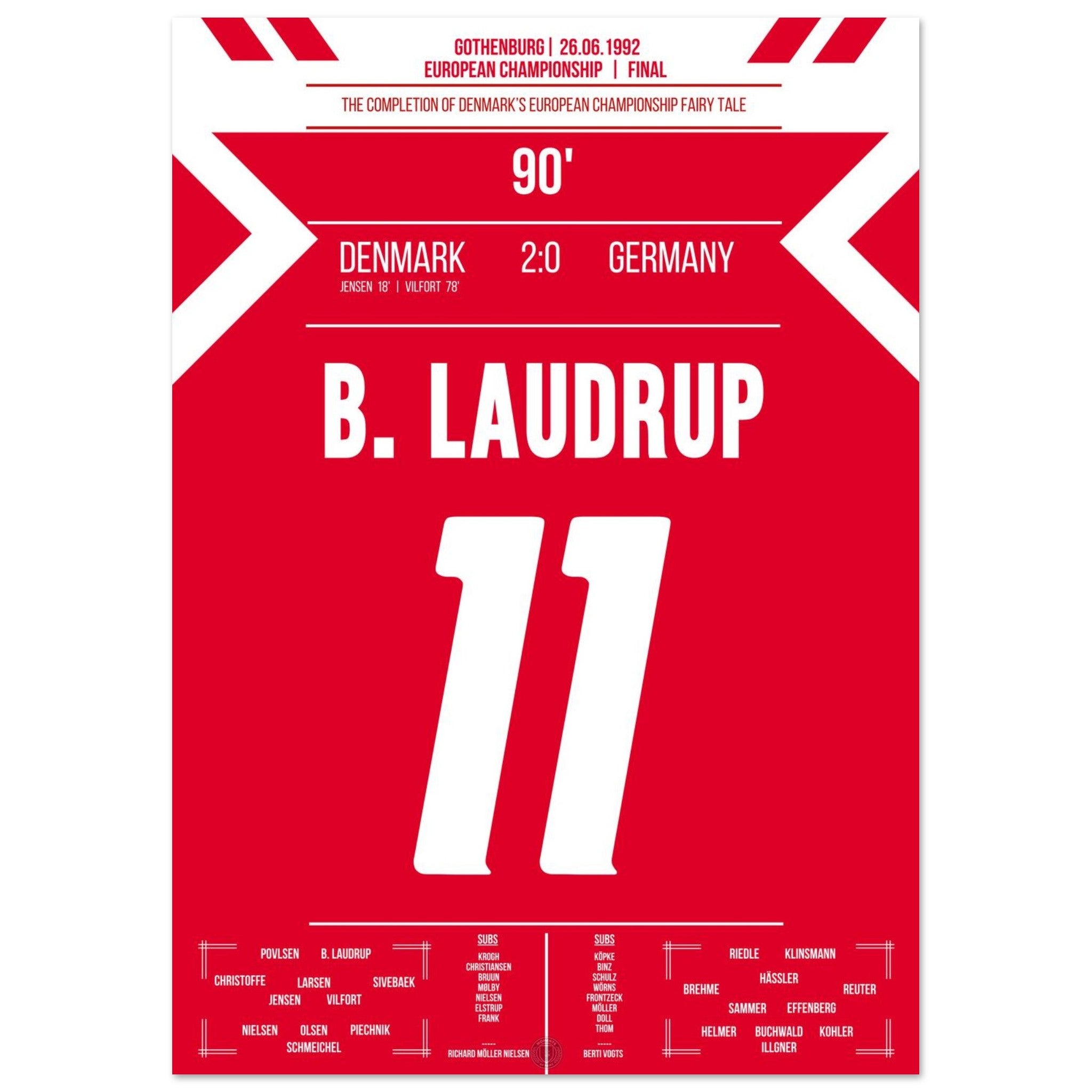 Denmark writes a football fairy tale in the final of the European Championship 1992.