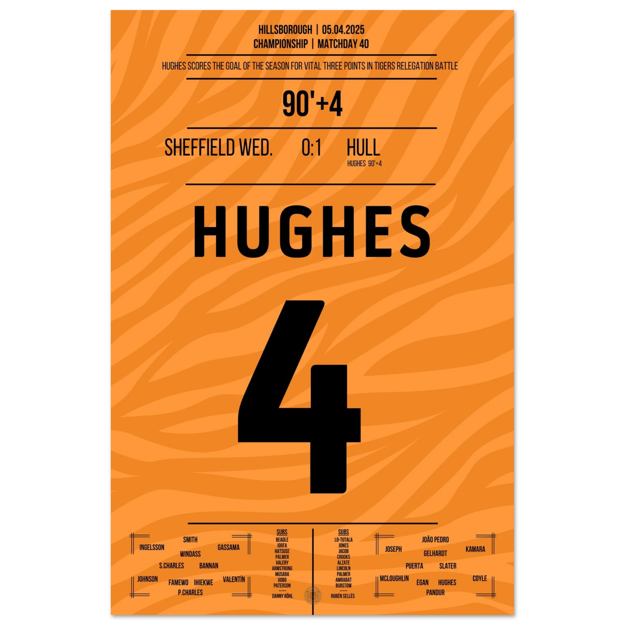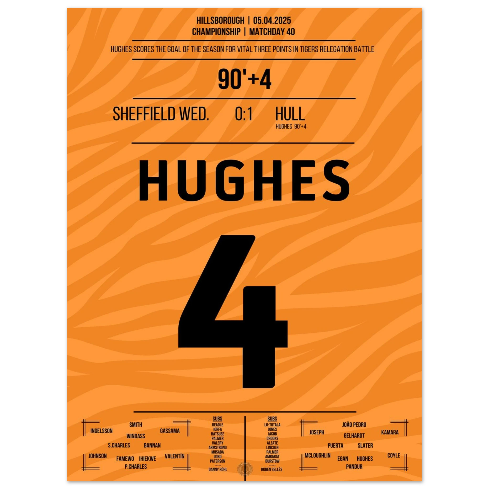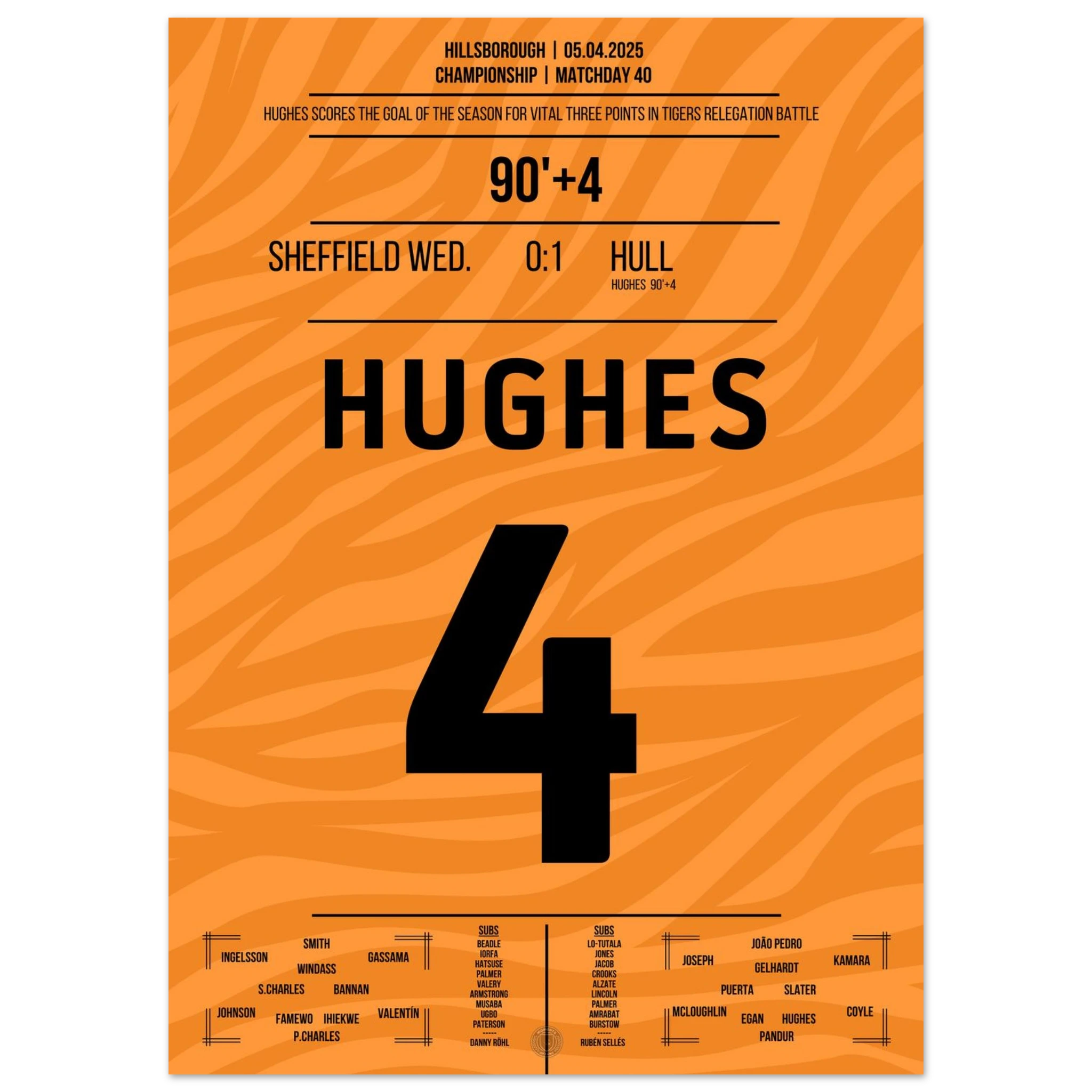 5. April 2025 – Sheffield vs. Hull 0:1 – Hughes schreibt Last-Minute-Geschichte! ⏰⚽