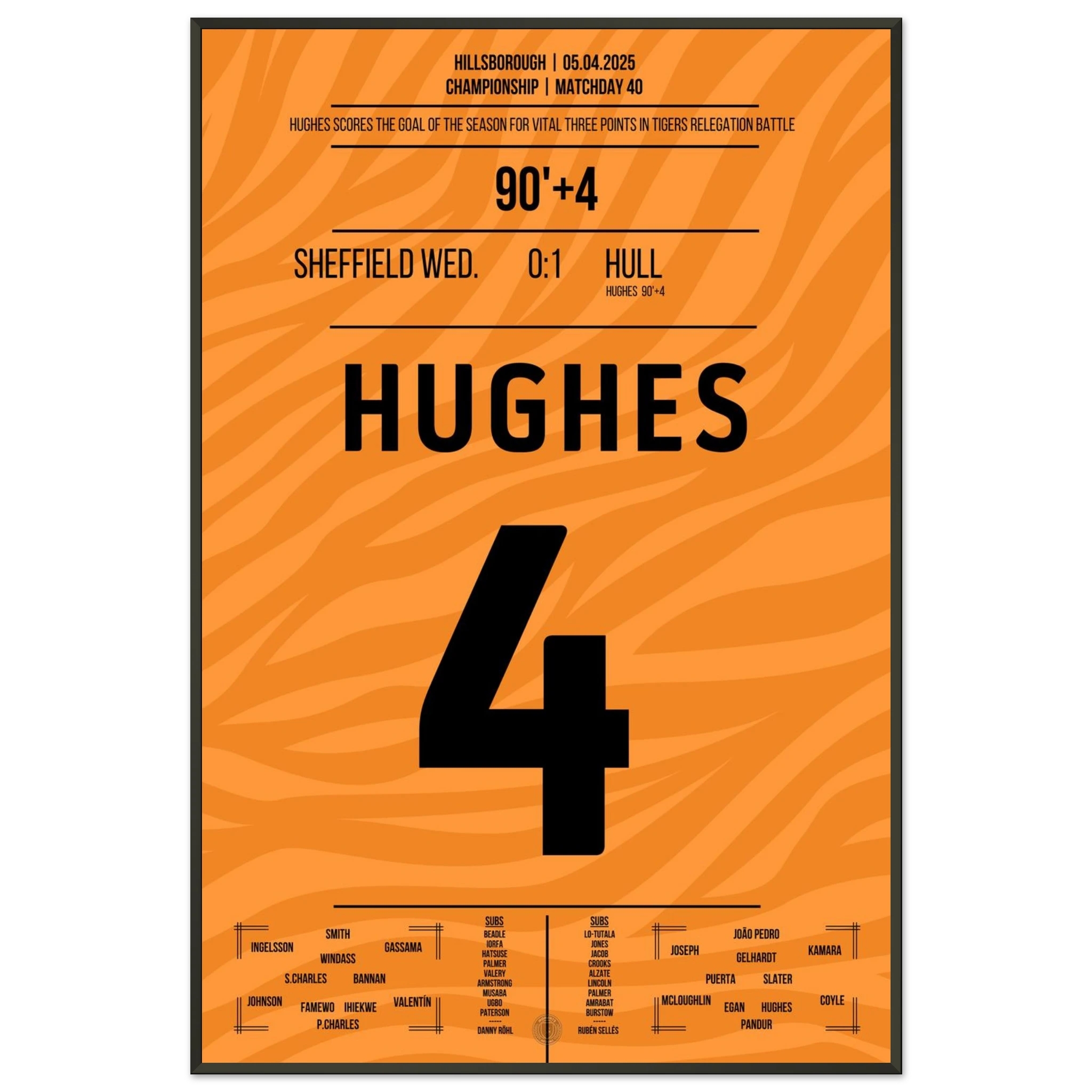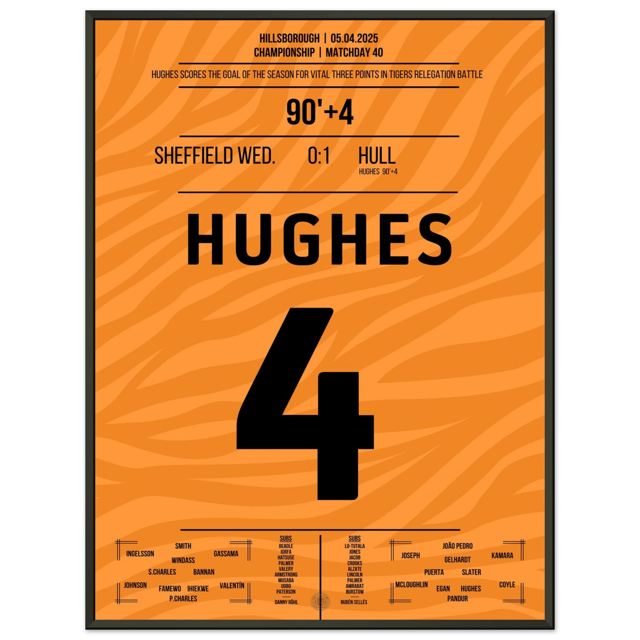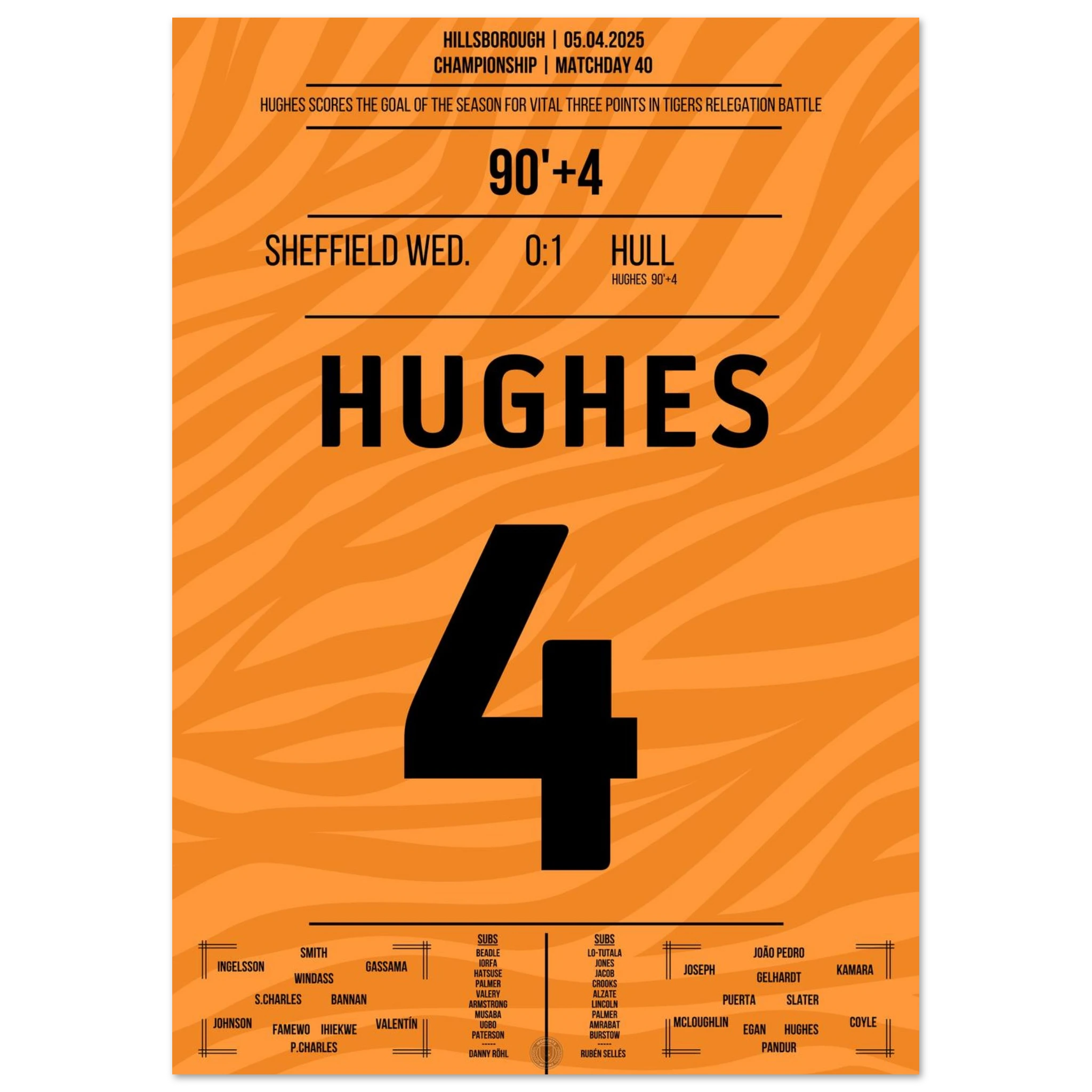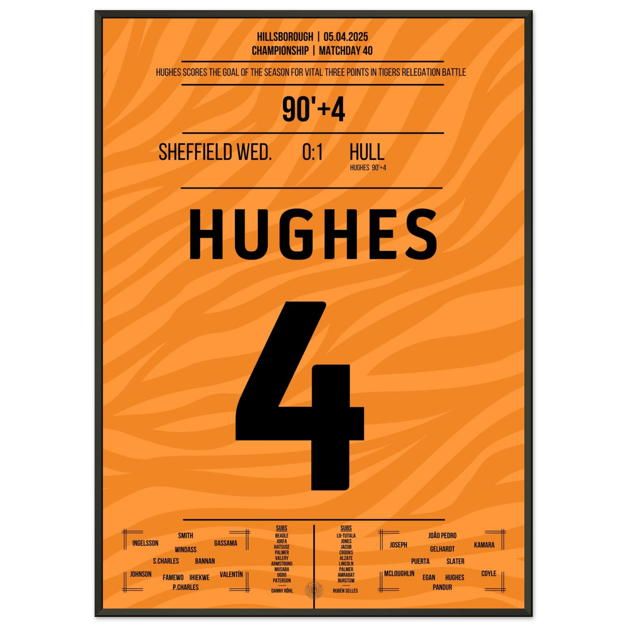 5. April 2025 – Sheffield vs. Hull 0:1 – Hughes schreibt Last-Minute-Geschichte! ⏰⚽