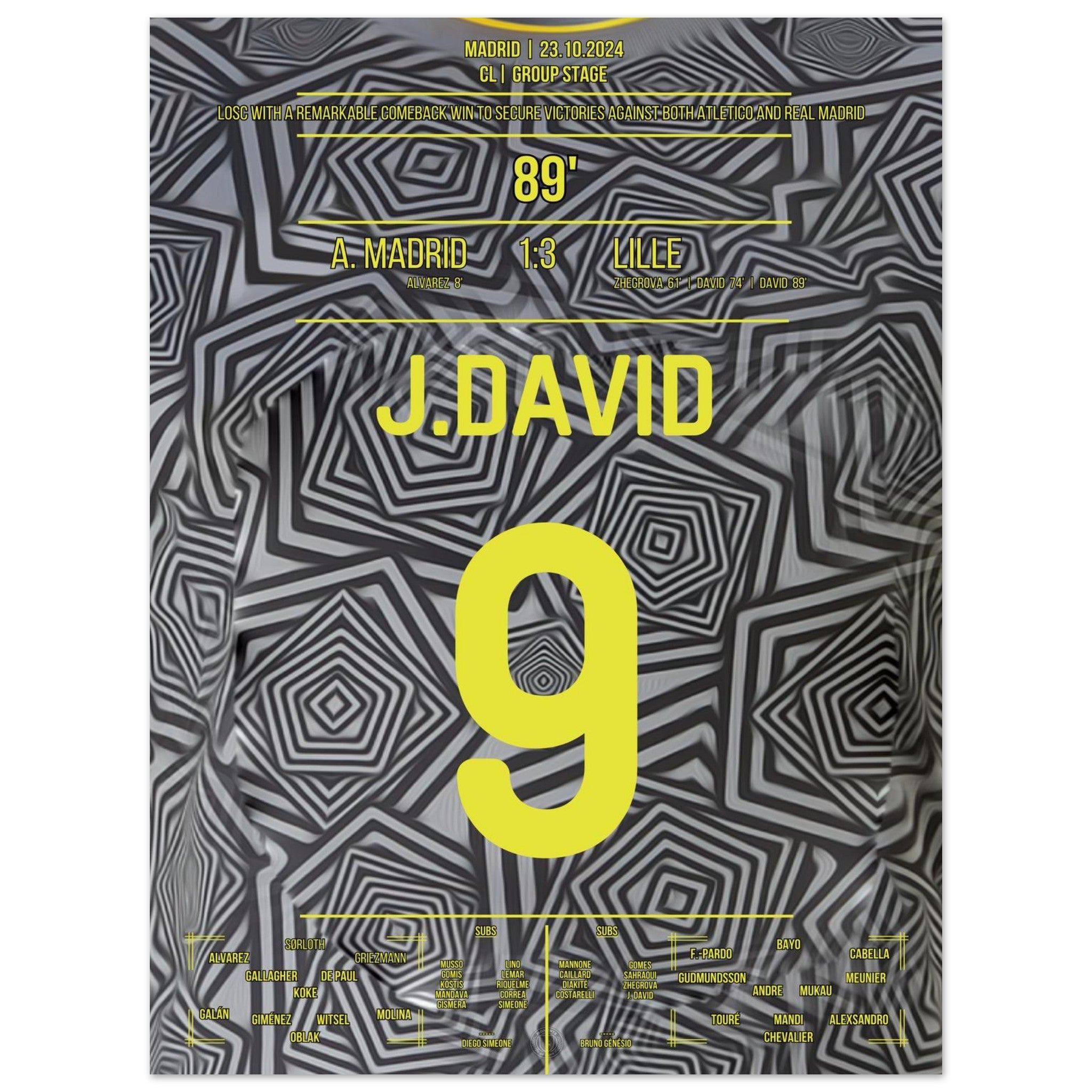 <tc>Lille</tc> turns the game around and achieves a historic victory against Atletico Madrid.