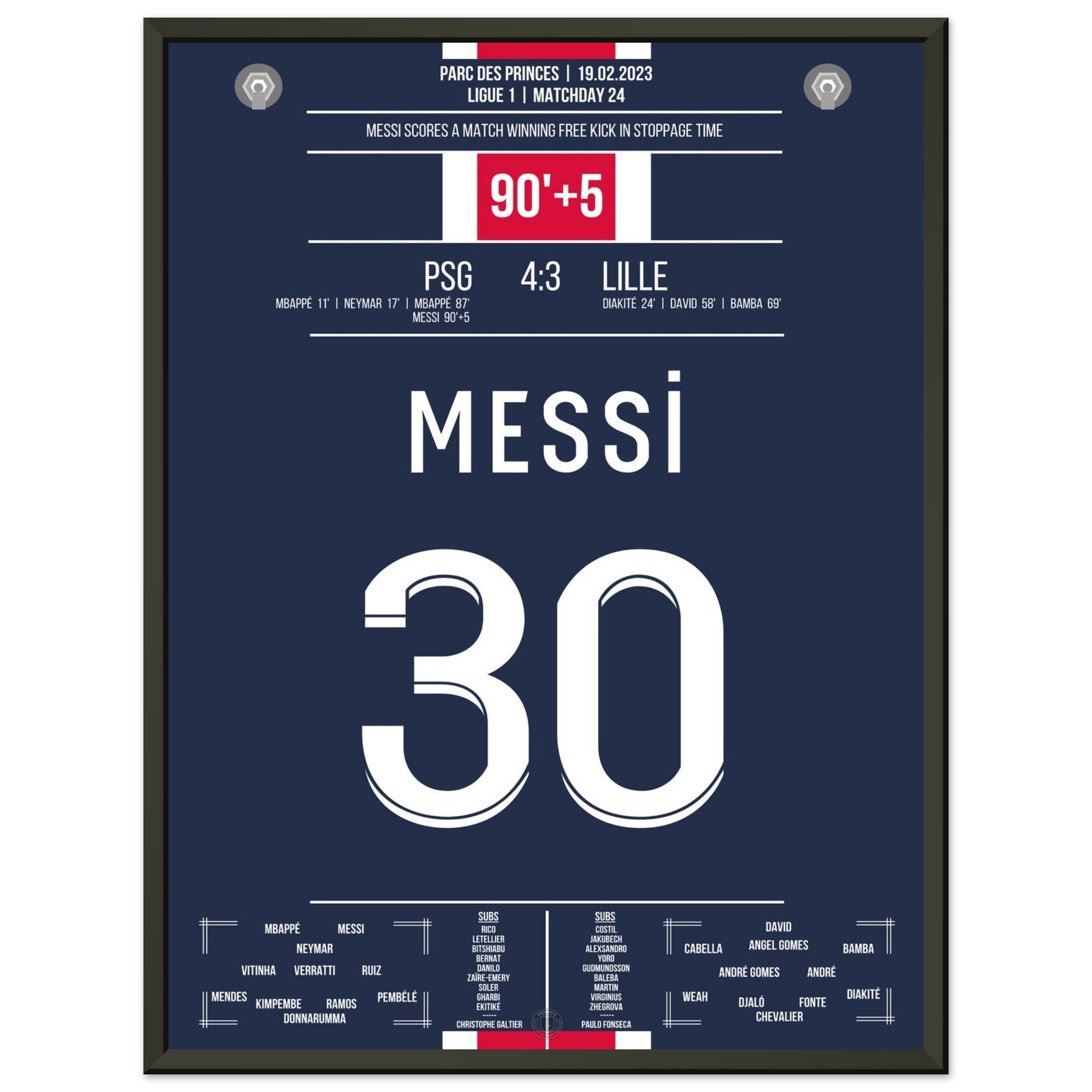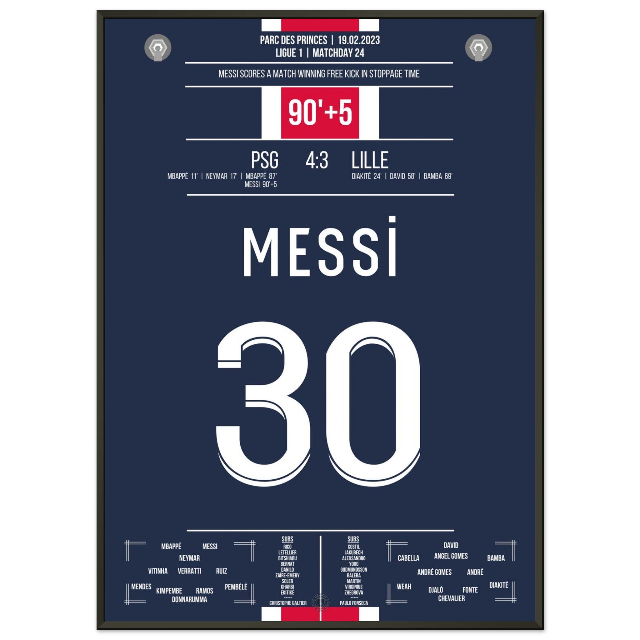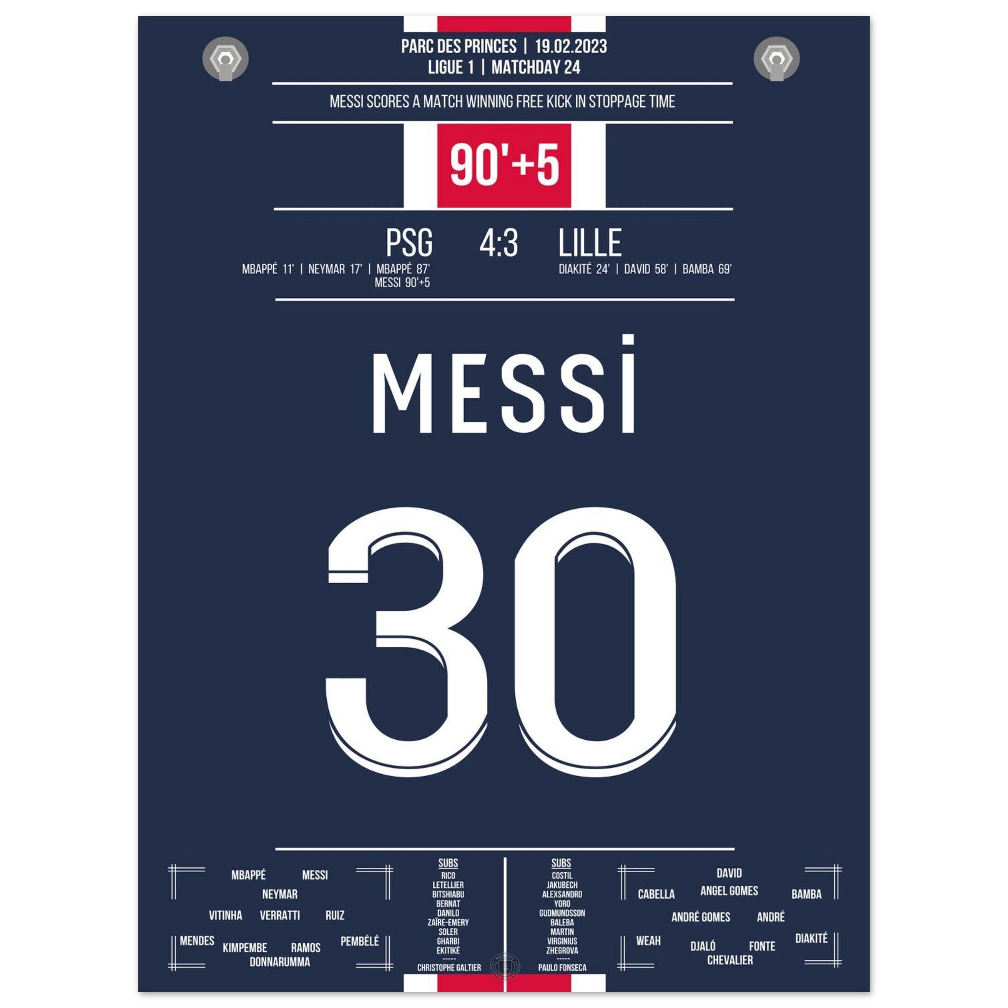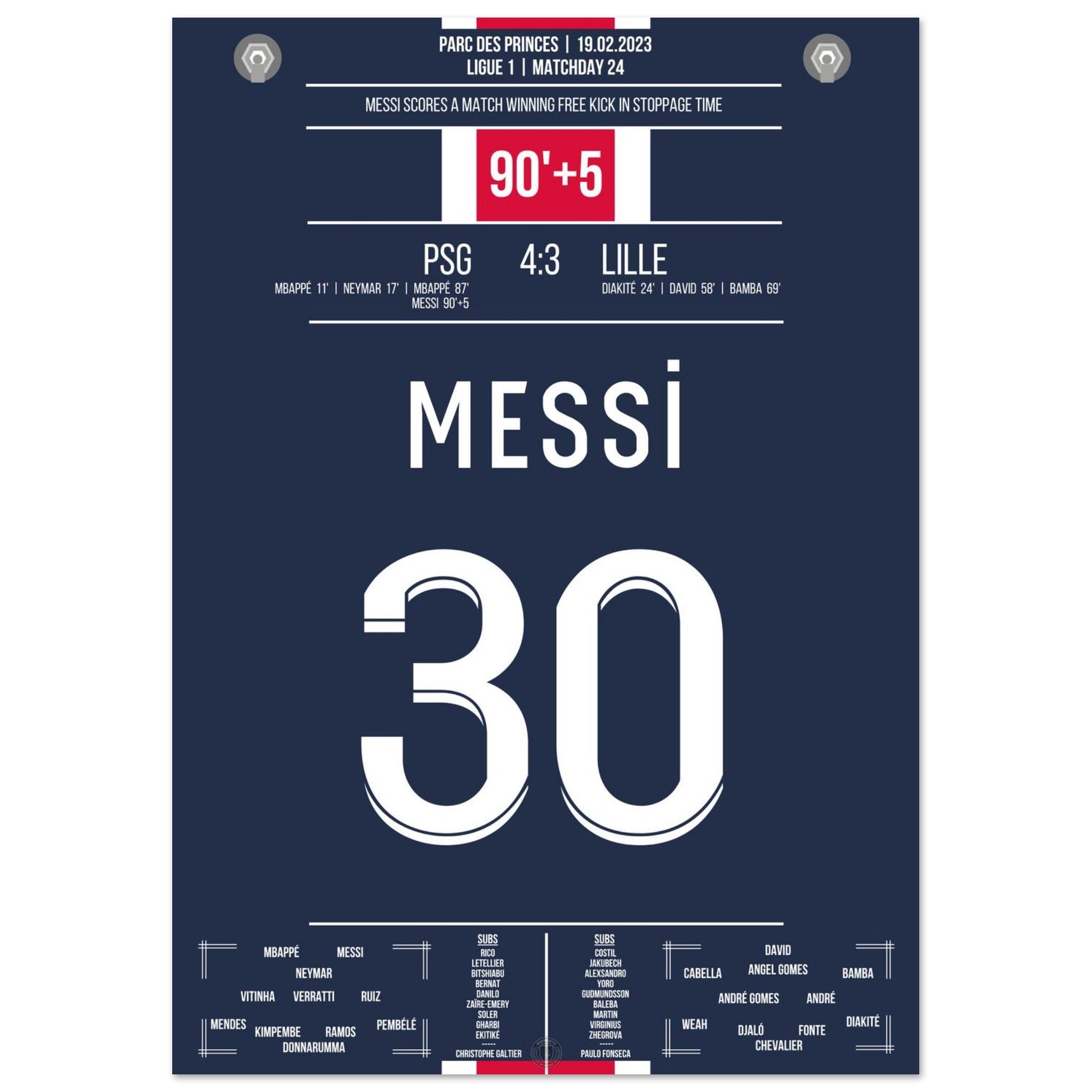 Messi scores with a last-minute free kick for PSG.