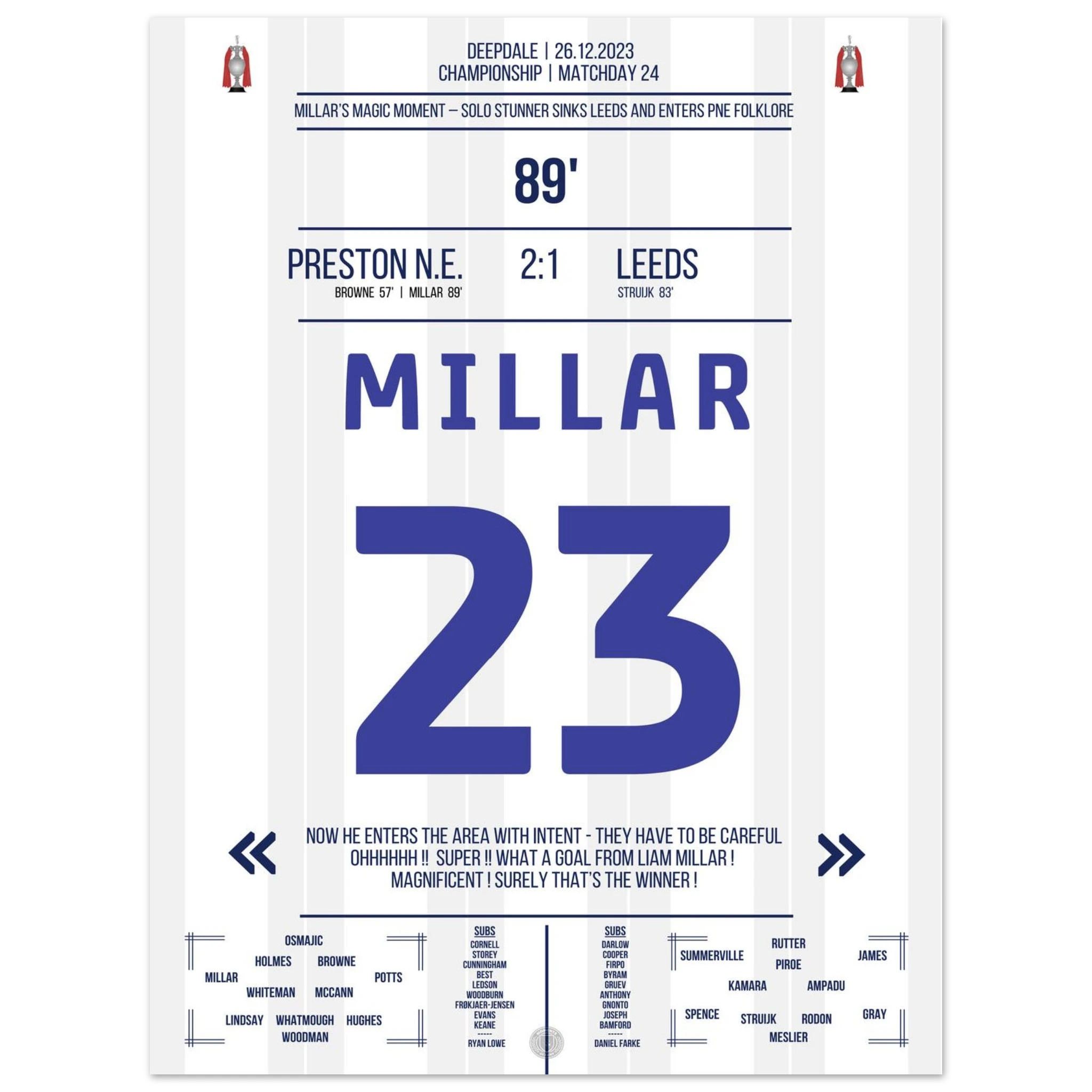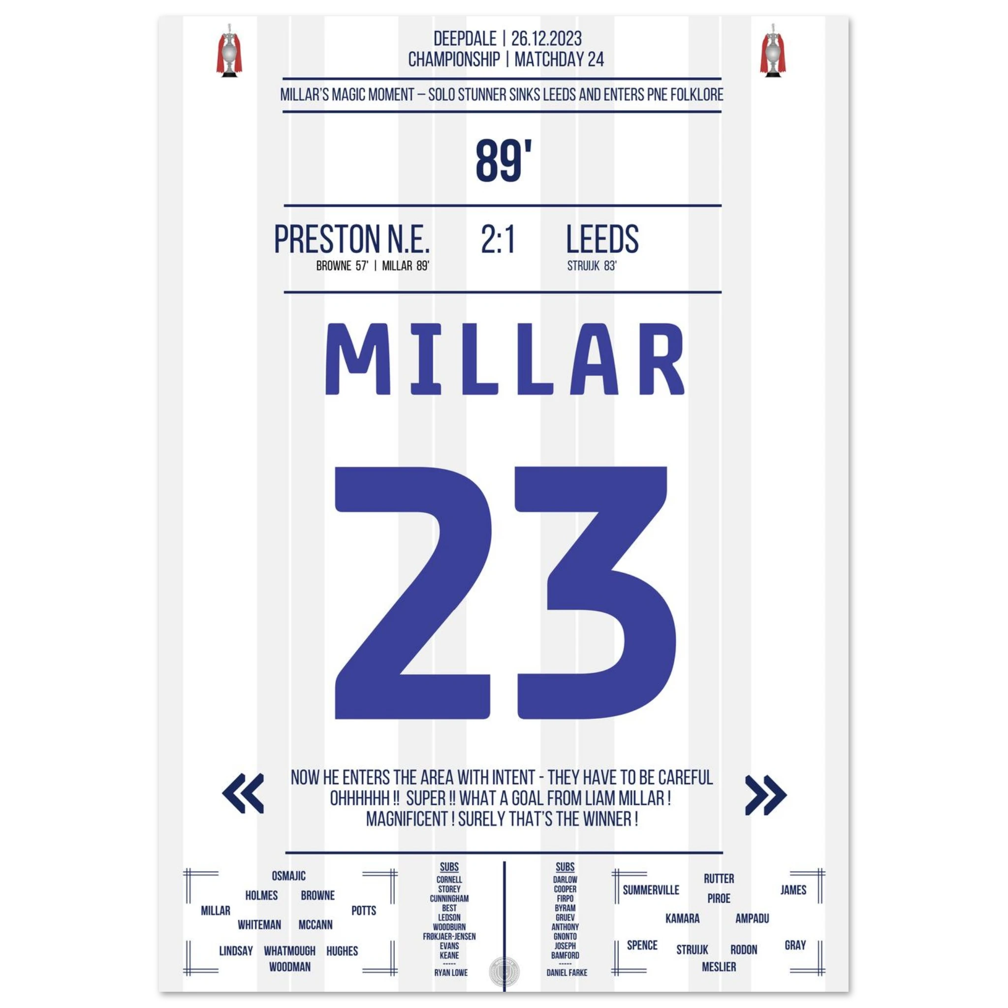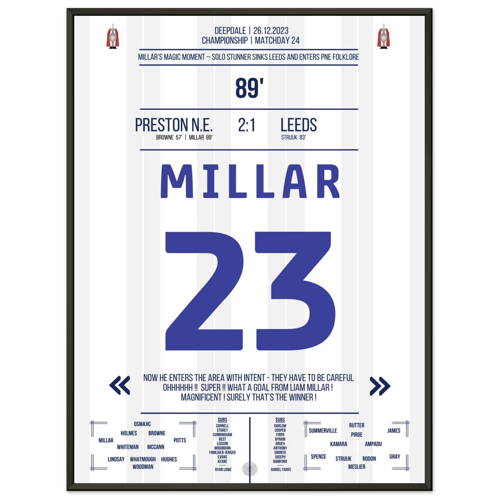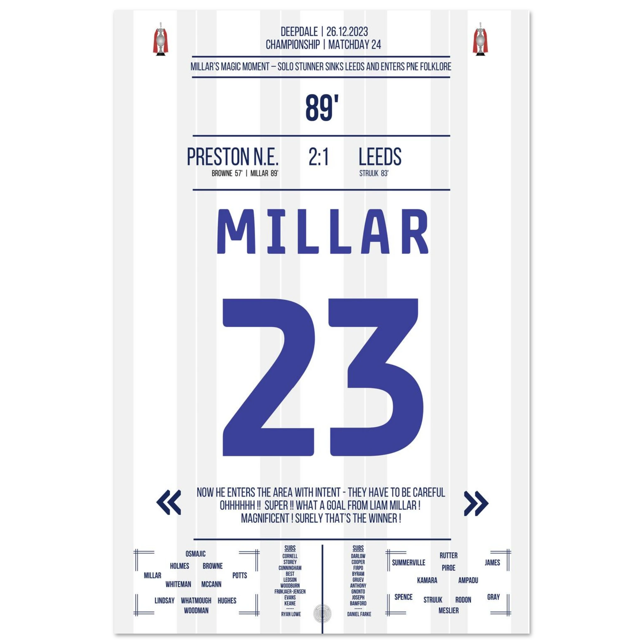 26. Dezember 2023 – Preston vs. Leeds 2:1 – Millars magischer Boxing Day! 🎯🔥