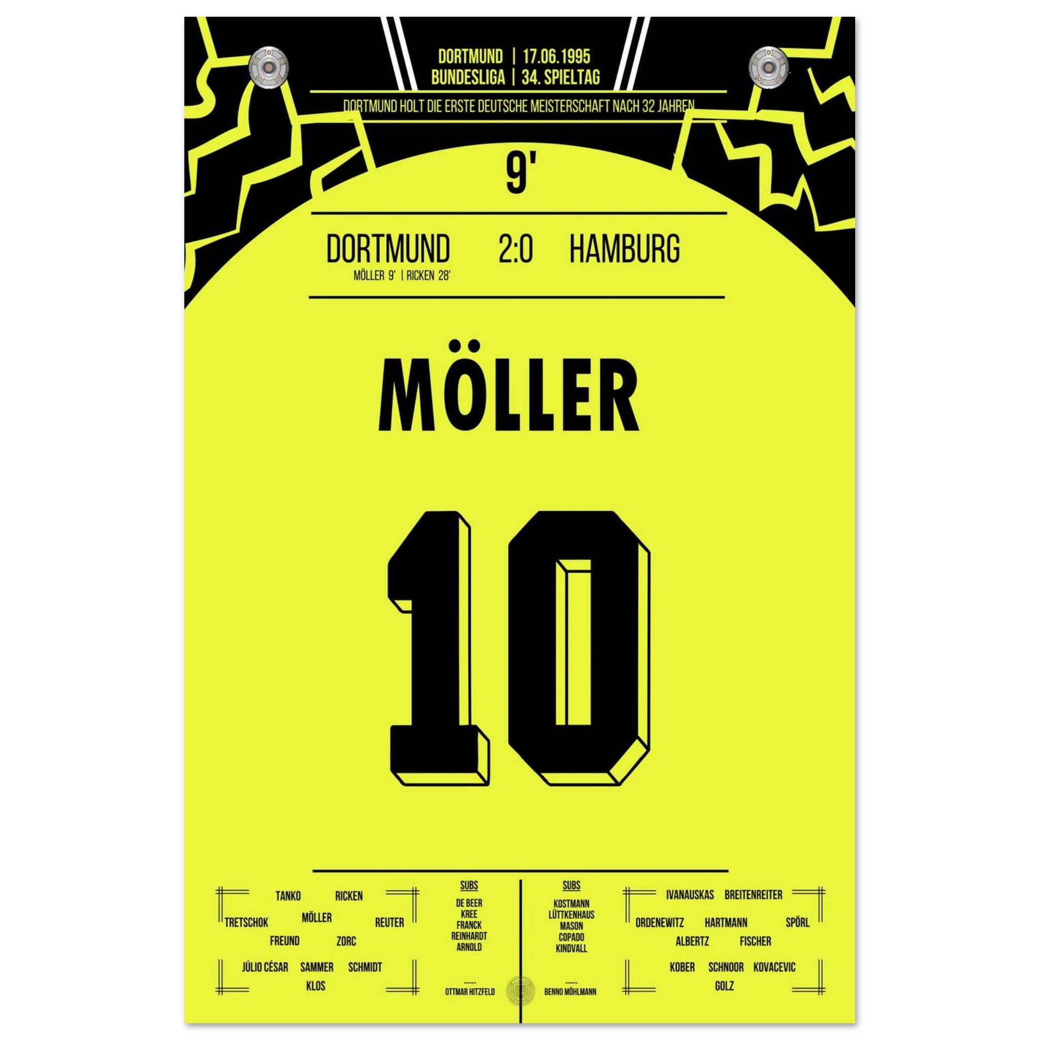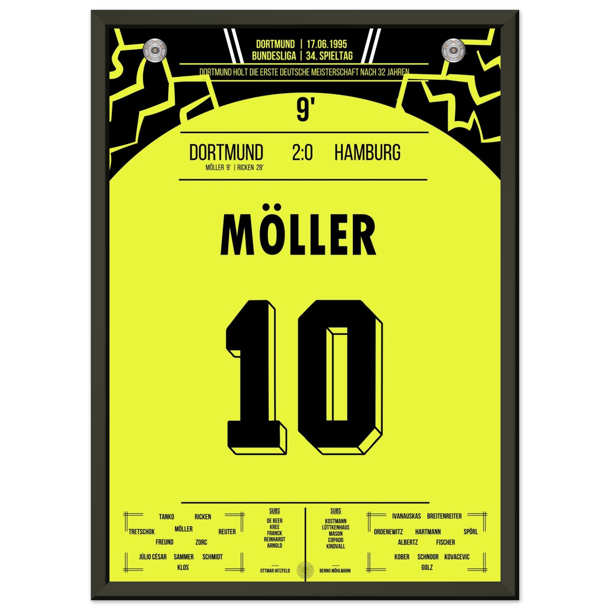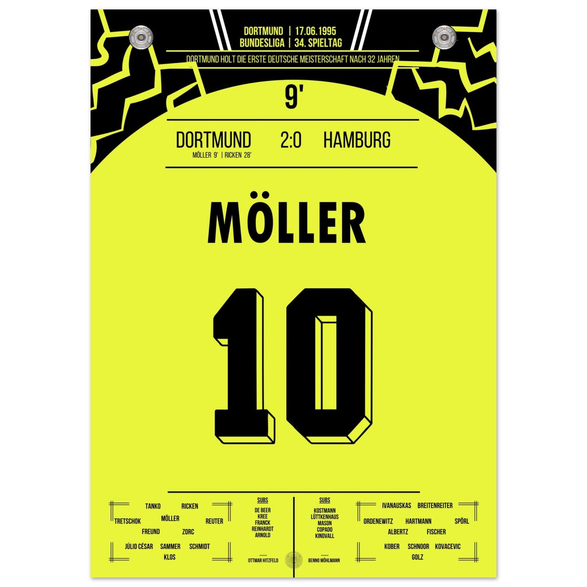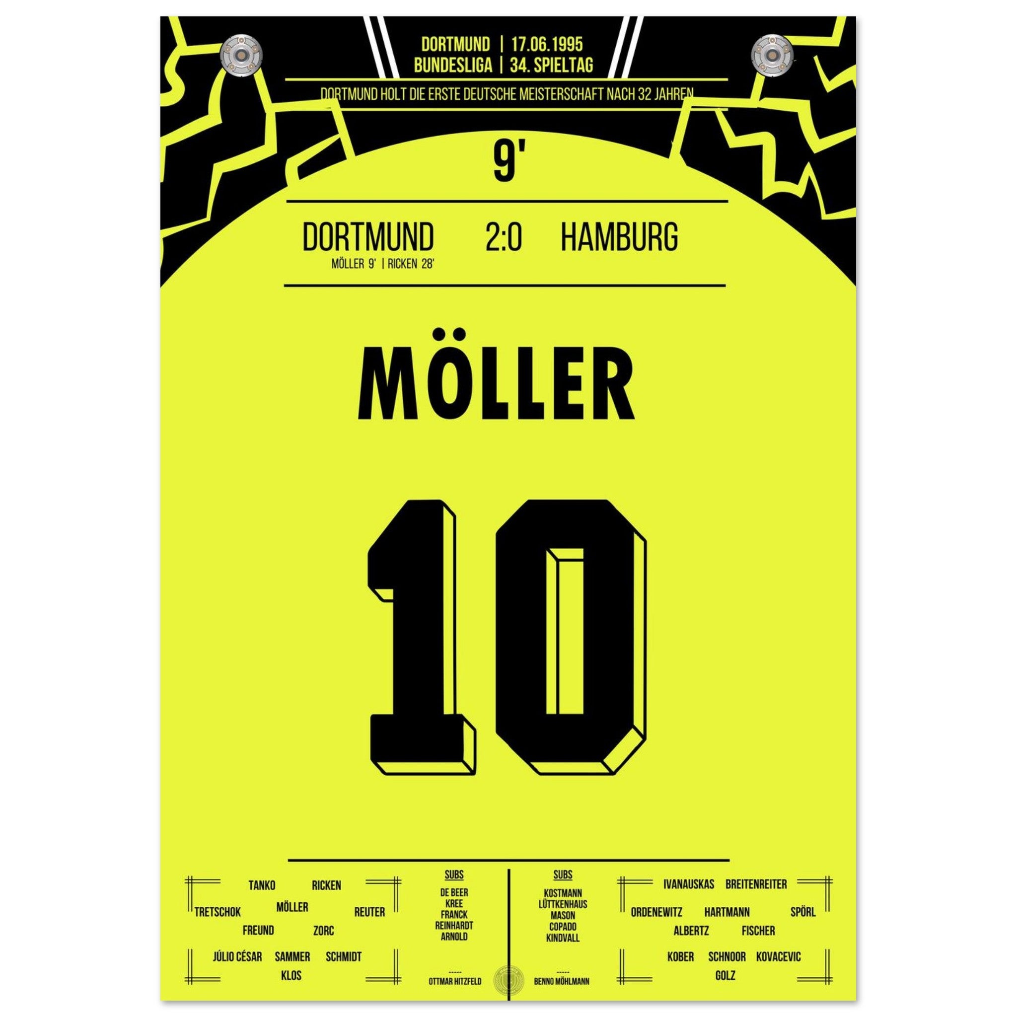 Möller sinks the free kick and Dortmund secures their first championship title after 32 years.