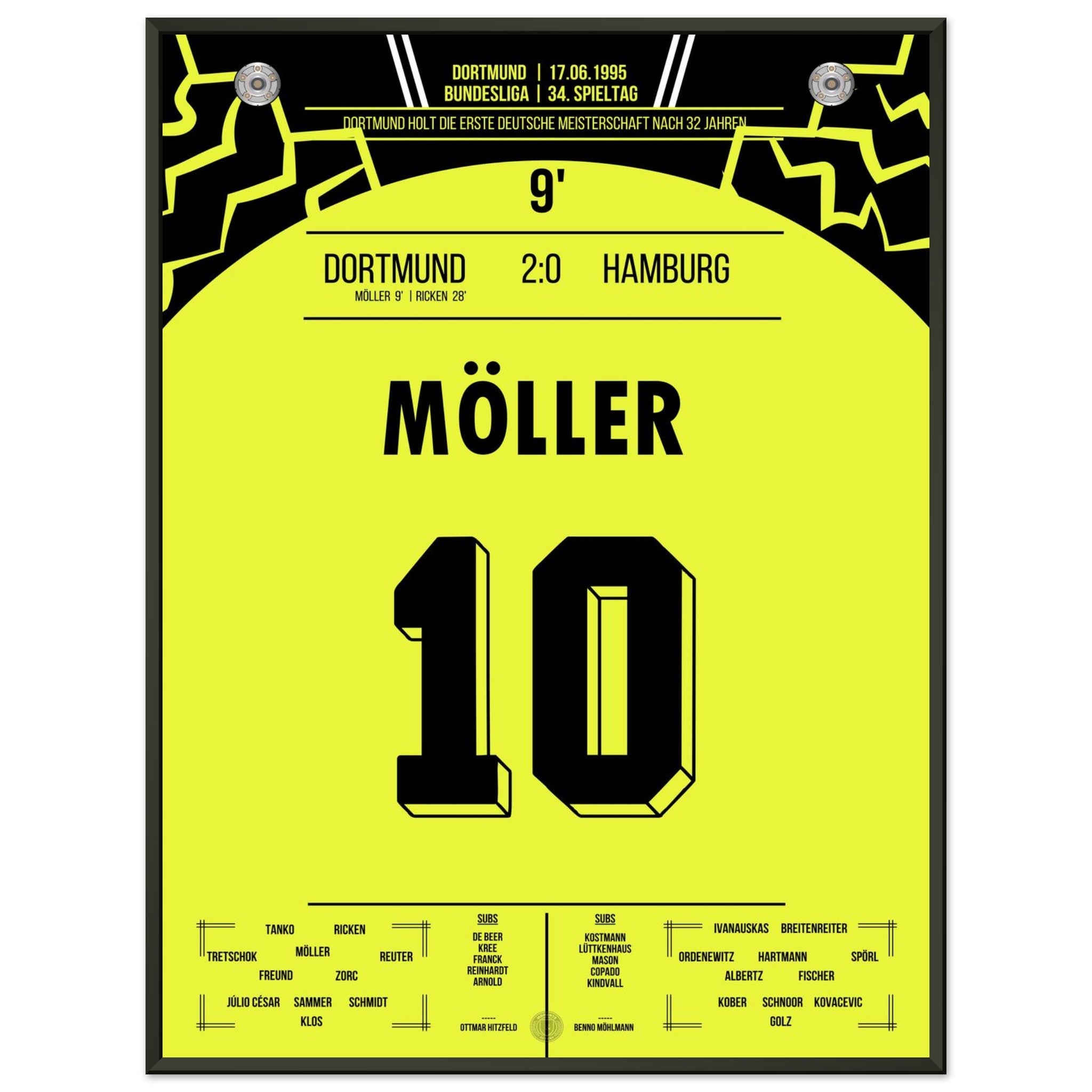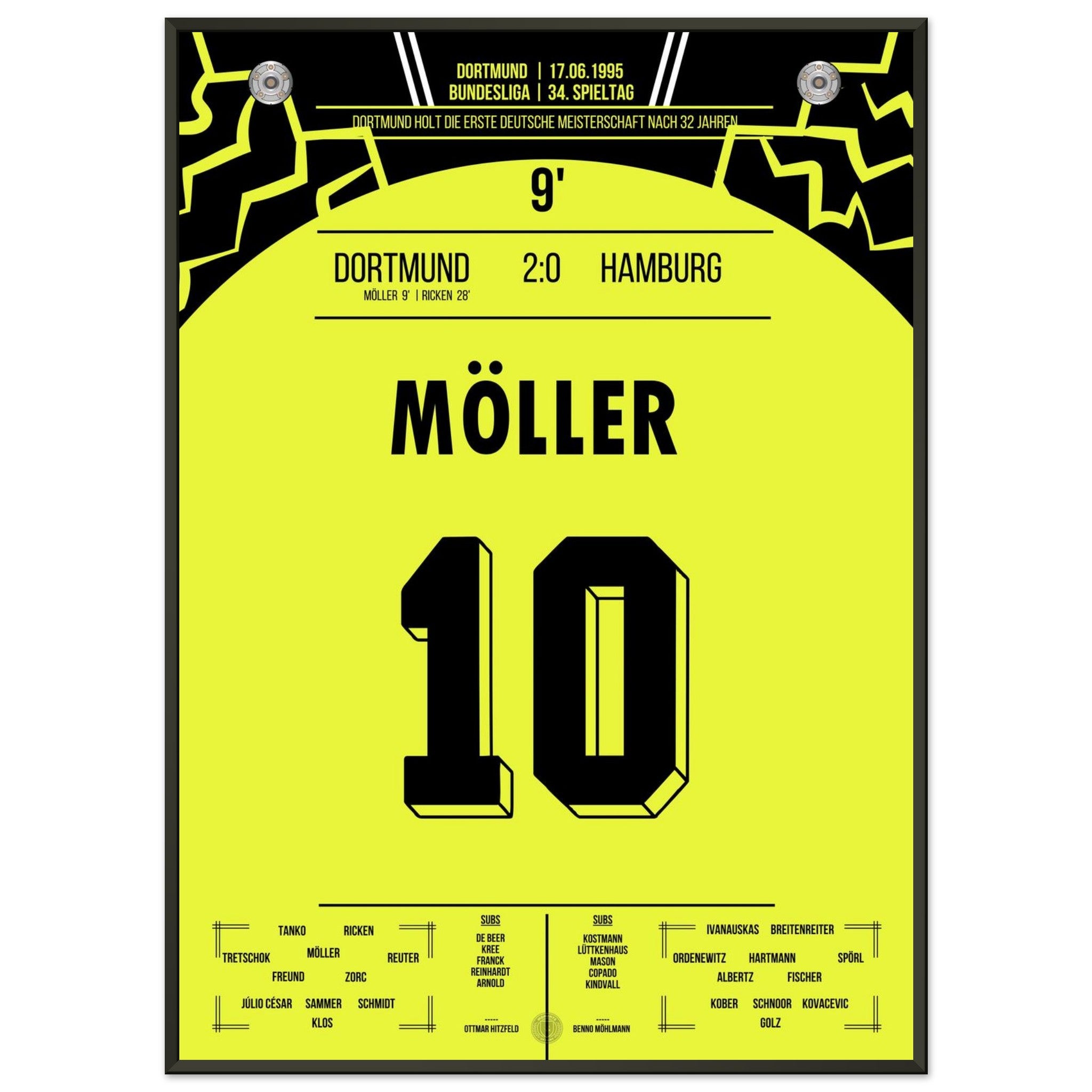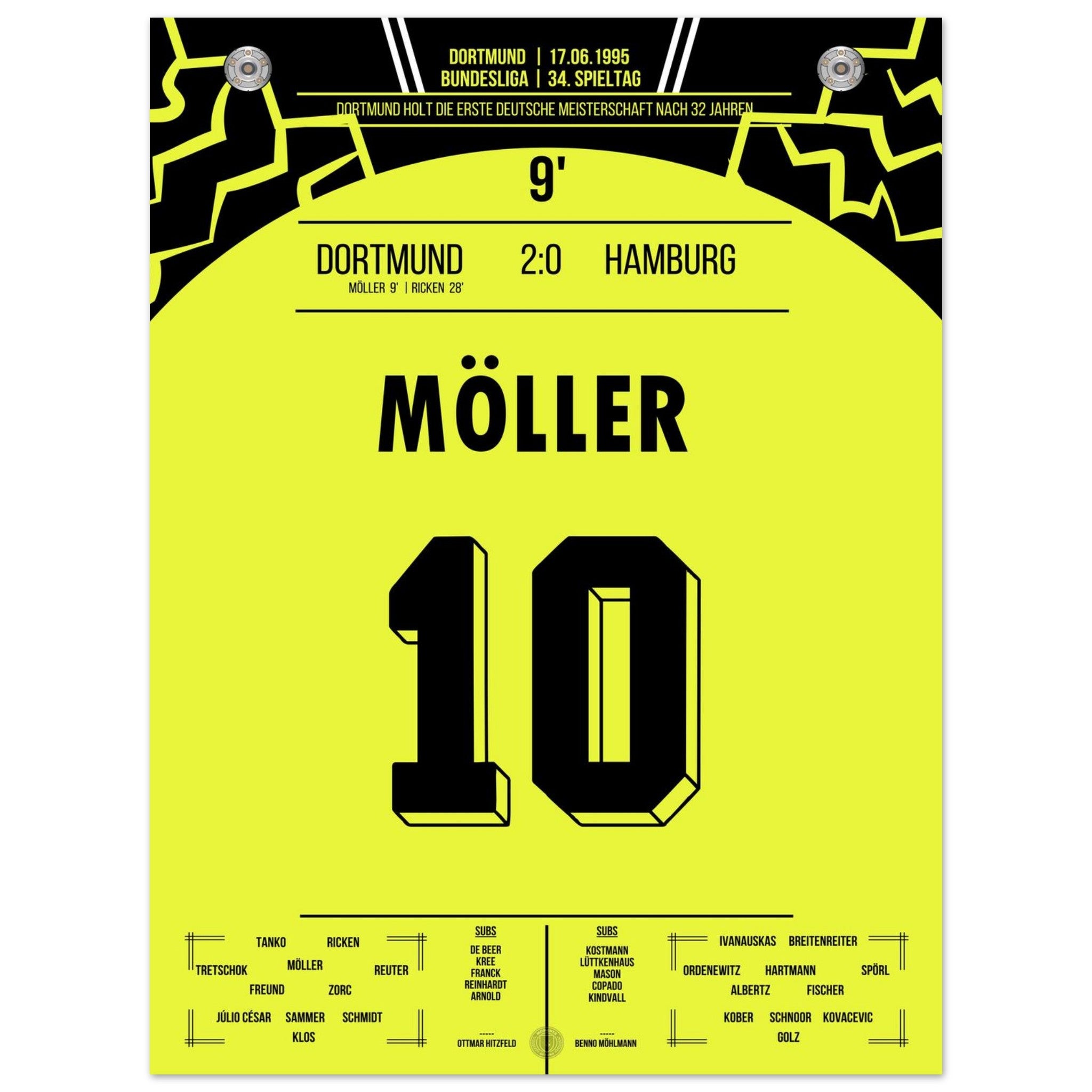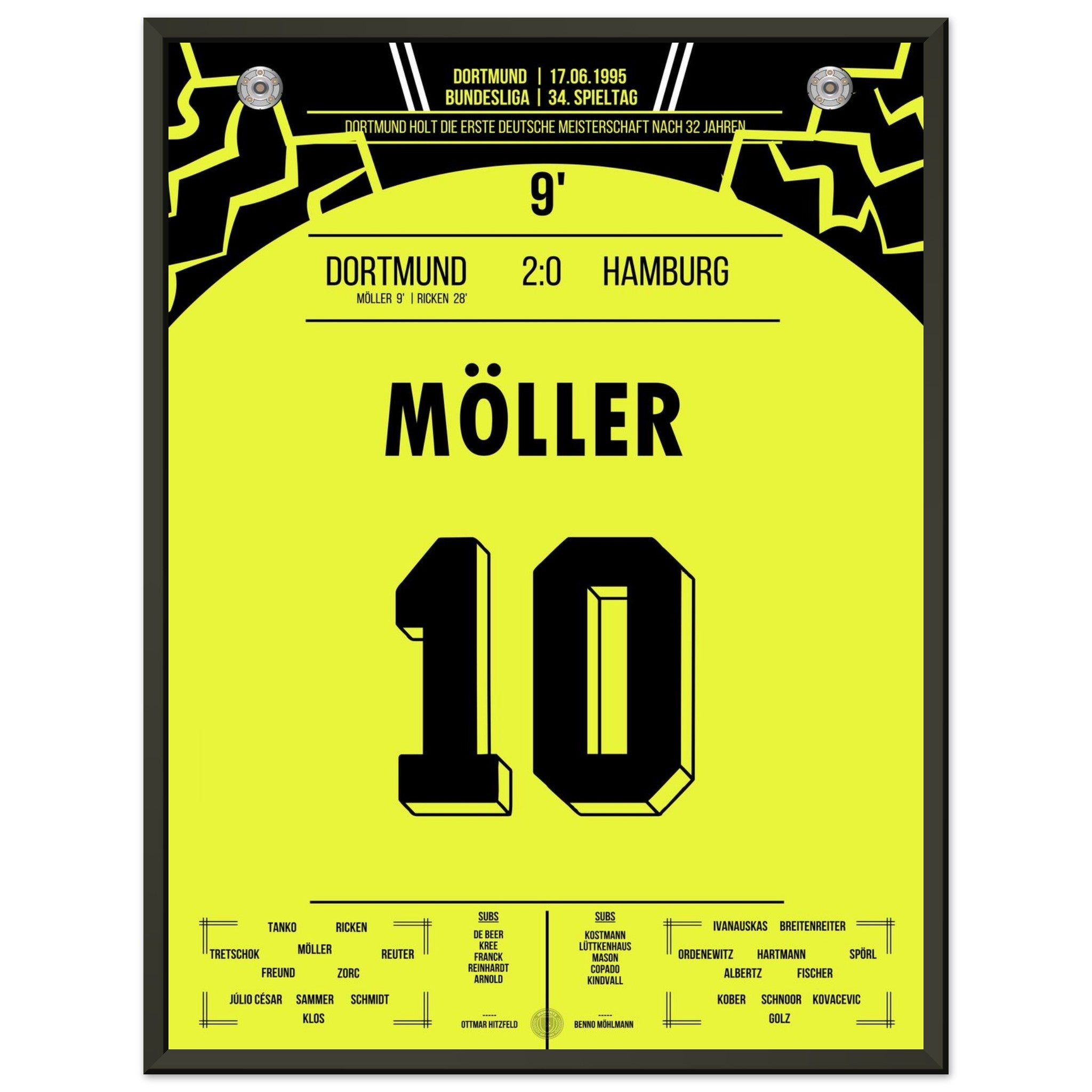Möller sinks the free kick and Dortmund secures their first championship title after 32 years.